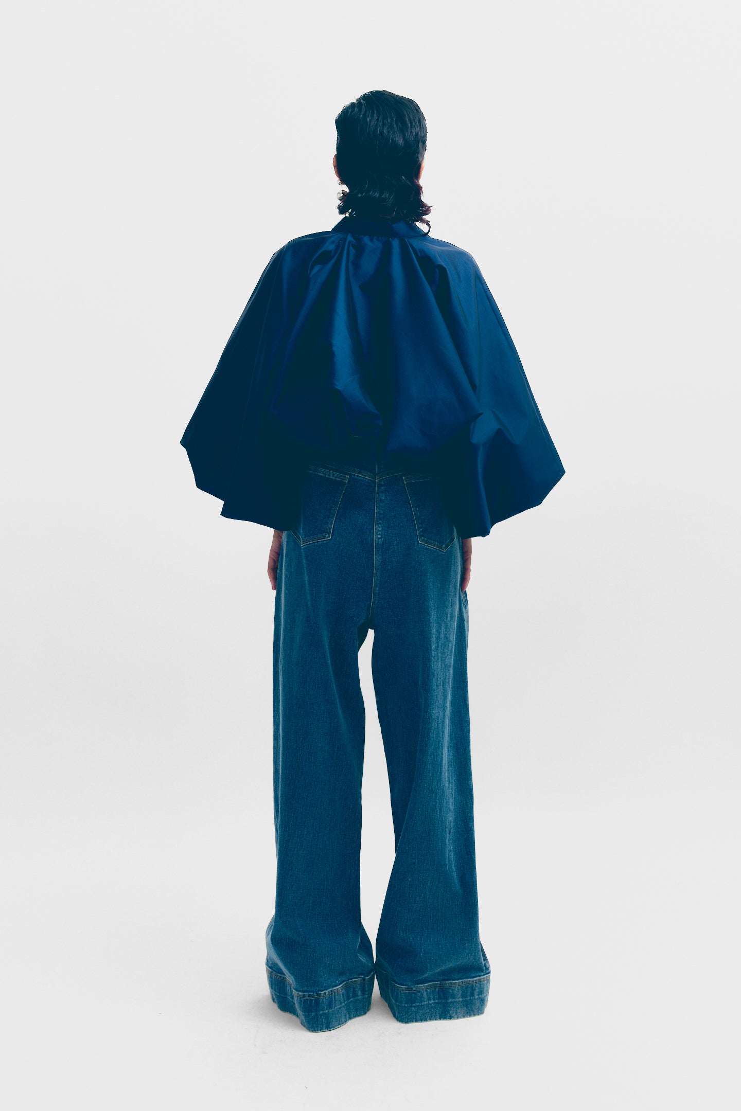 This balloon jacket adorned with tying detail at the hem offers a whimsical and feminine touch to outerwear. The balloon silhouette adds volume and drama and romantic aesthetic. The tying detail at the hem allows for customizable styling options, adding versatility to the piece. Perfect for adding a statement layer to any outfit, this jacket exudes both style and personality.
