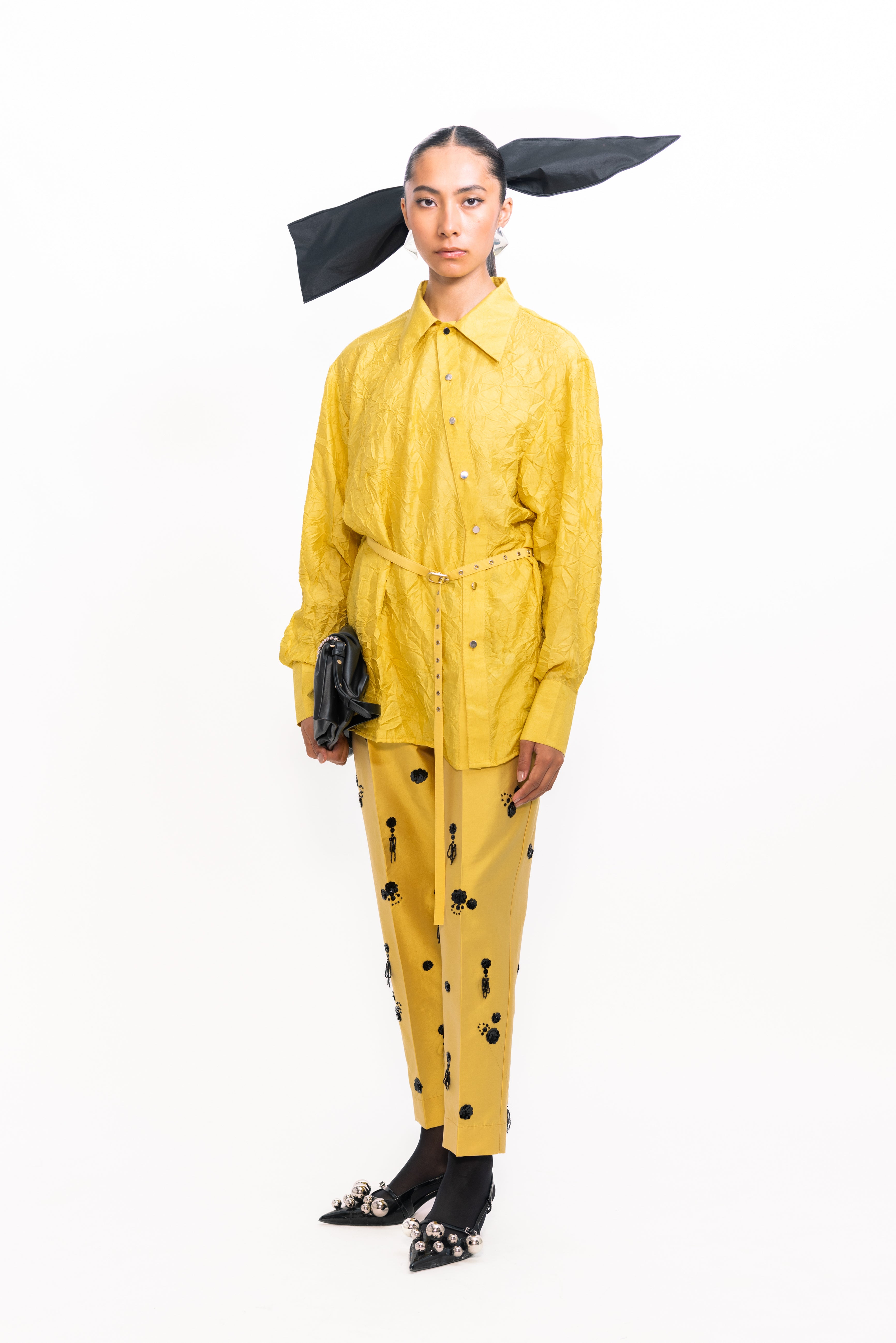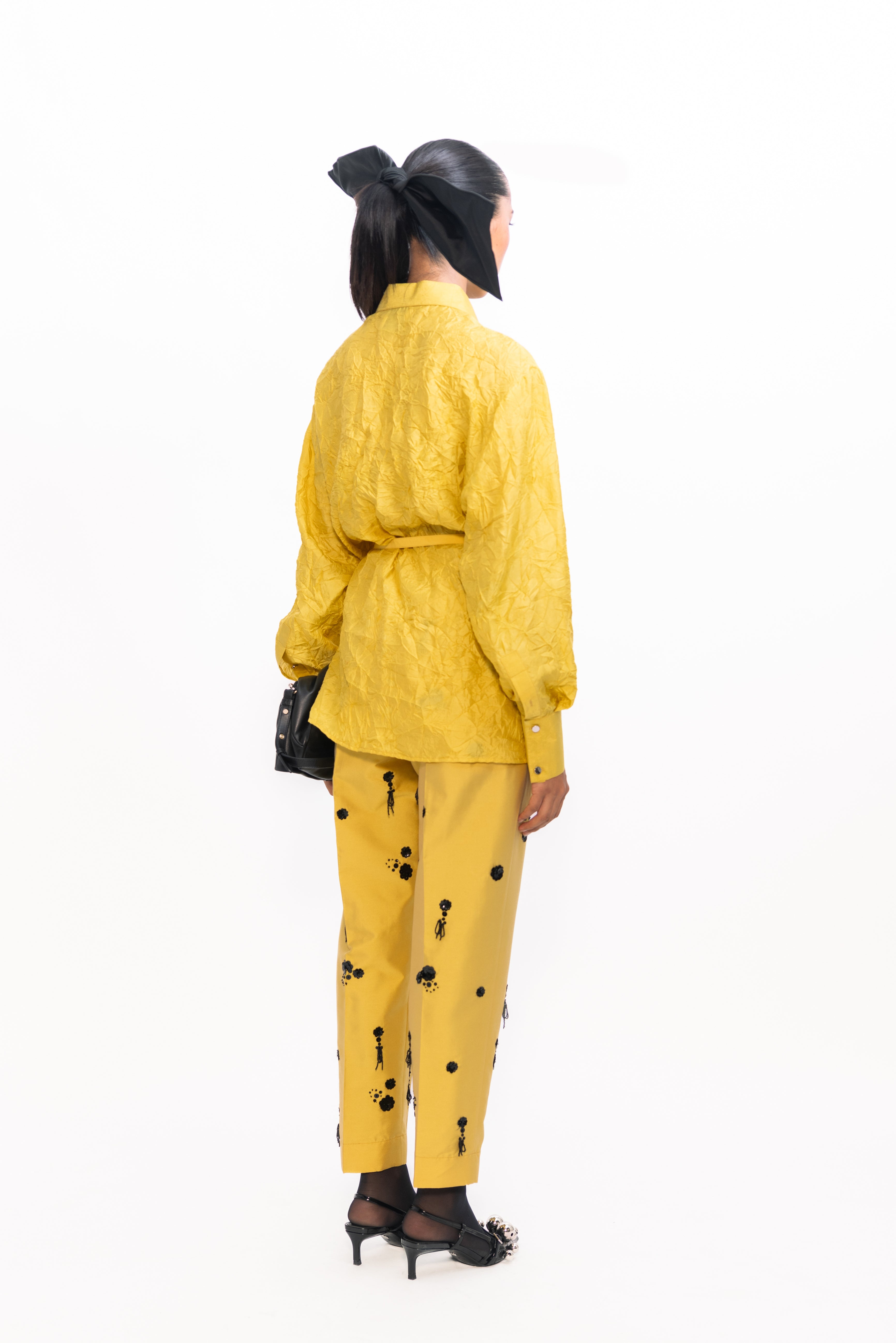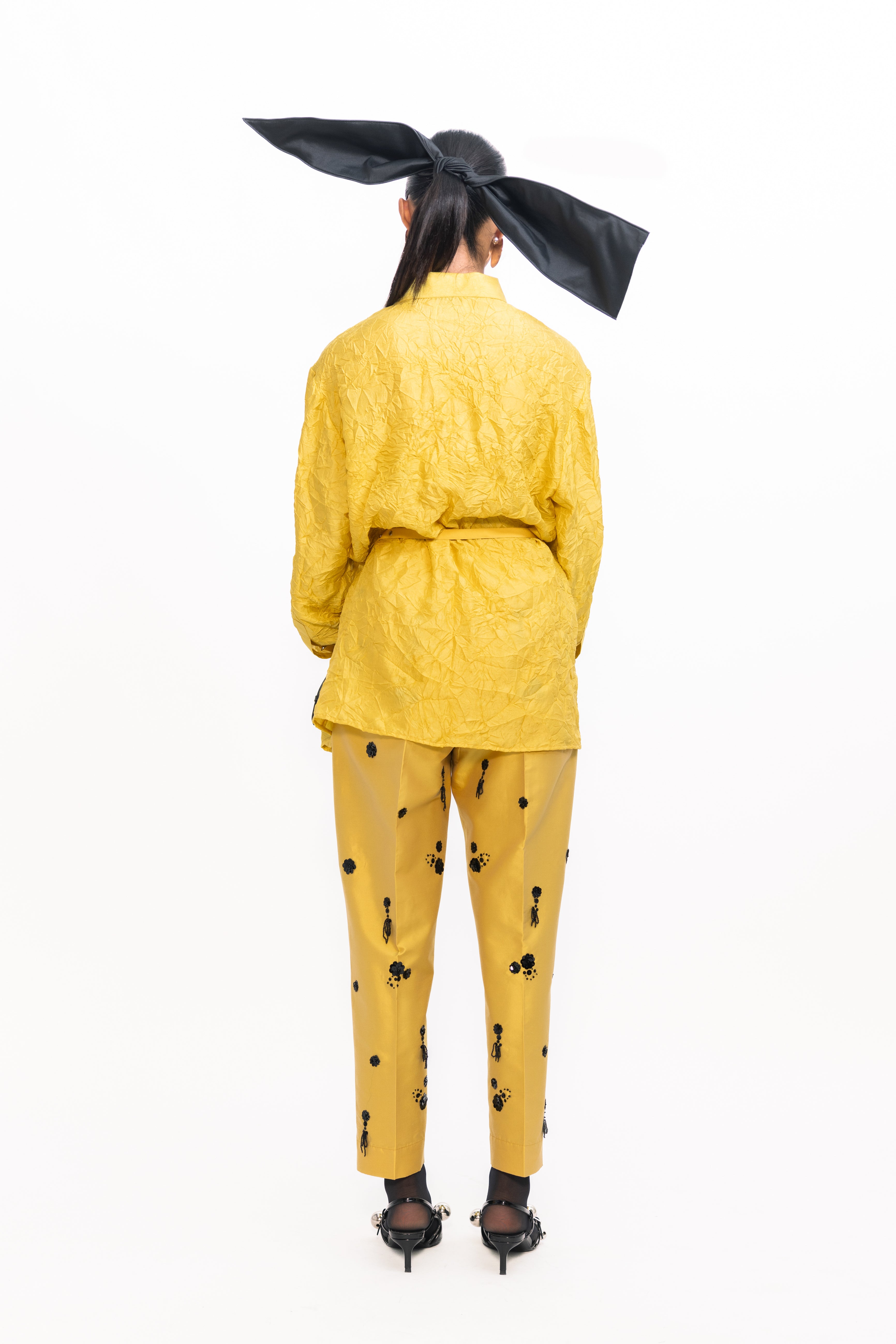 These high-waisted cigarette trousers offer a sleek, tailored silhouette that hugs the body from waist to ankle. Embellished with shimmering floral dangler sequins, they bring a striking, textural sparkle to the classic slim fit. Perfect for evening events or standout styling, this versatile piece pairs effortlessly with everything from minimalist tops to coordinated statement pieces.