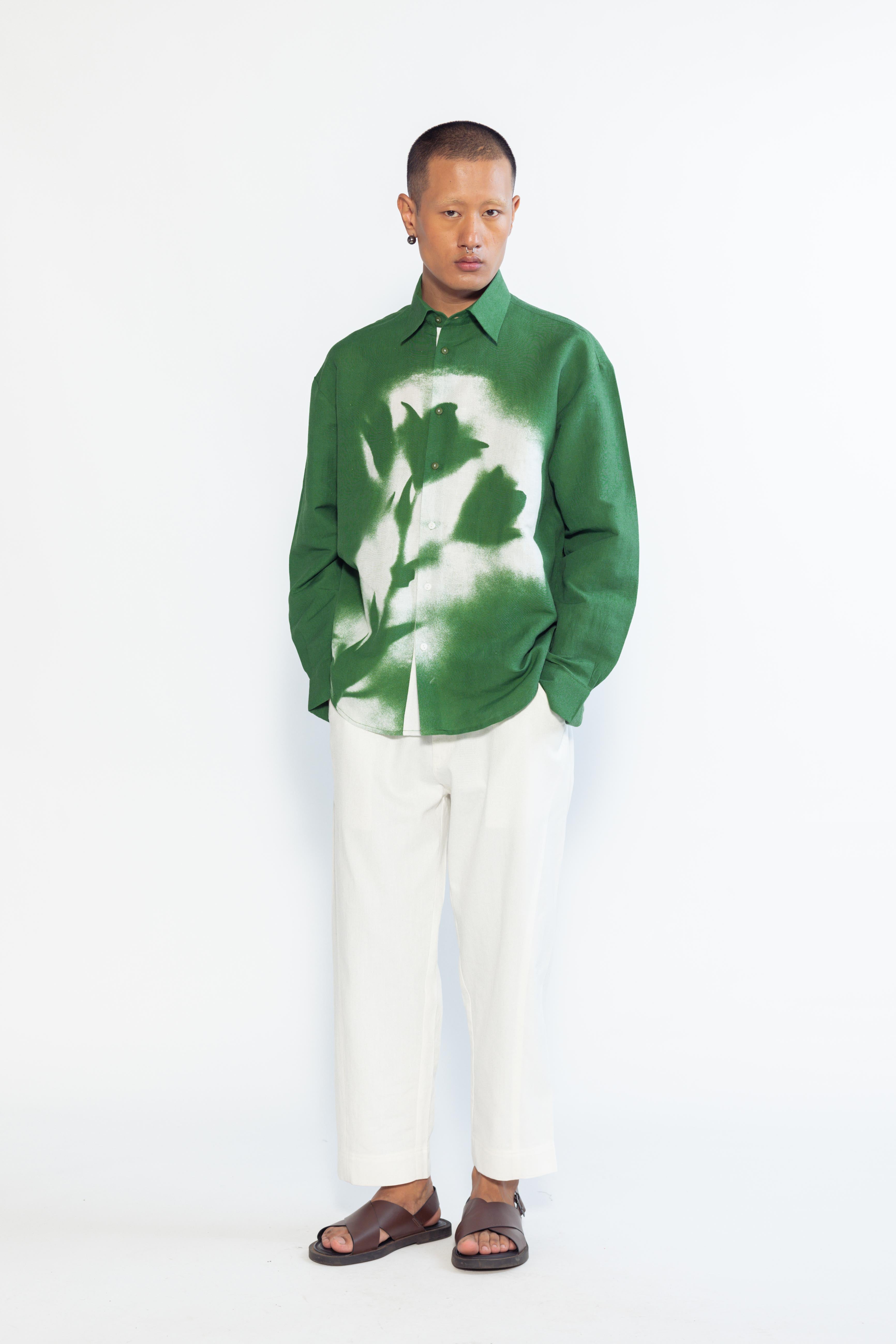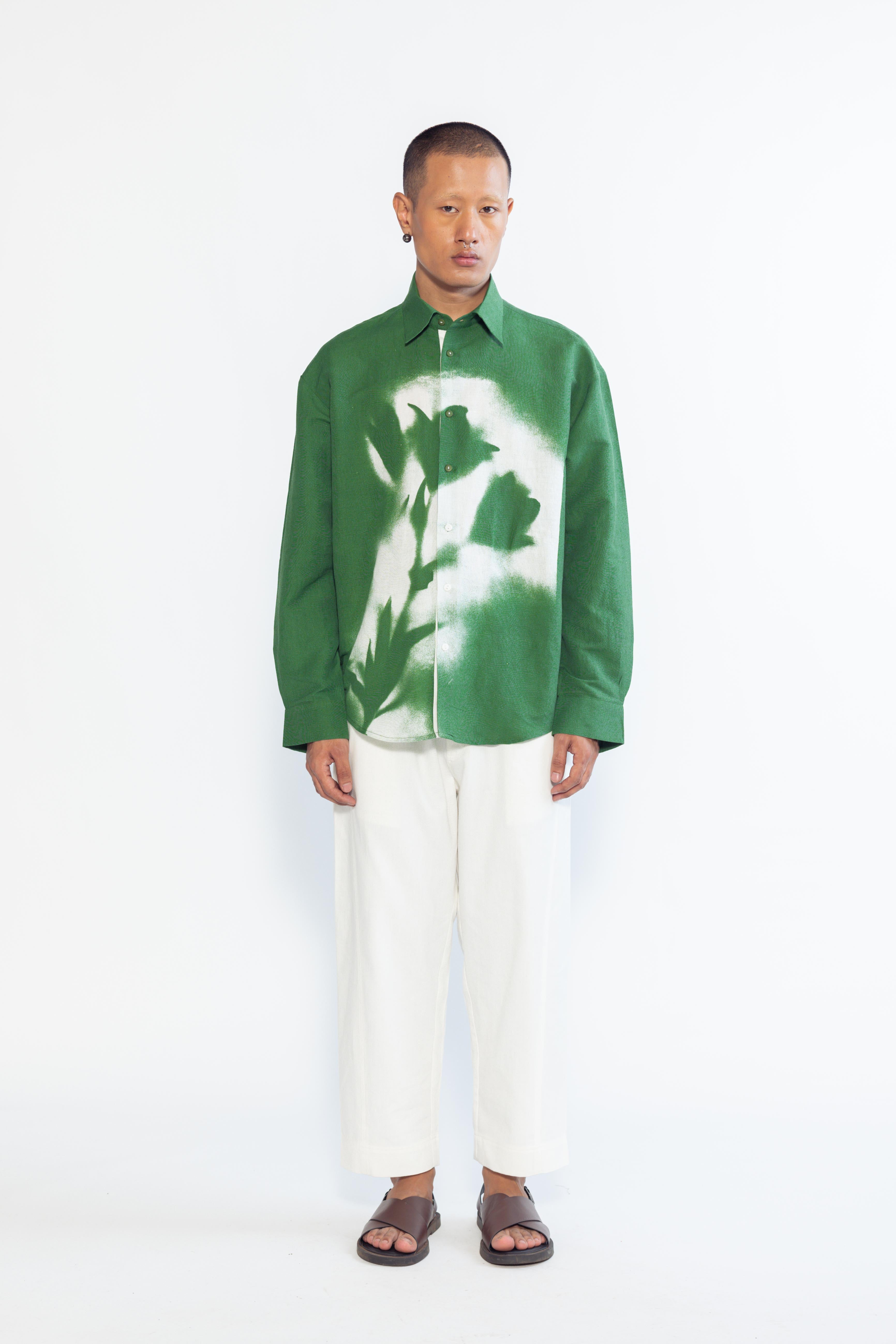 A single black floral form anchors the surface of this airy white shirt, offering quiet contrast and visual ease. Cut in an oversized silhouette, the shape feels open and relaxed while the crisp base keeps it structured. The print placement is intentional — soft but striking, allowing the rest of the piece to remain pared-back. Lightweight and breathable, it's a refined take on everyday statement dressing.