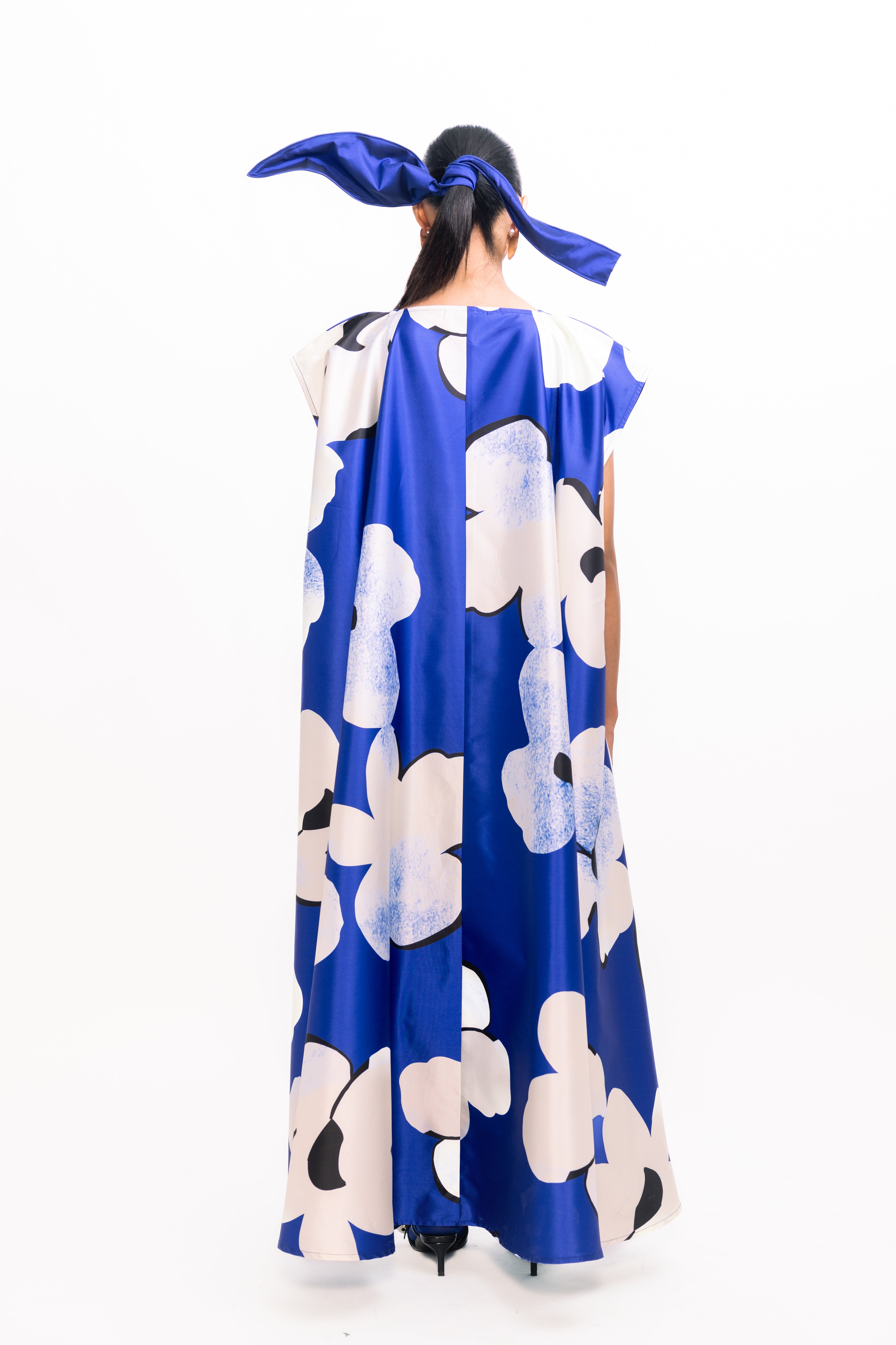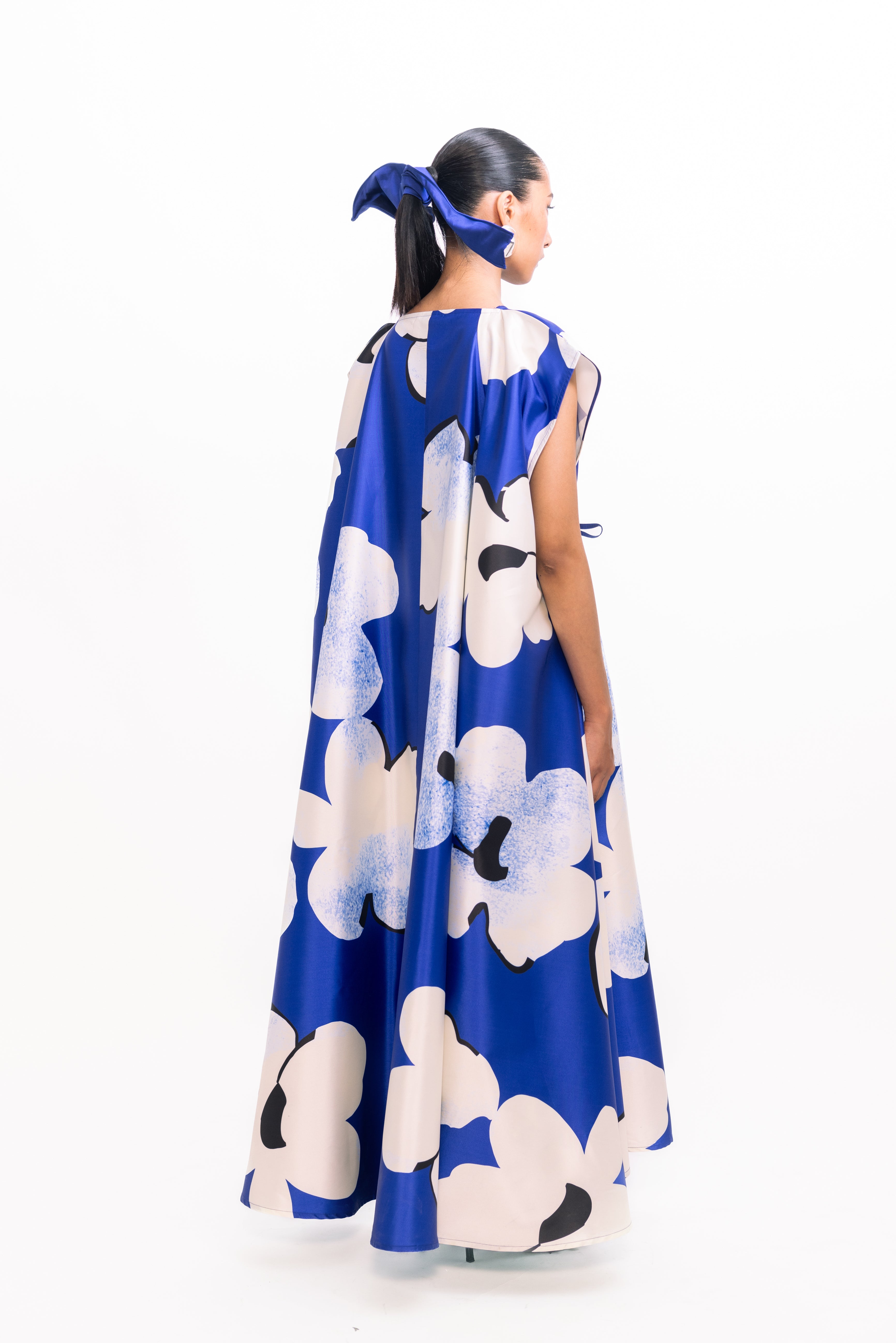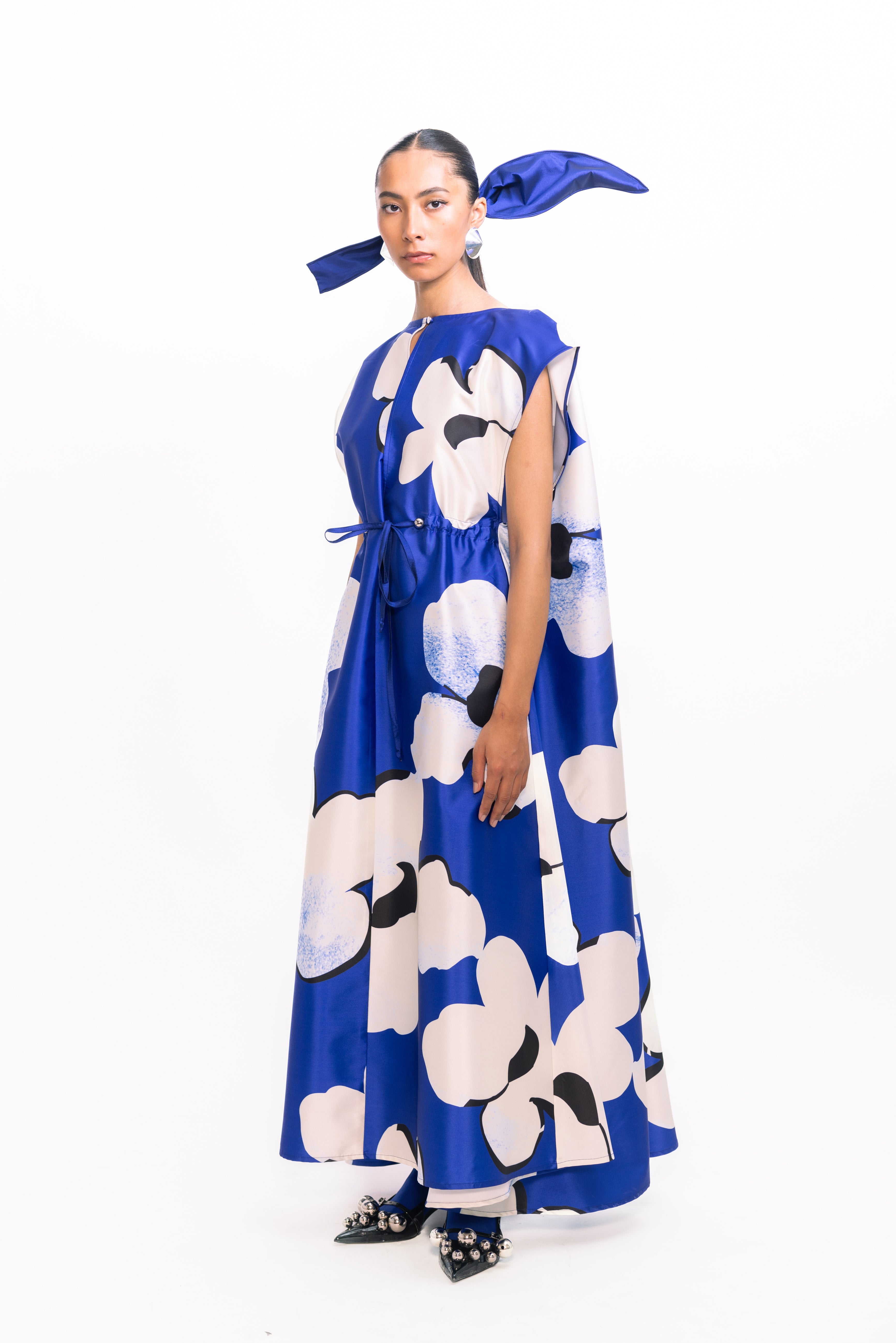 This long dress features a soft drawstring waist that allows for a customizable, cinched fit. The skirt flows into a graceful, trail-like back, adding a touch of drama and movement with every step. Effortlessly elegant, it transitions beautifully from daytime gatherings to evening occasions.