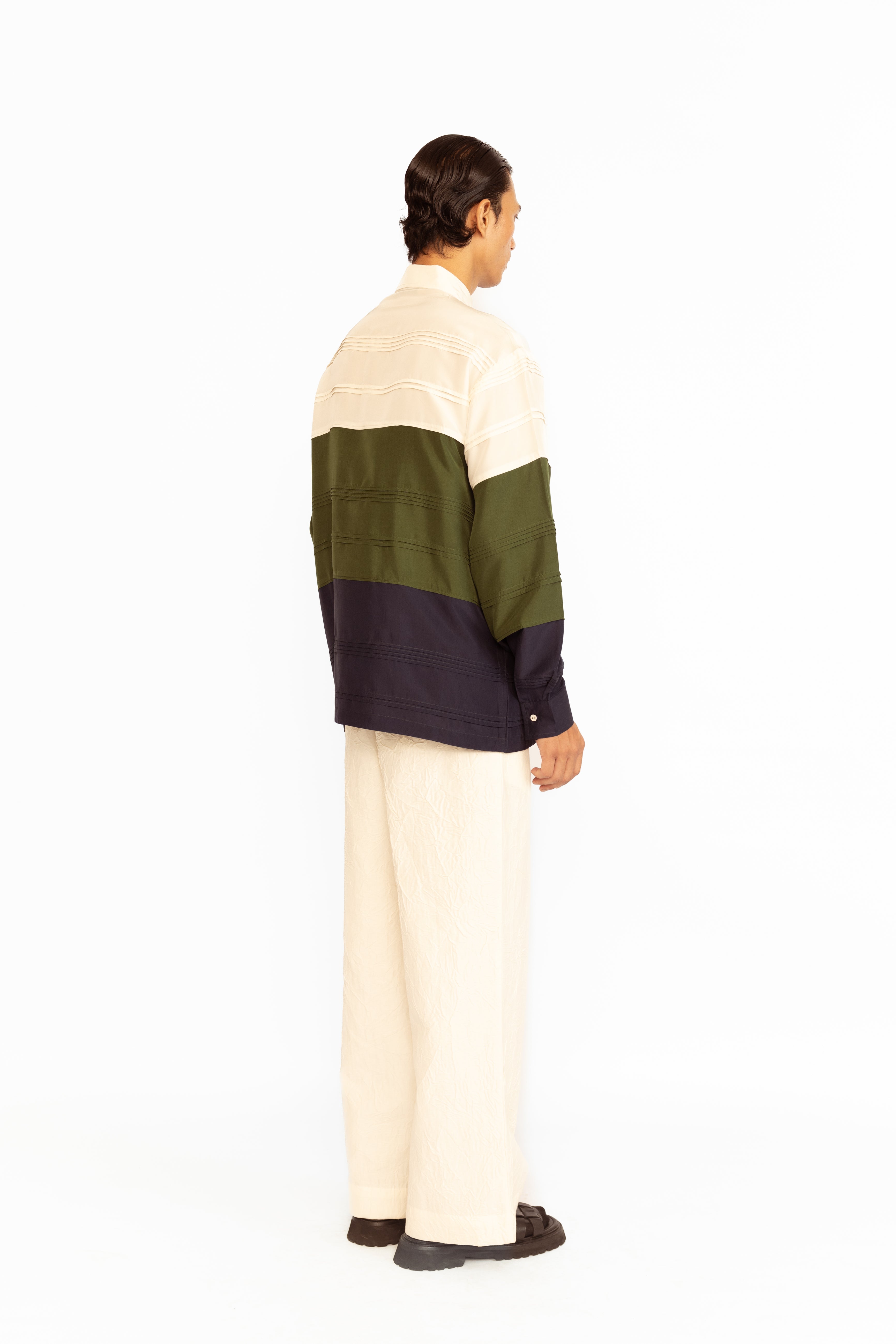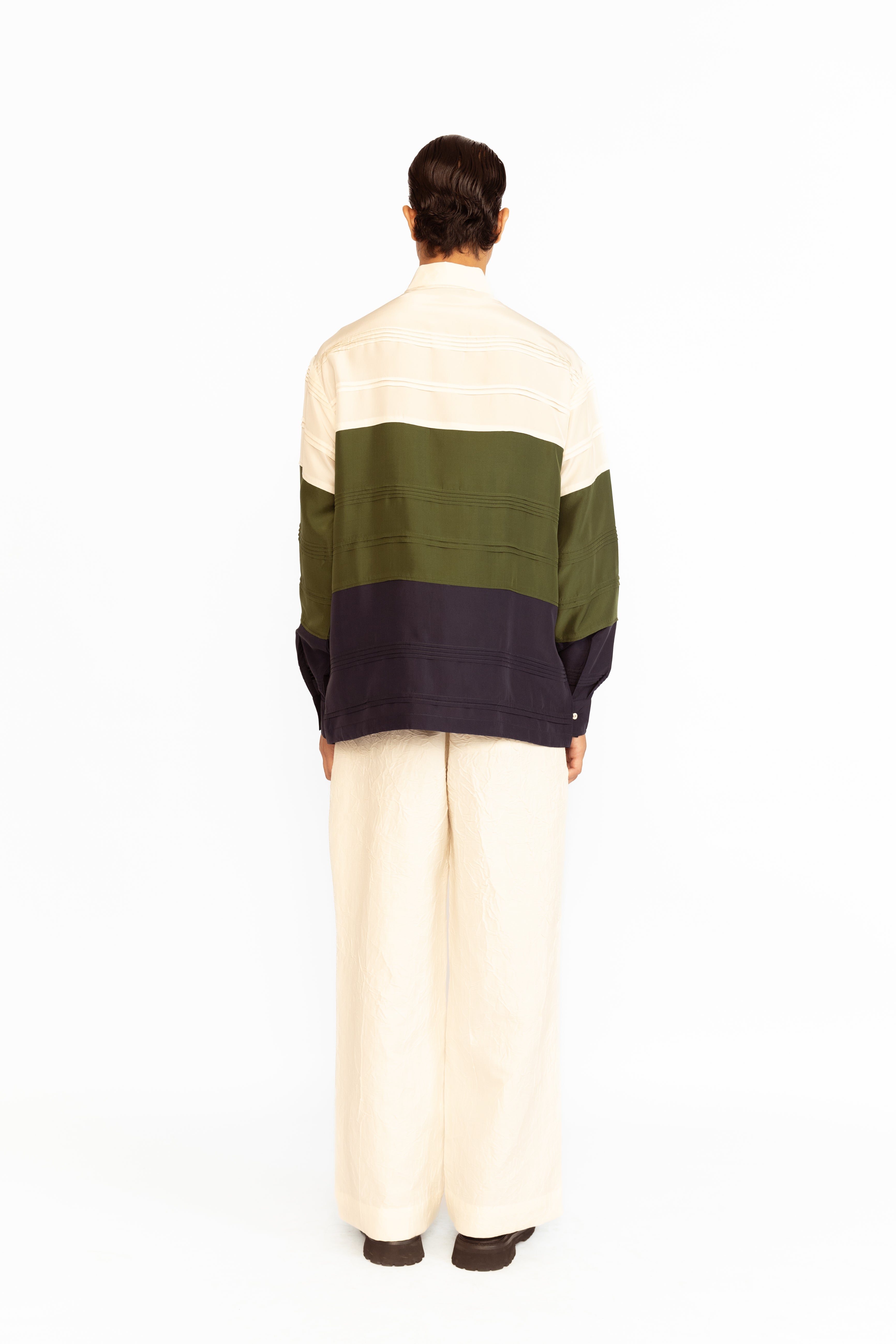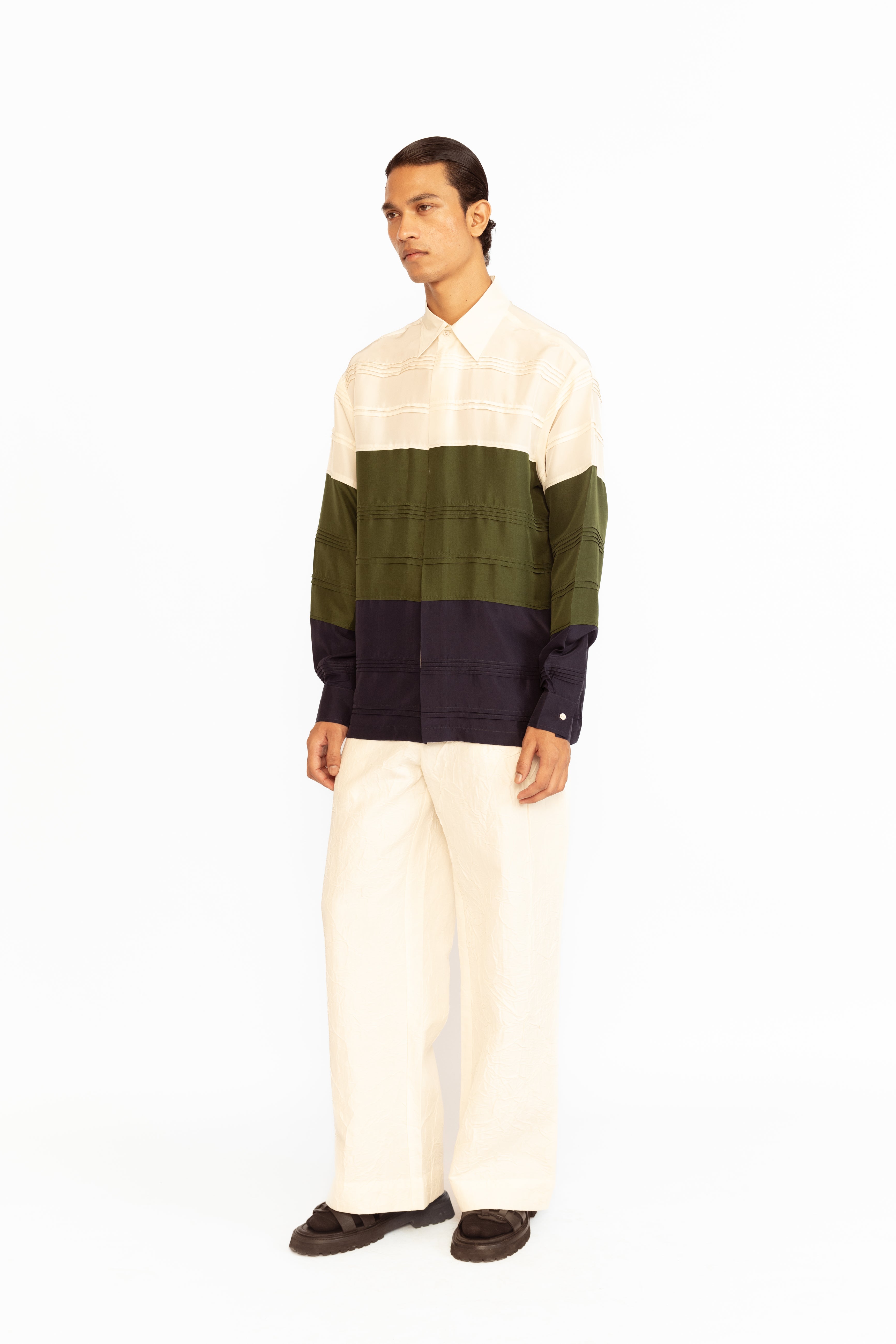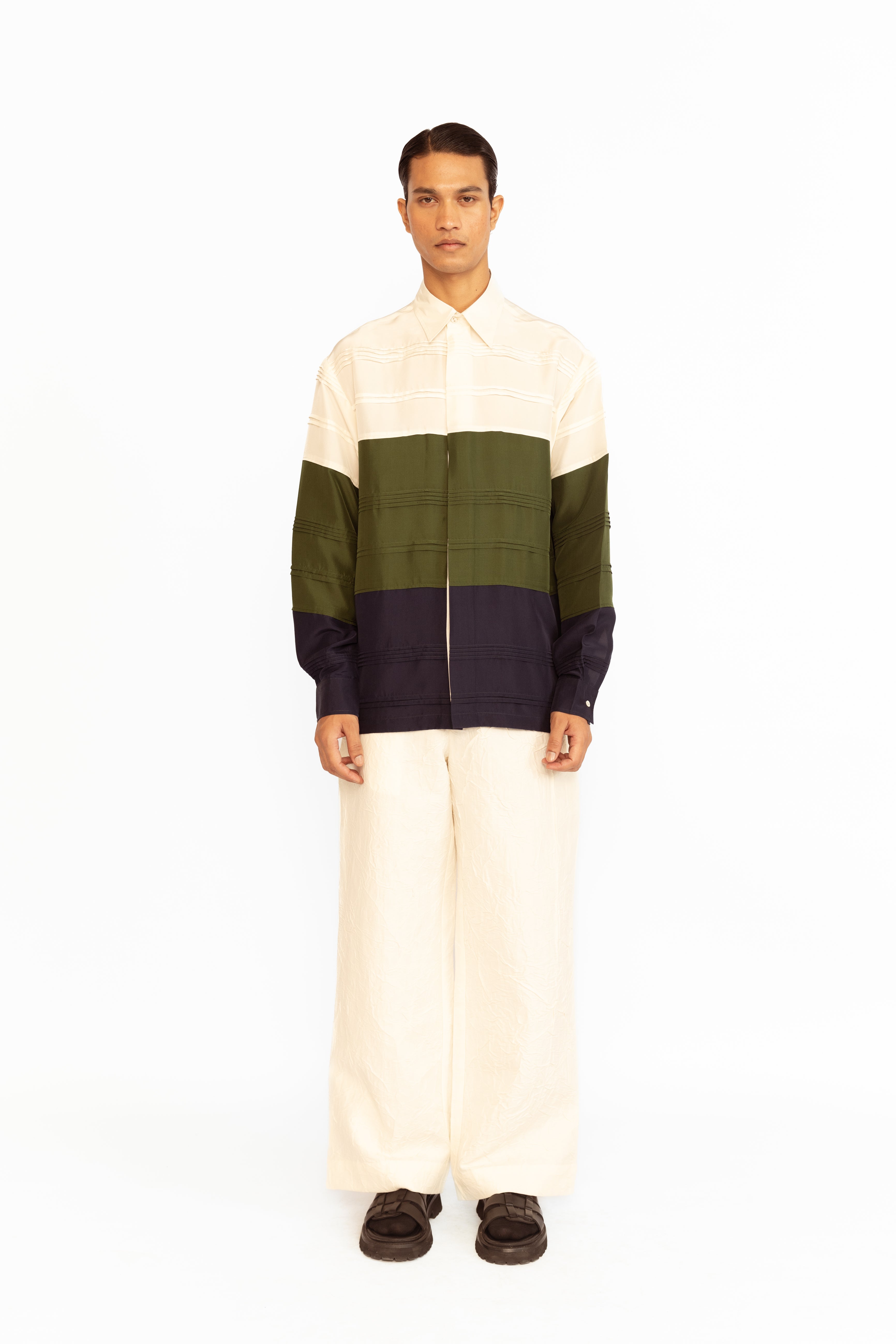 Asher Silk Shirt - Ivory, Olive Green & Navy