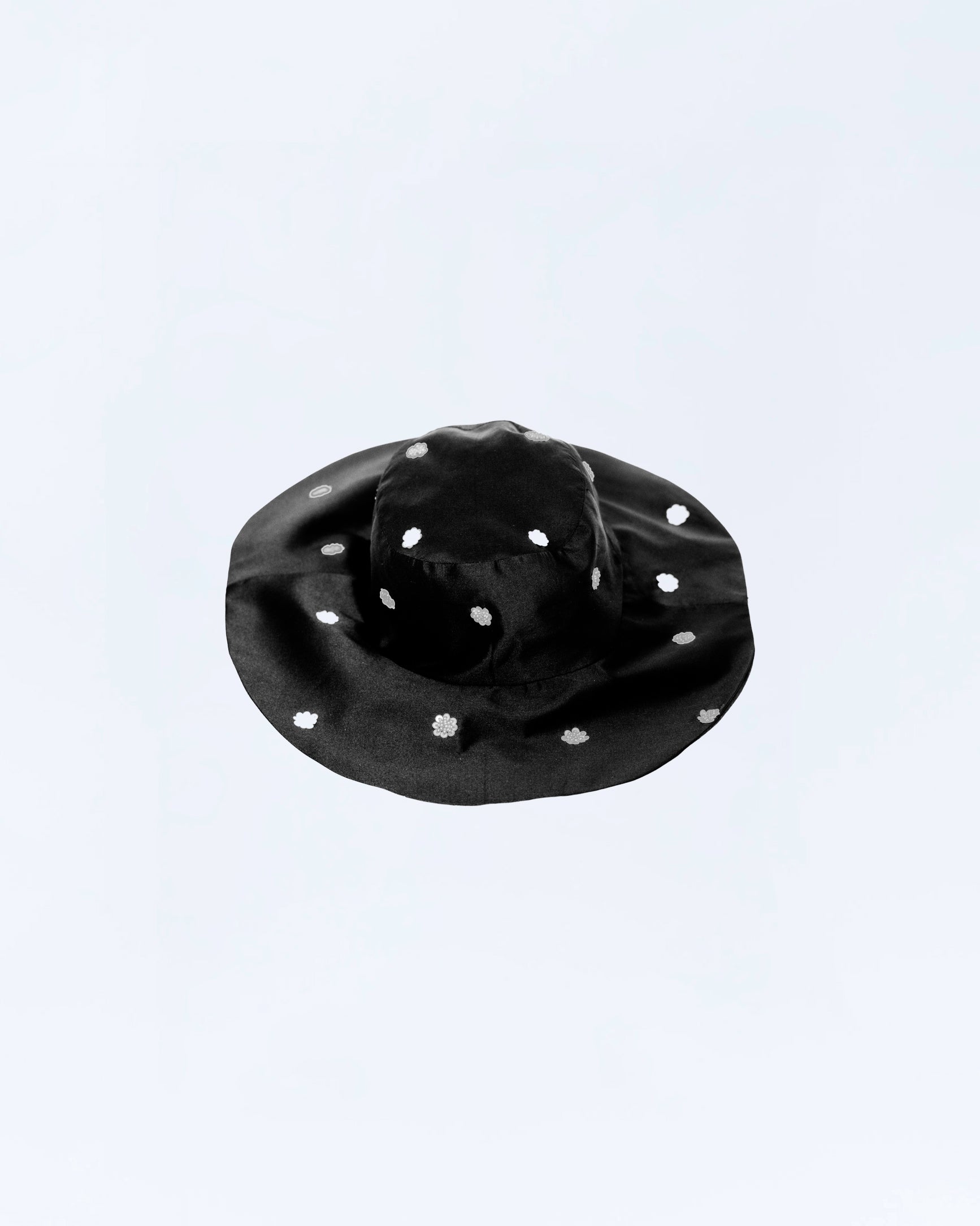 A classic silhouette with a subtle sparkle. This bucket hat is elevated with precise grid-pattern sequin embroidery, adding a modern geometric sheen to a timeless shape. Lightweight yet structured, it brings just the right touch of shine—perfect for daytime edge or evening flair. A standout accessory that turns simplicity into statement.