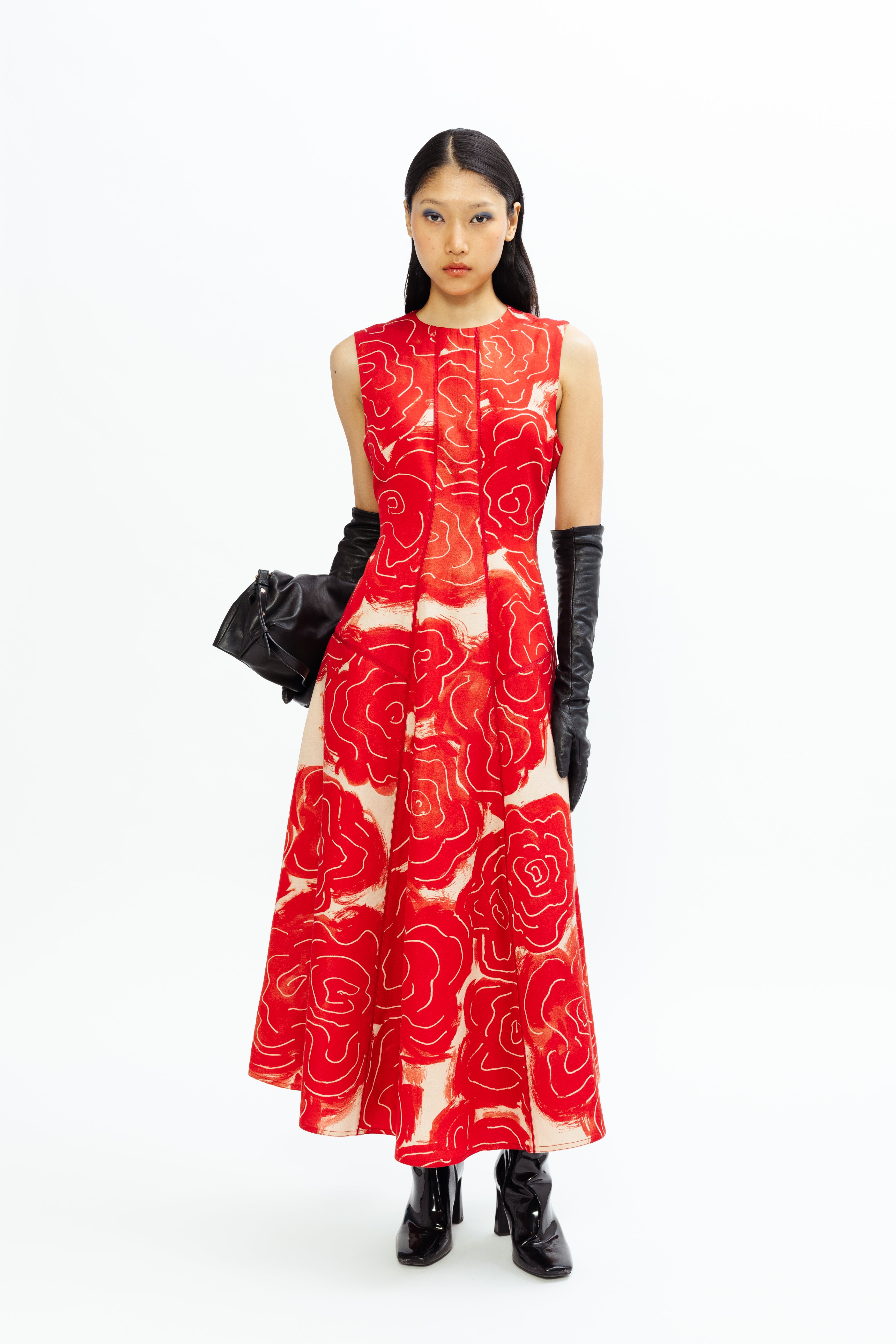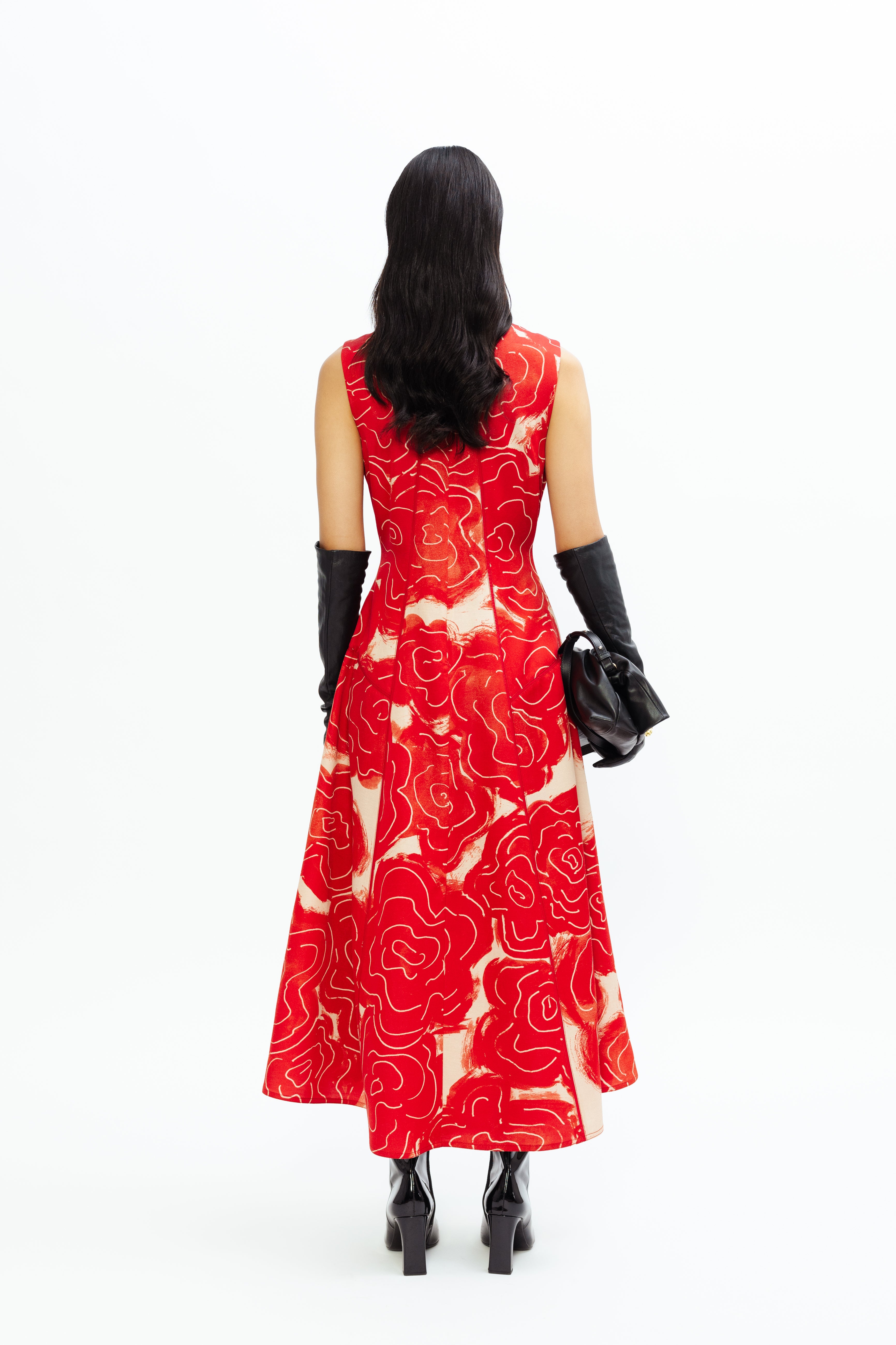 This A-line dress features a fitted bodice that accentuates the waist before flowing into a graceful flare, creating a refined yet feminine silhouette. Perfect for black-tie events, weddings, or sophisticated soirées, it blends timeless elegance with a subtle touch of print for a polished, modern appeal.