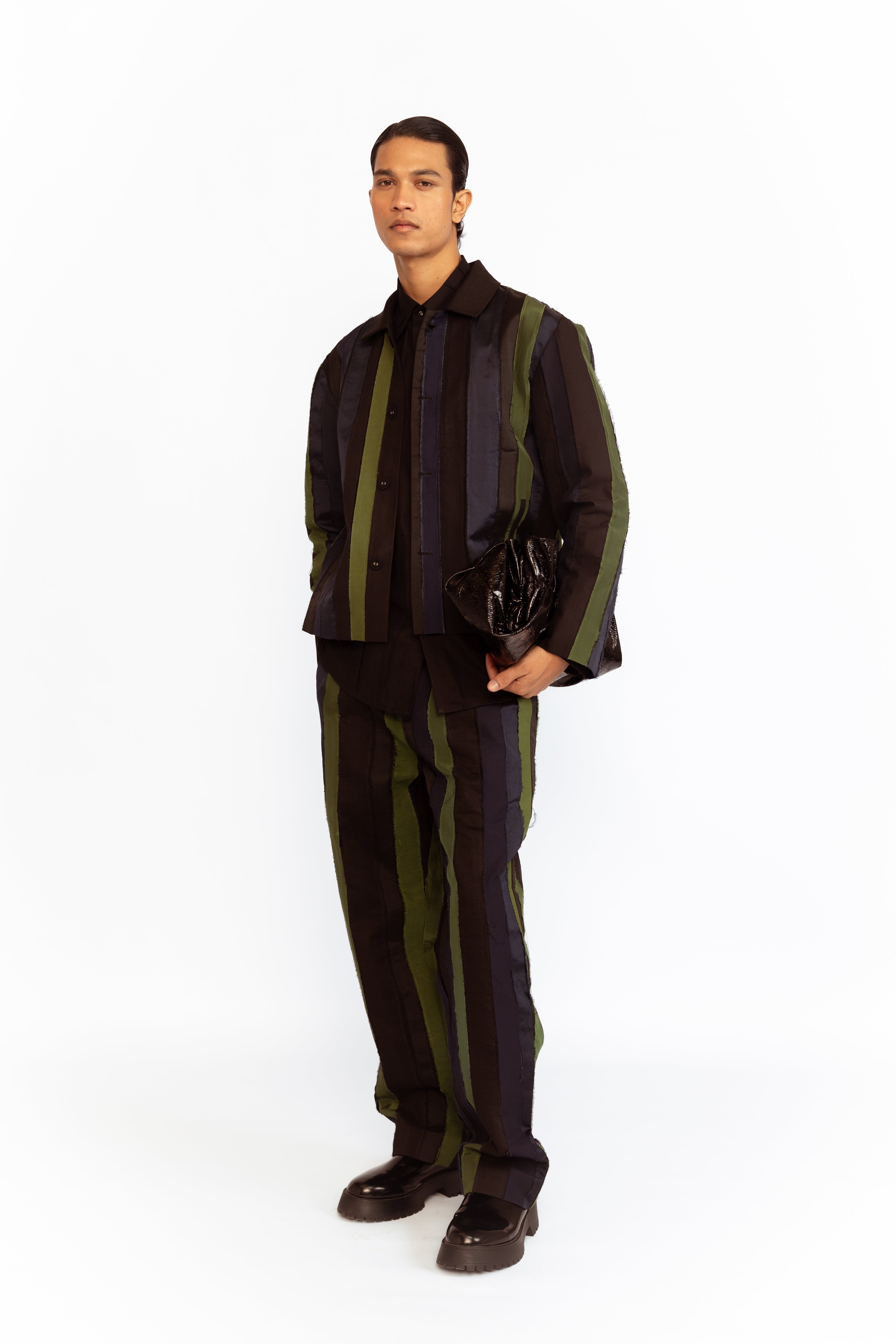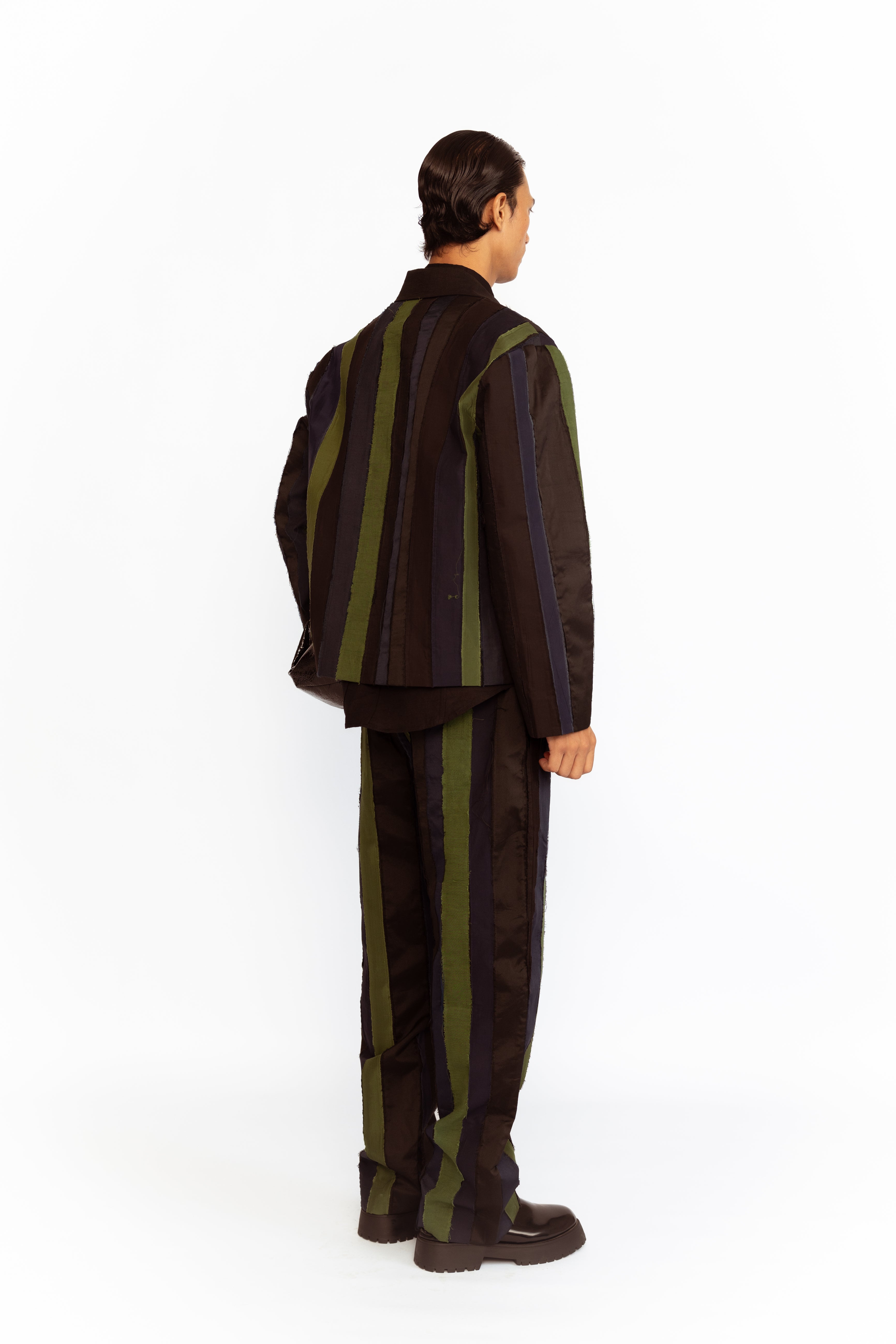 A statement outerwear piece — this panelled jacket showcases striking tri-colour blocking and clean tailoring, finished with two pockets for a structured, contemporary look.