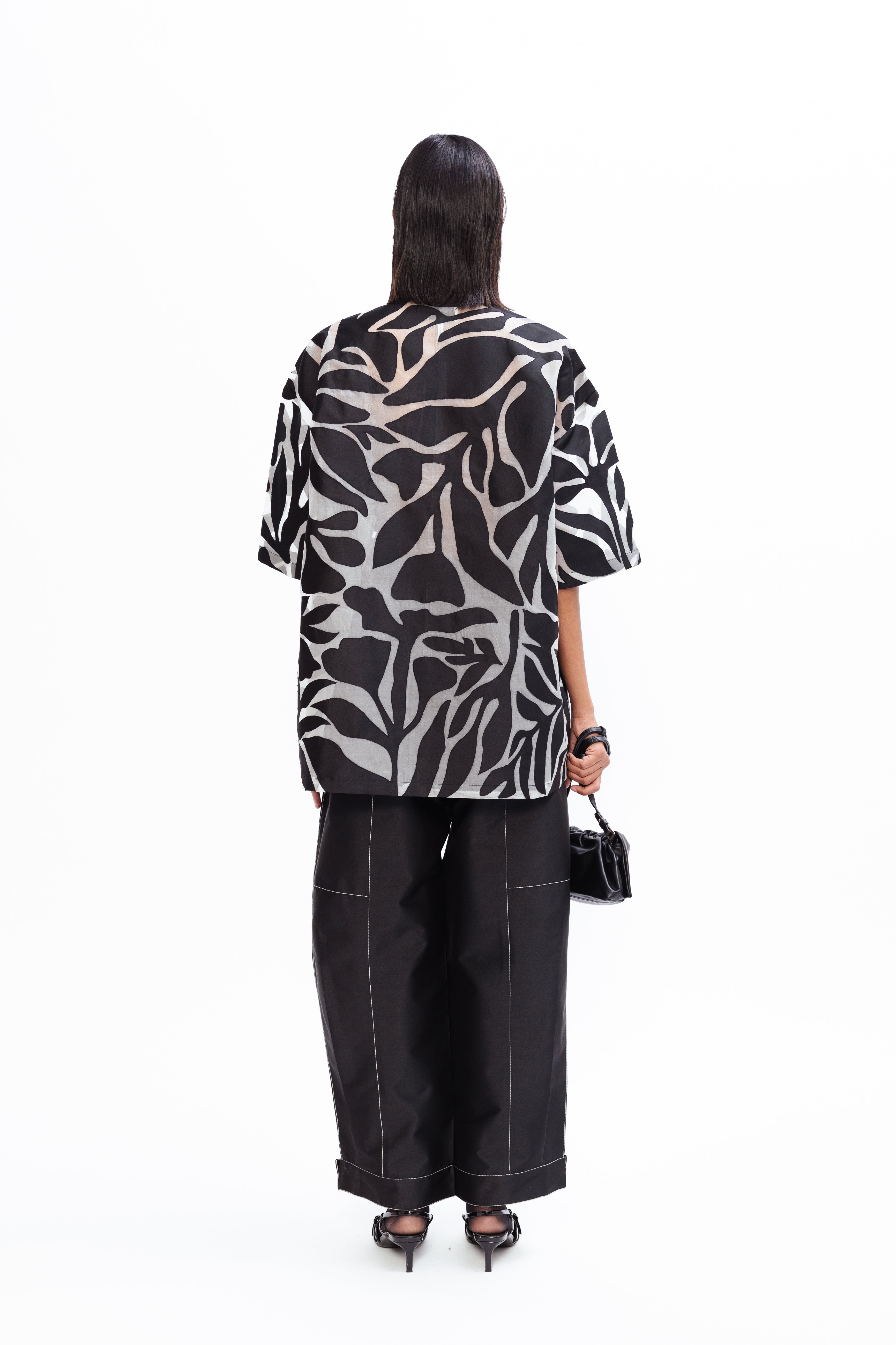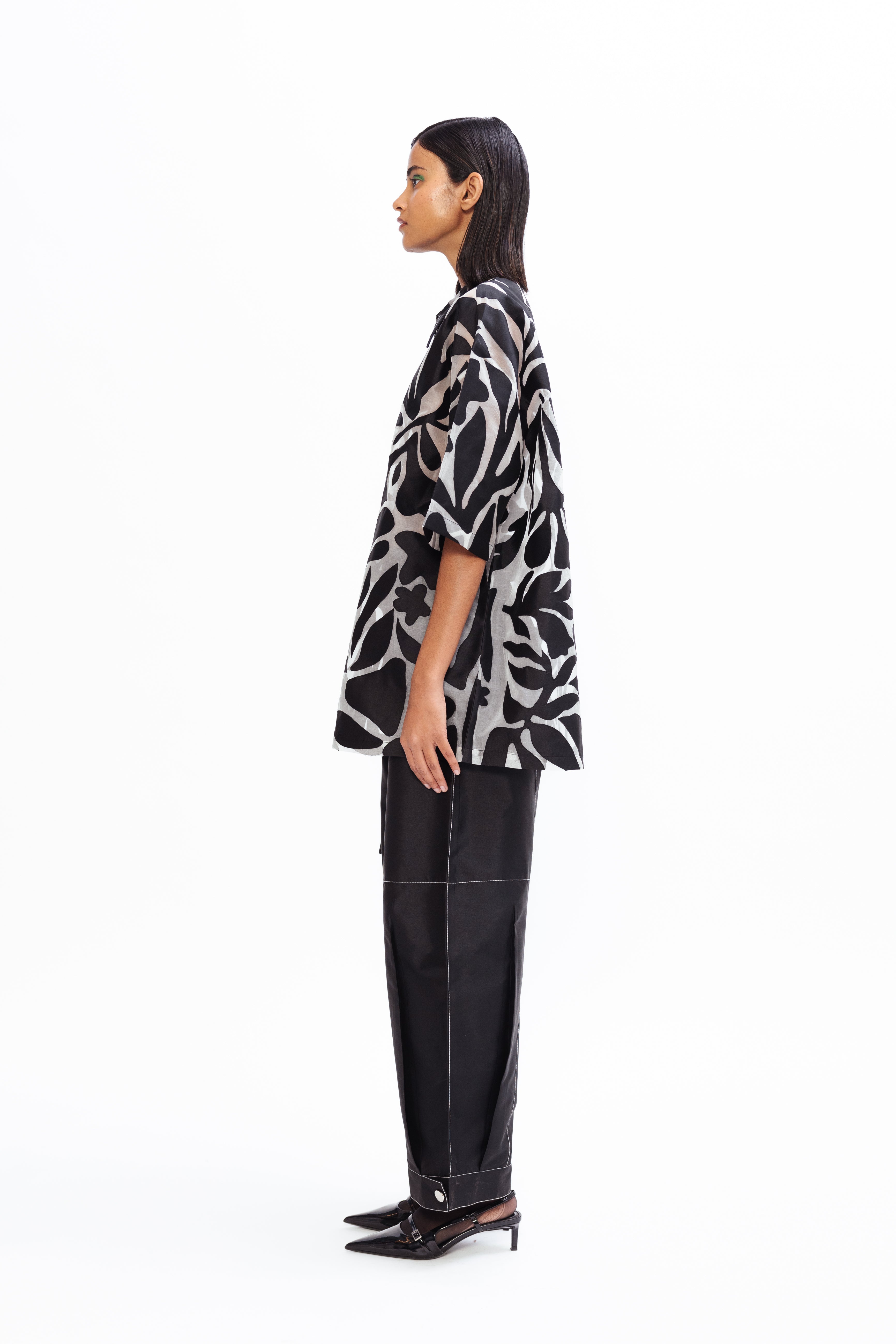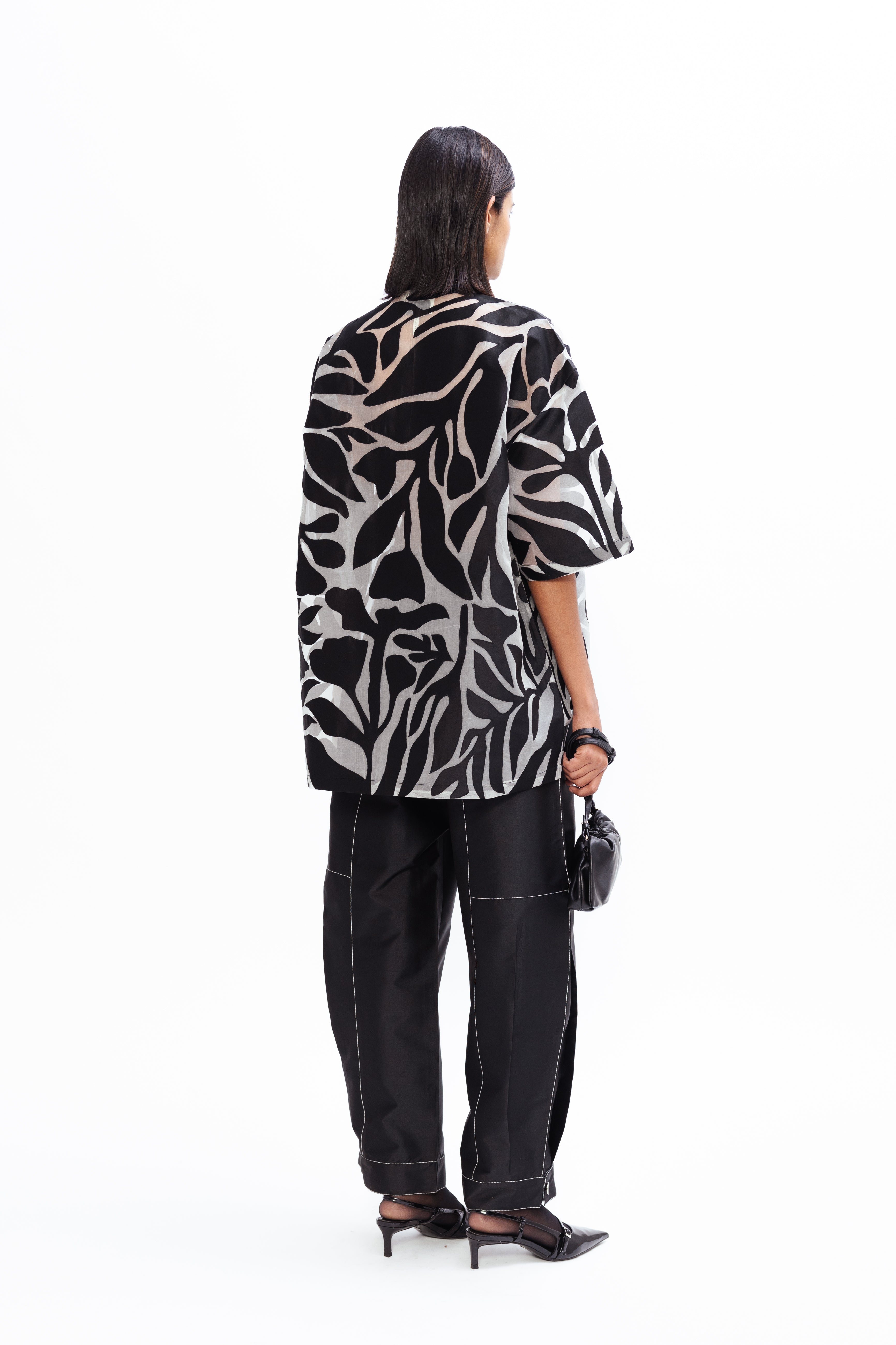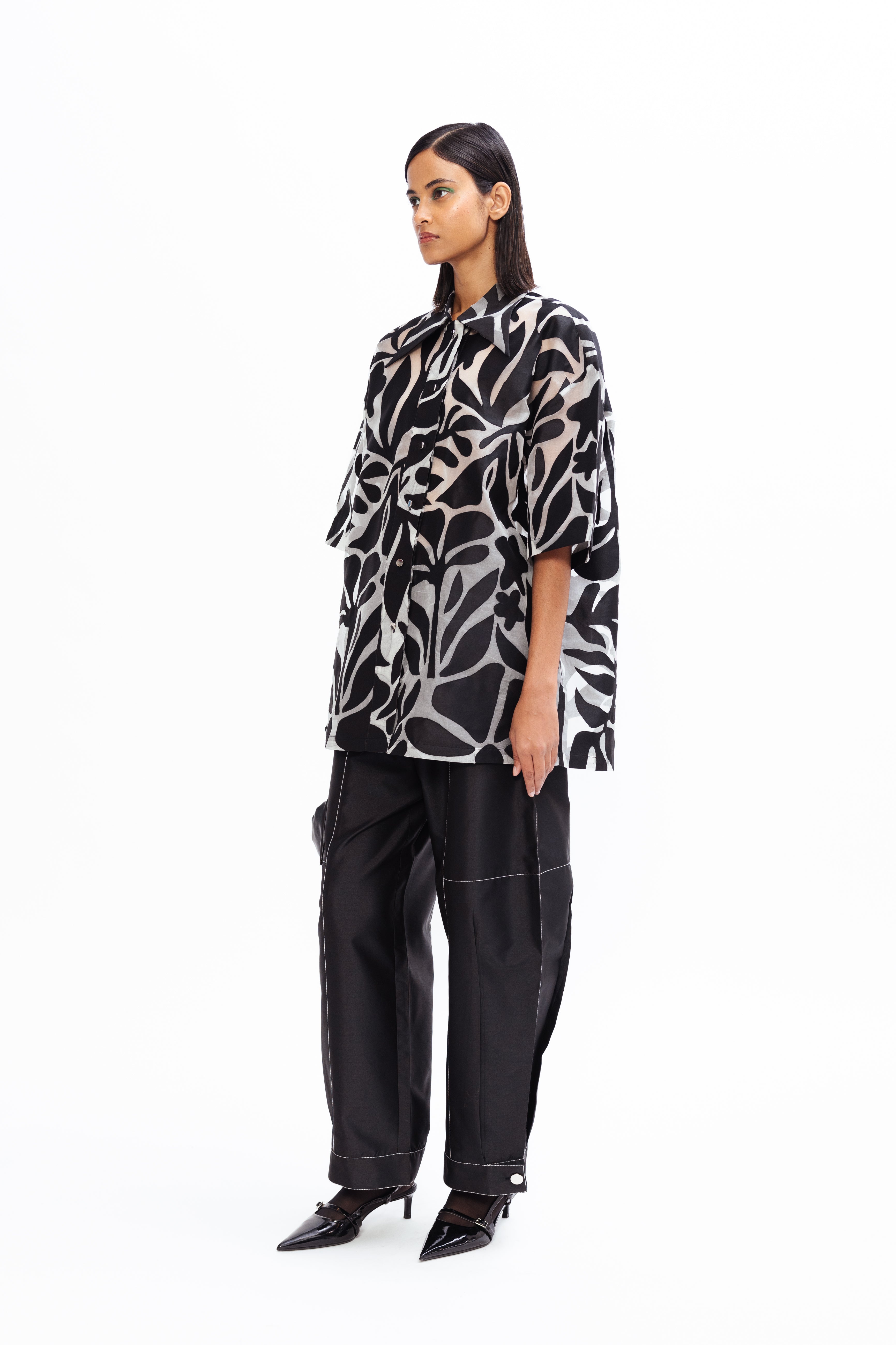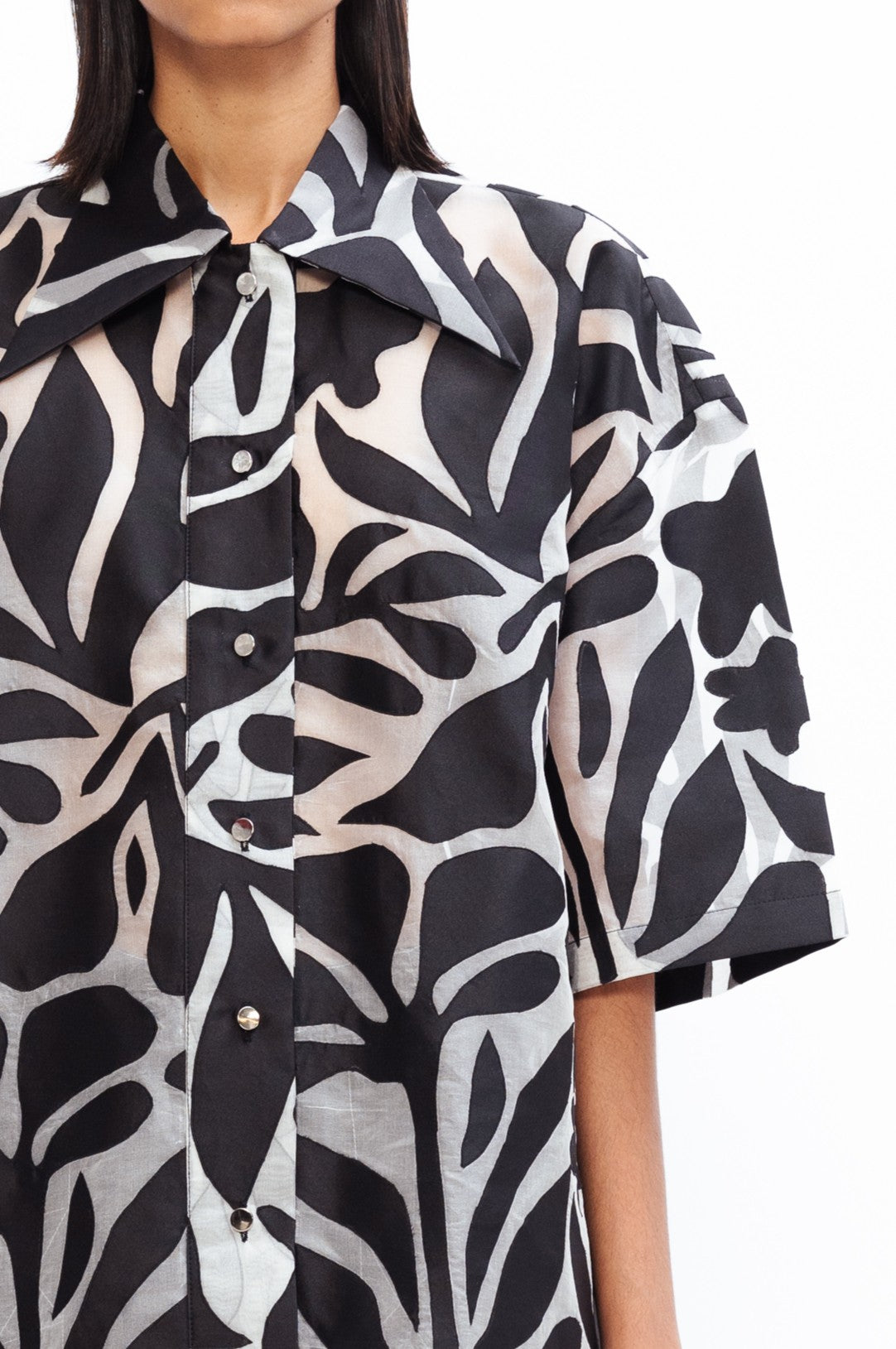 A classic button-down shirt crafted from sheer fabric, offering a light and airy feel. The transparent finish adds subtle sophistication, while the tailored structure keeps the silhouette crisp and versatile for layering or standalone wear.