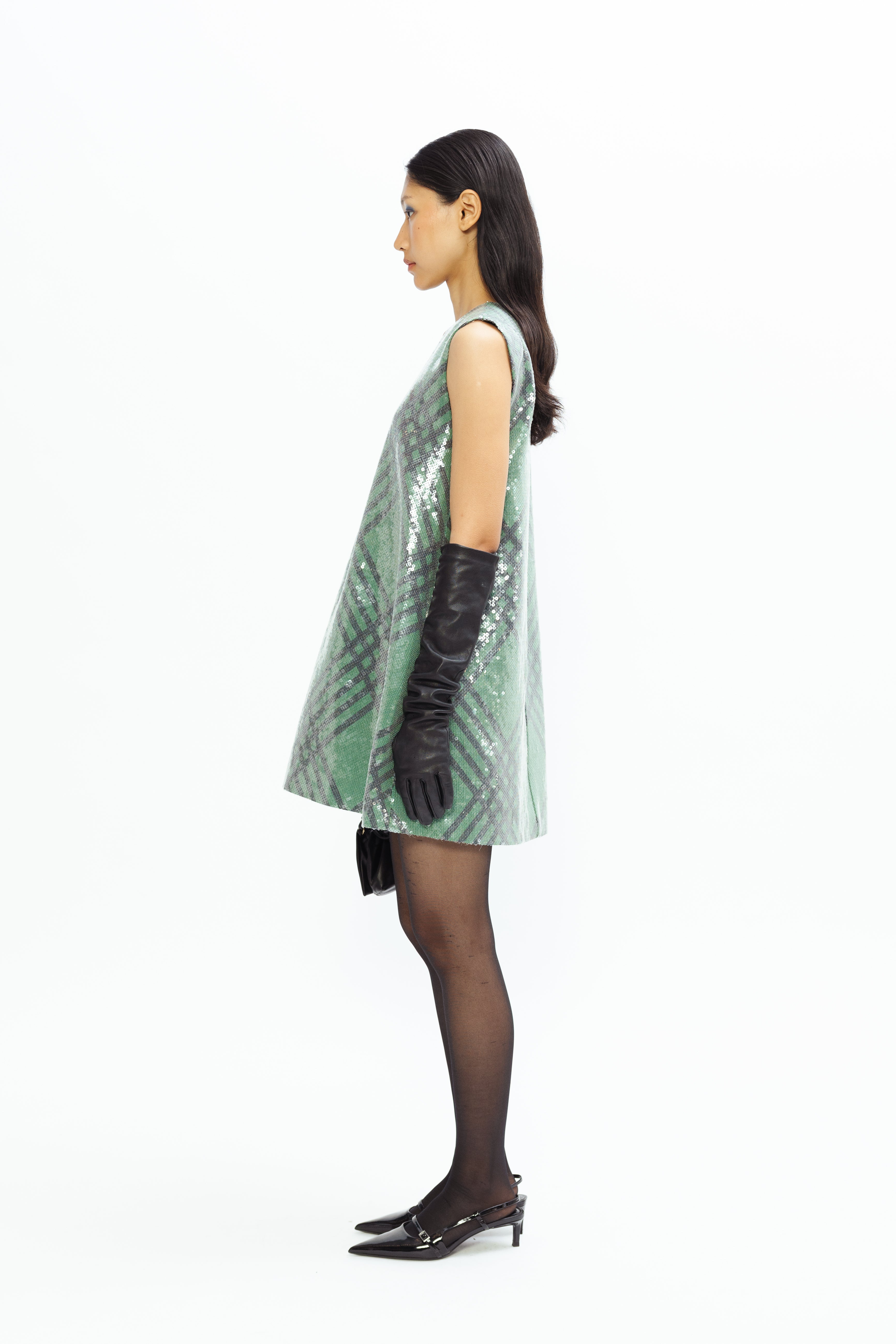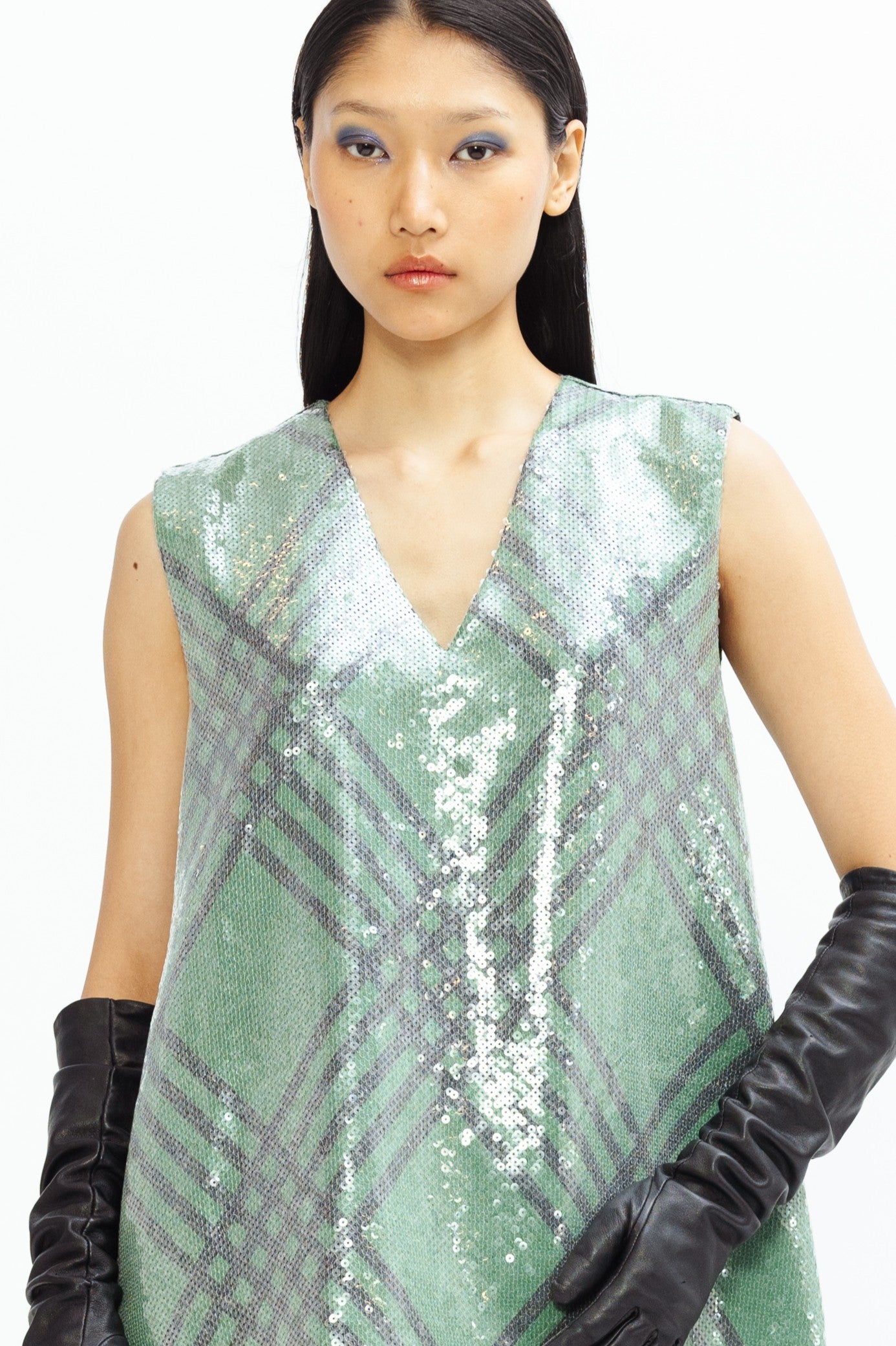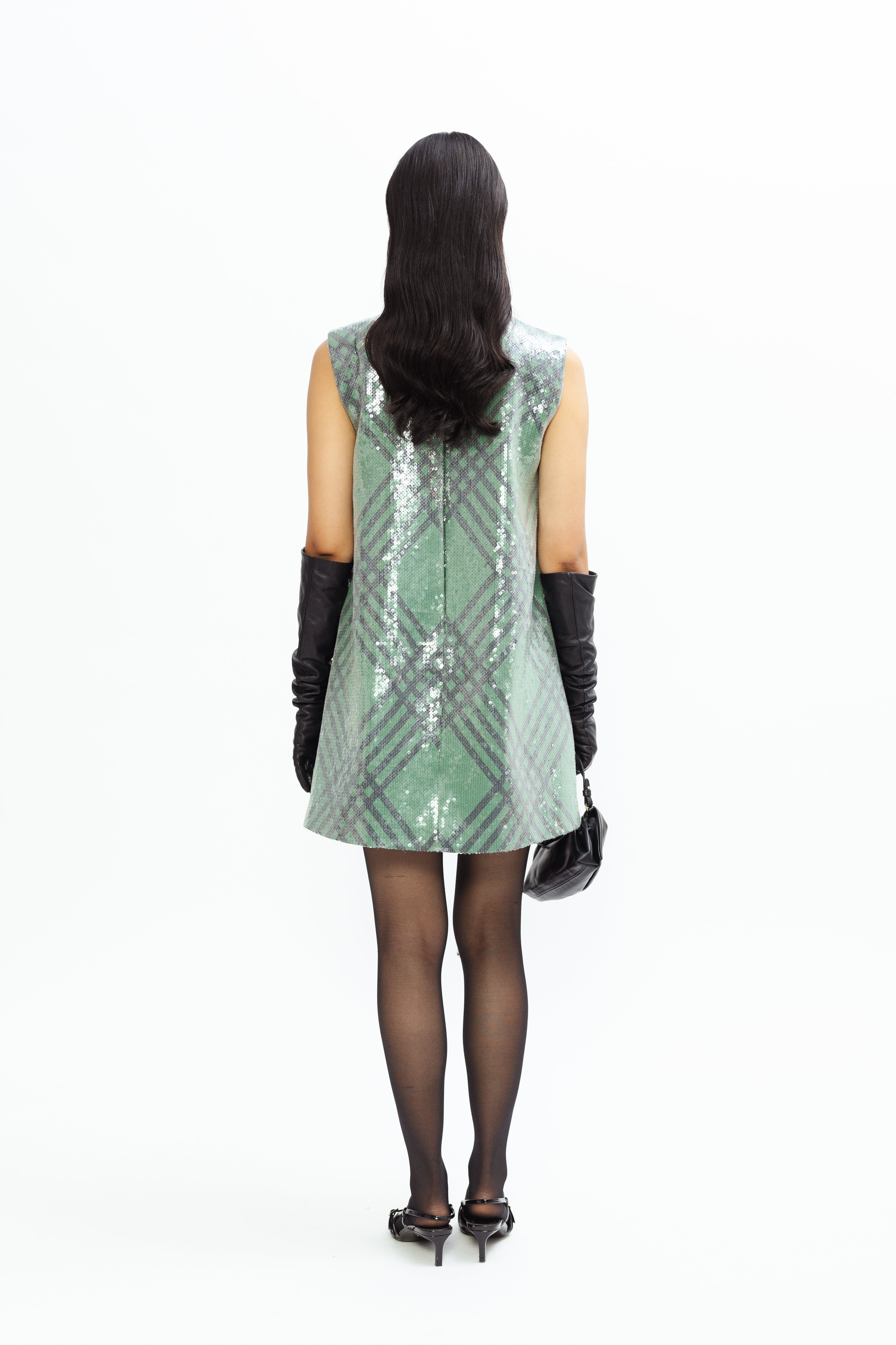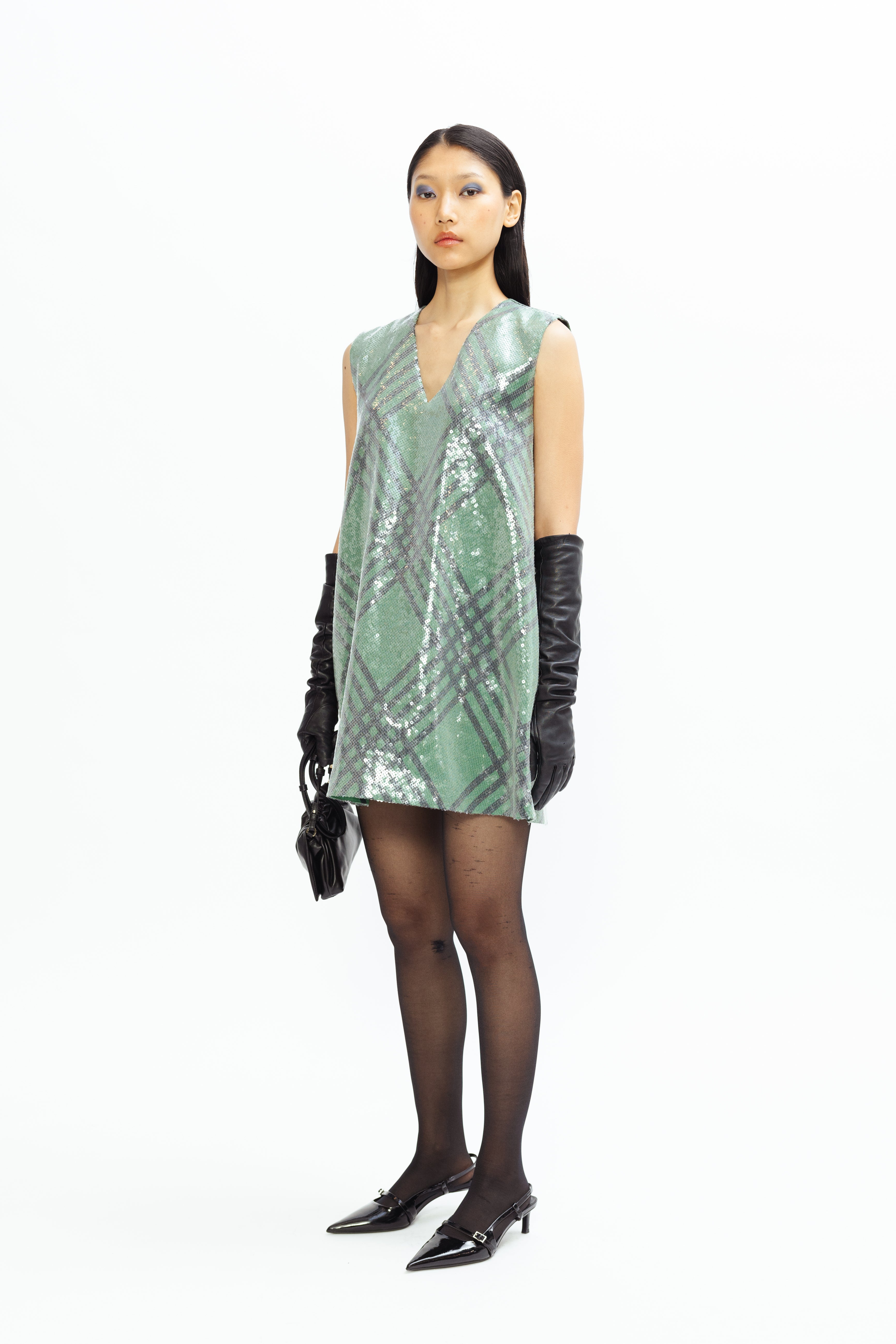 A chic mini dress featuring an all-over sequinned tartan pattern and a flattering V-neckline. The shimmering finish adds effortless glamour, making it perfect for parties and special occasions. Lightweight, comfortable, and designed to stand out with minimal effort.