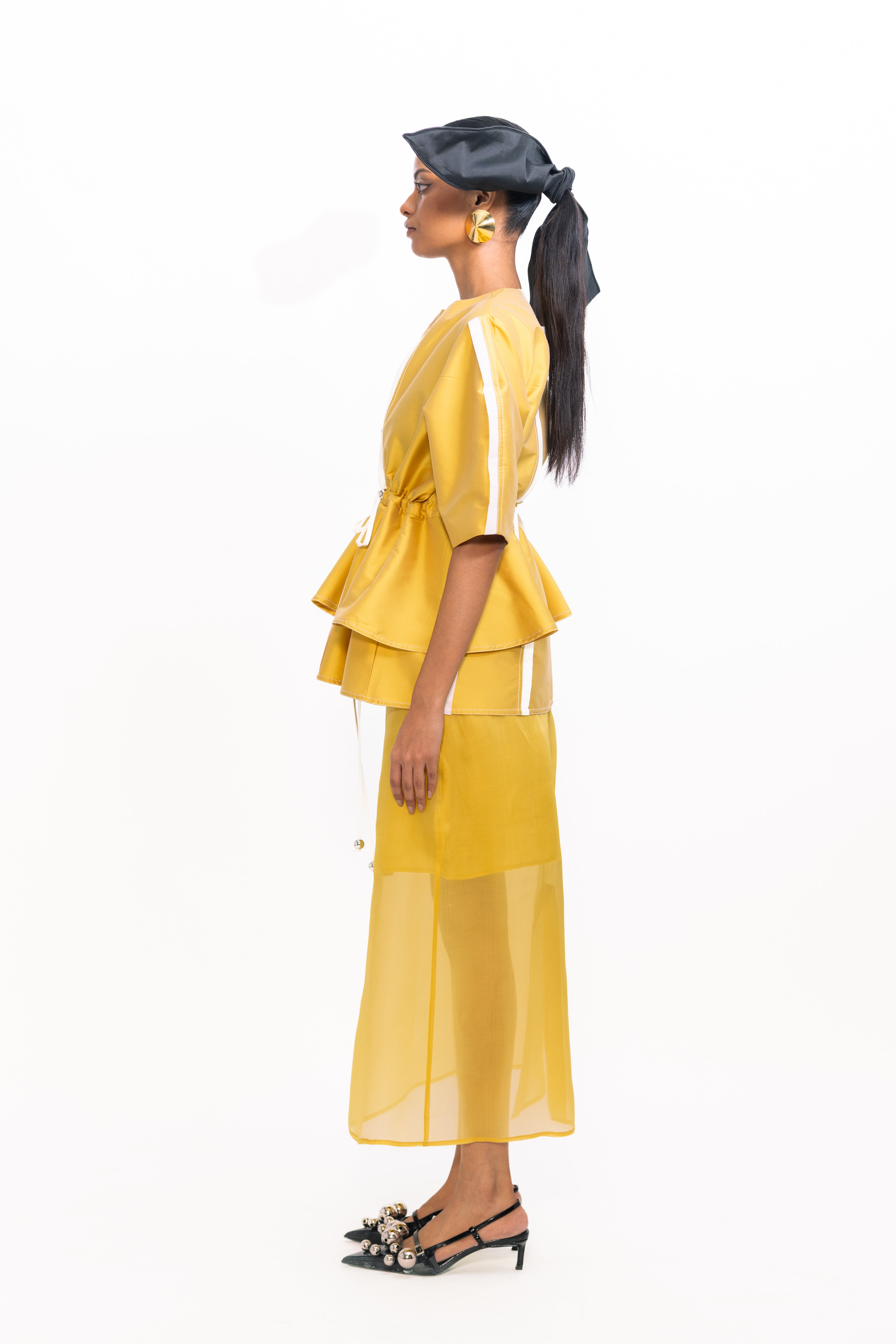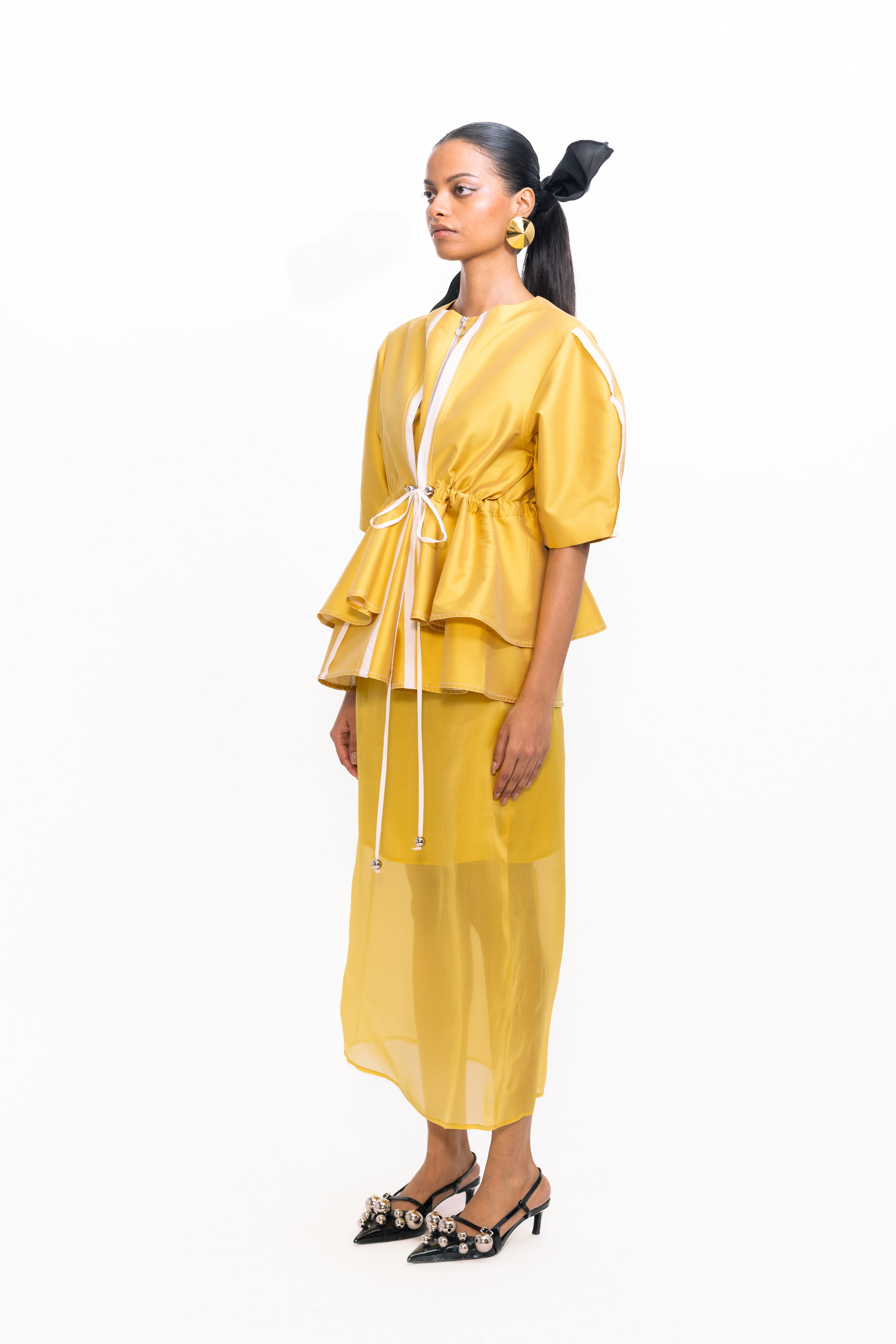 A delicate organza skirt that strikes the perfect balance between ethereal and modern. Crafted from sheer organza, it features a subtle half lining that offers coverage while allowing the airy fabric to flow beautifully. Perfect for layering or pairing with sleek separates for a sophisticated look.