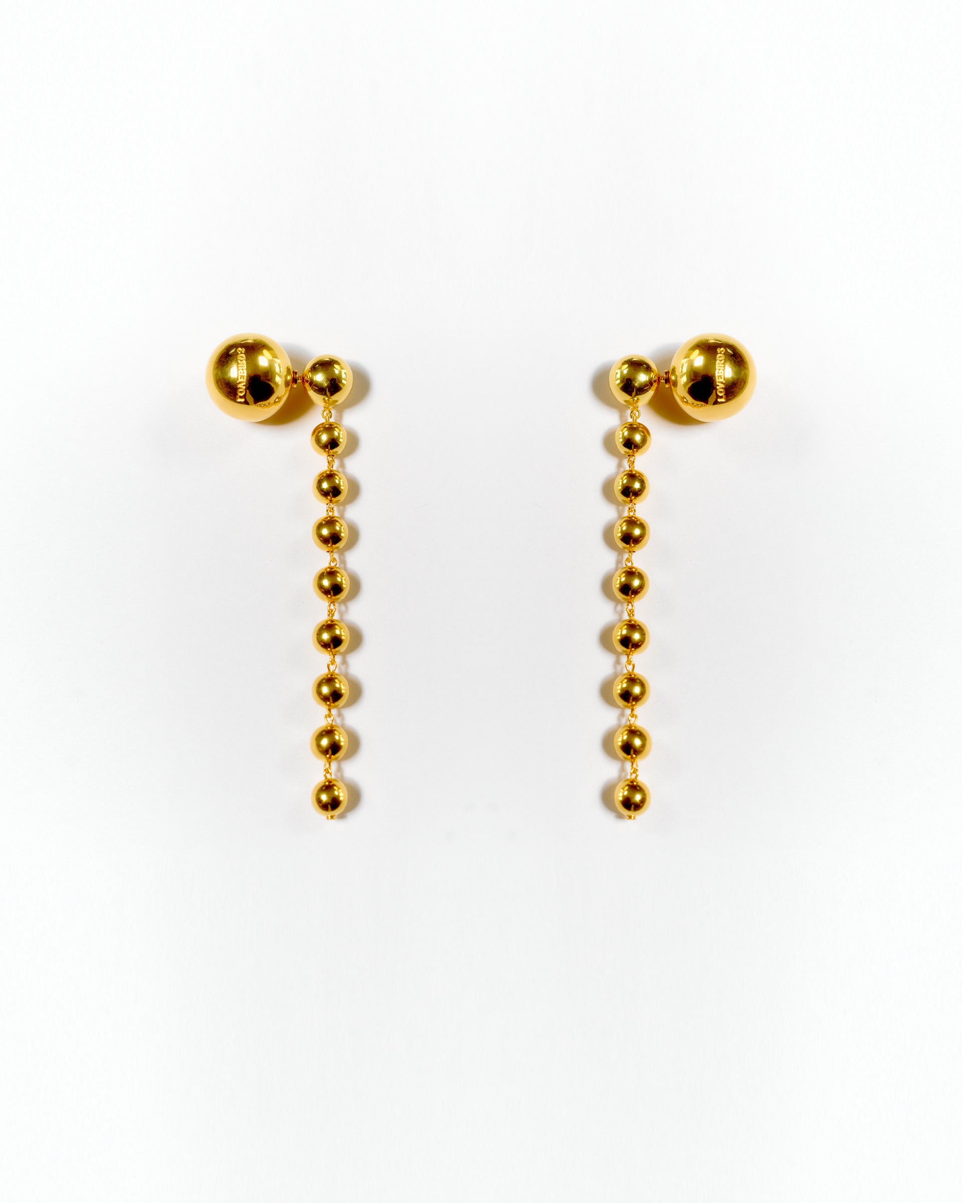 Crafted from eco brass, these earrings strike a balance between sustainability and style. The front showcases a prominent 25mm ball for a bold statement, while the back features an oval plate measuring 66mm by 45mm, adding an elegant touch. Despite their substantial weight of 65gms, these earrings offer comfort and durability. With their unique design and eco-friendly materials, they make a chic and conscious addition to any jewelry collection.