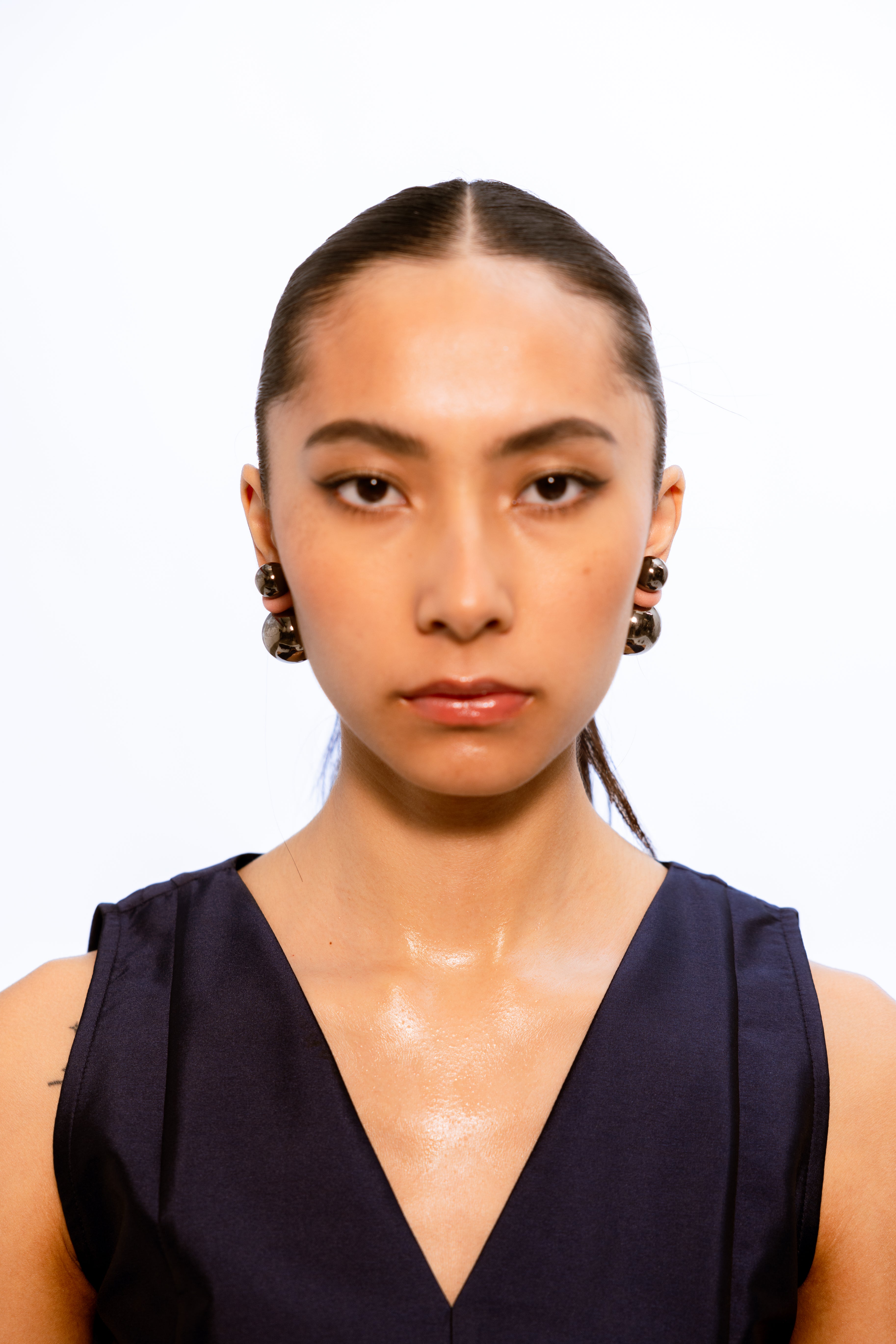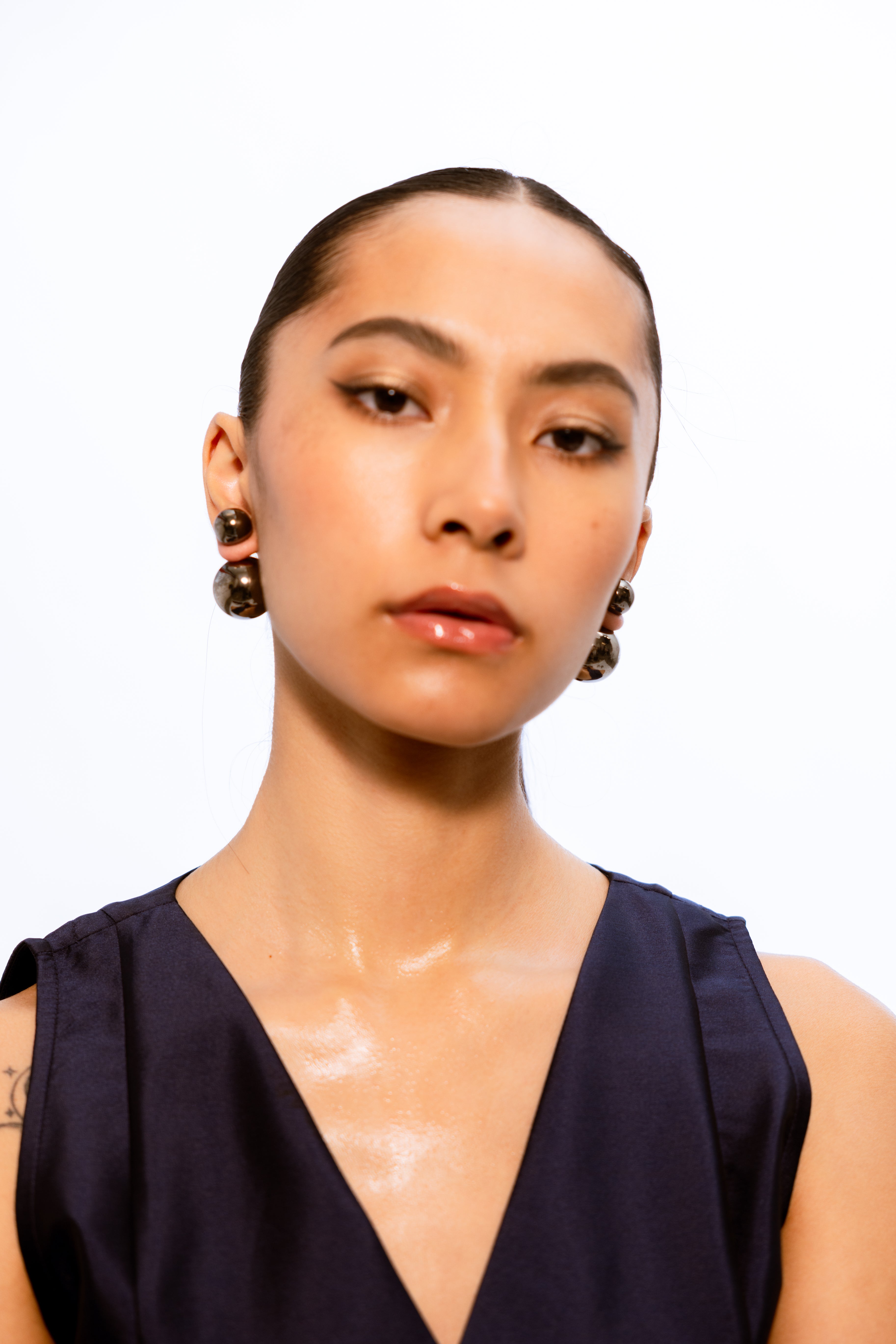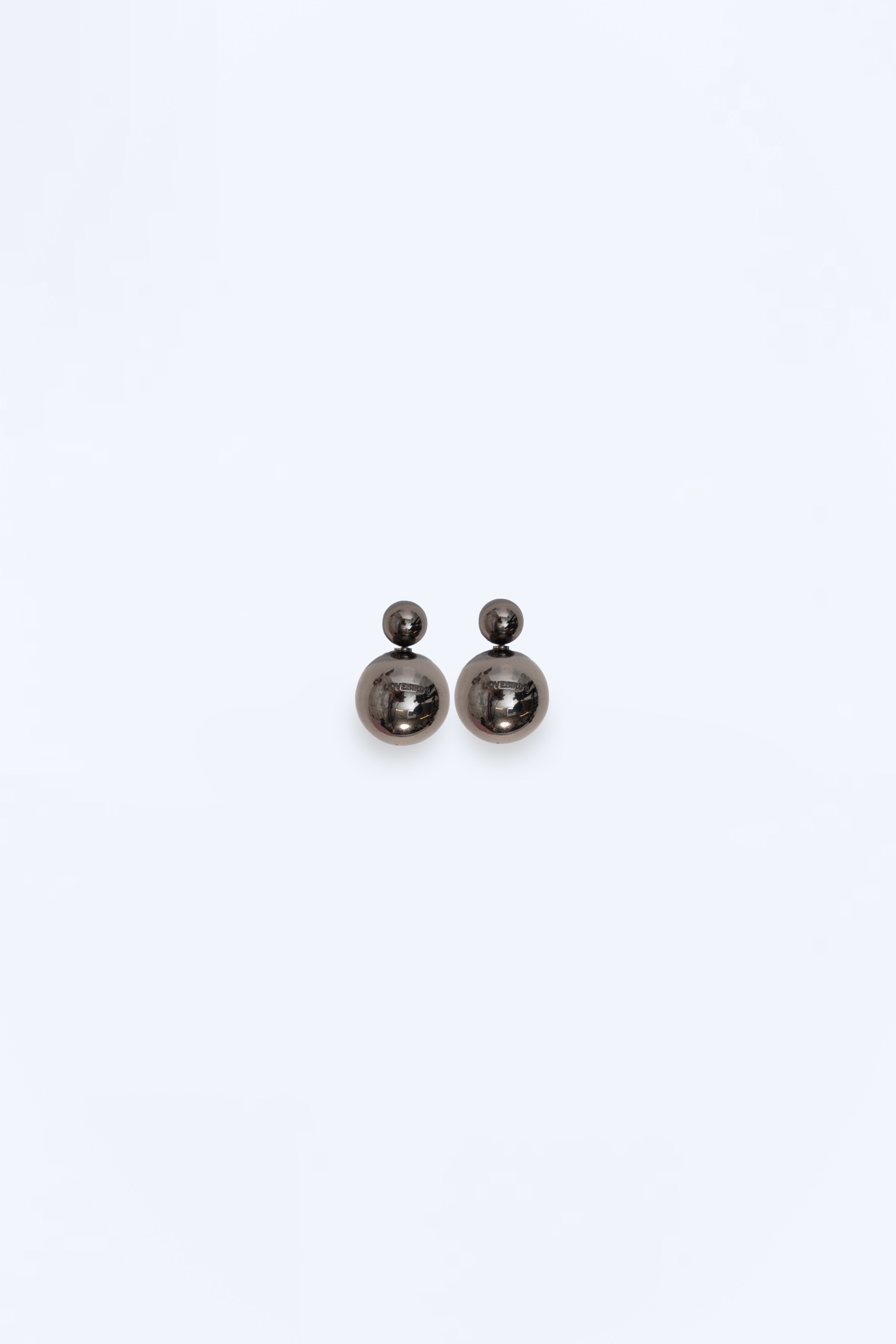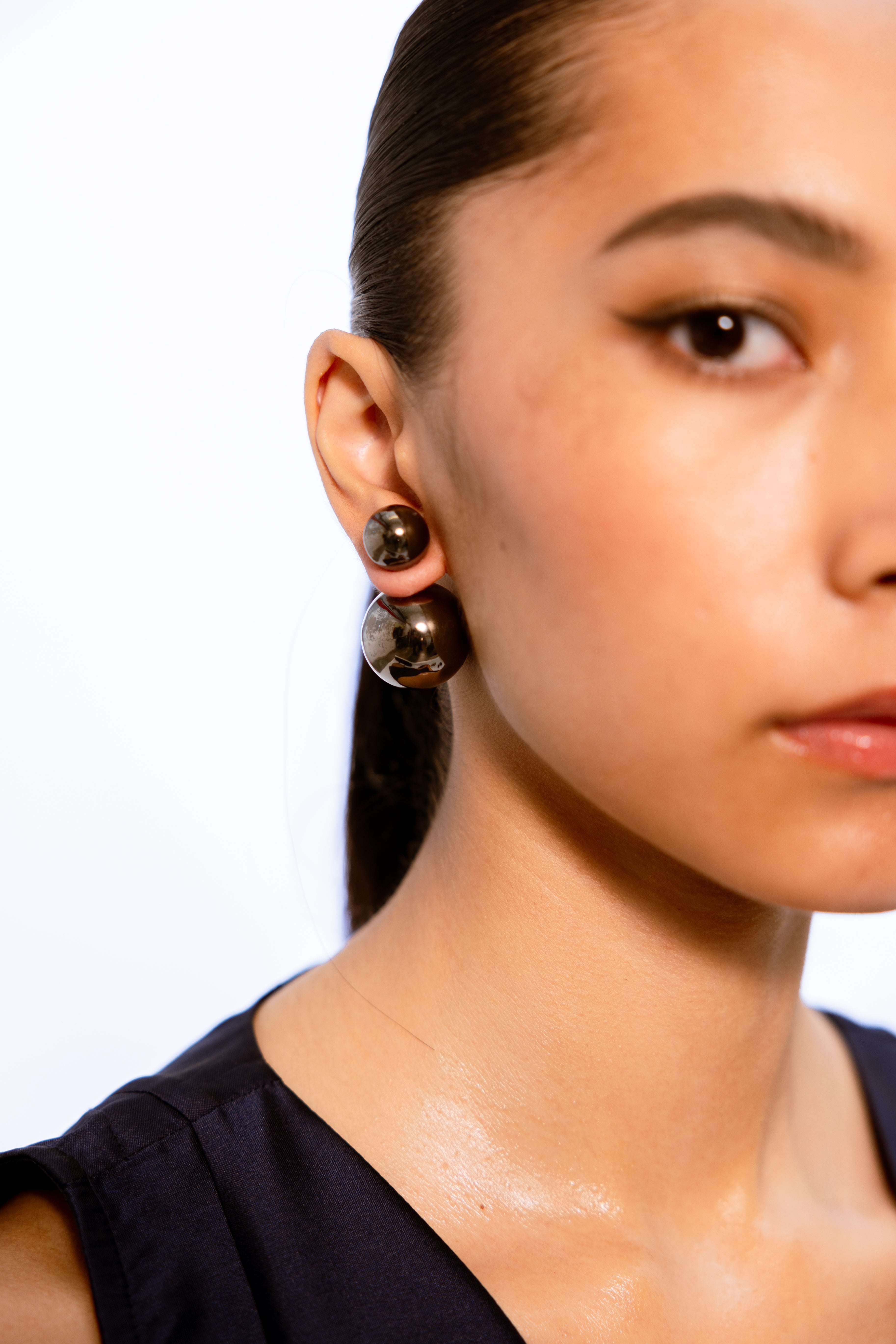 A pair of 25mm Sphere light weight Ear-studs with 18KT high shine Black finish, fastened by 15mm sphere. Comes with an extra regular fastener to use the spheres separately.