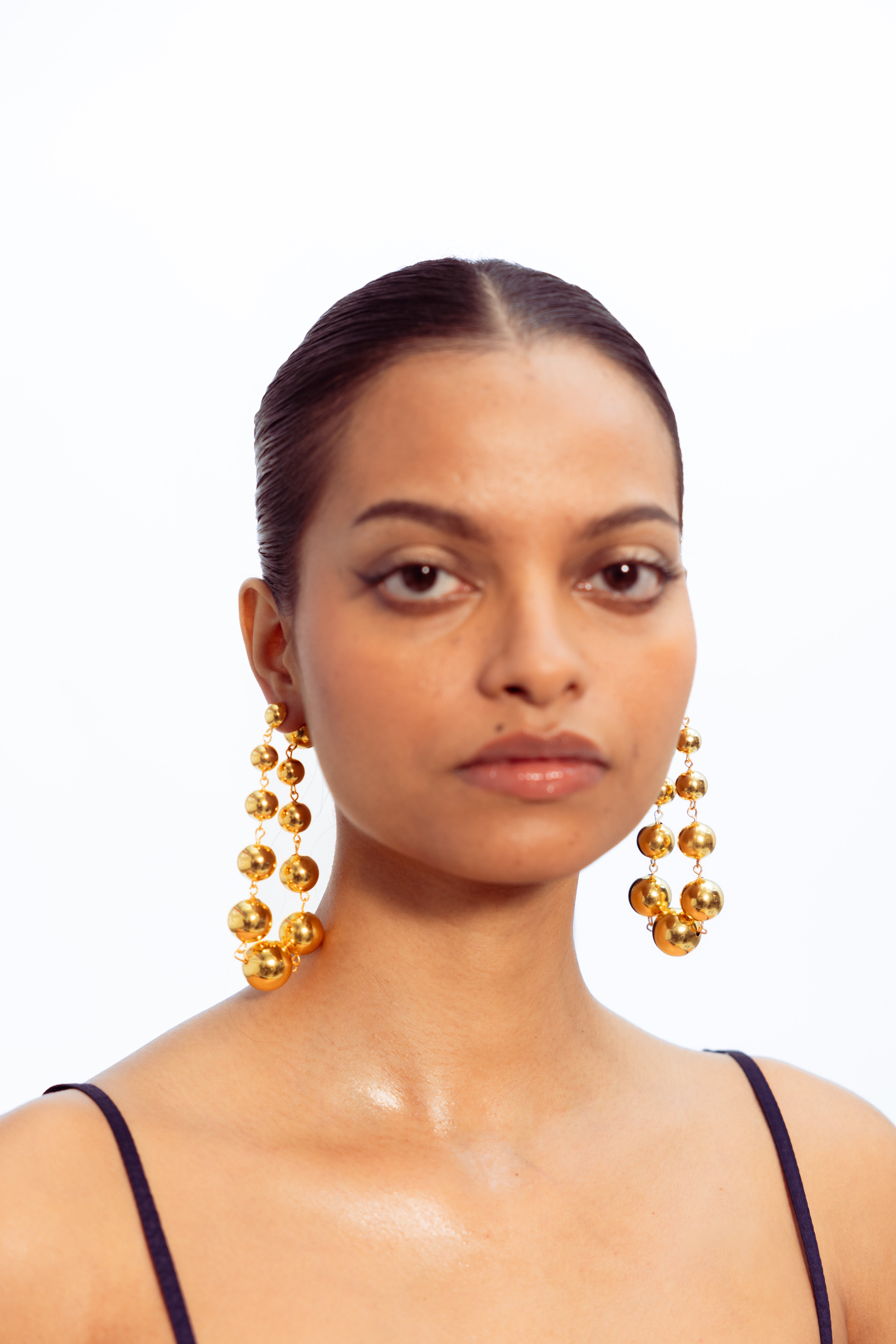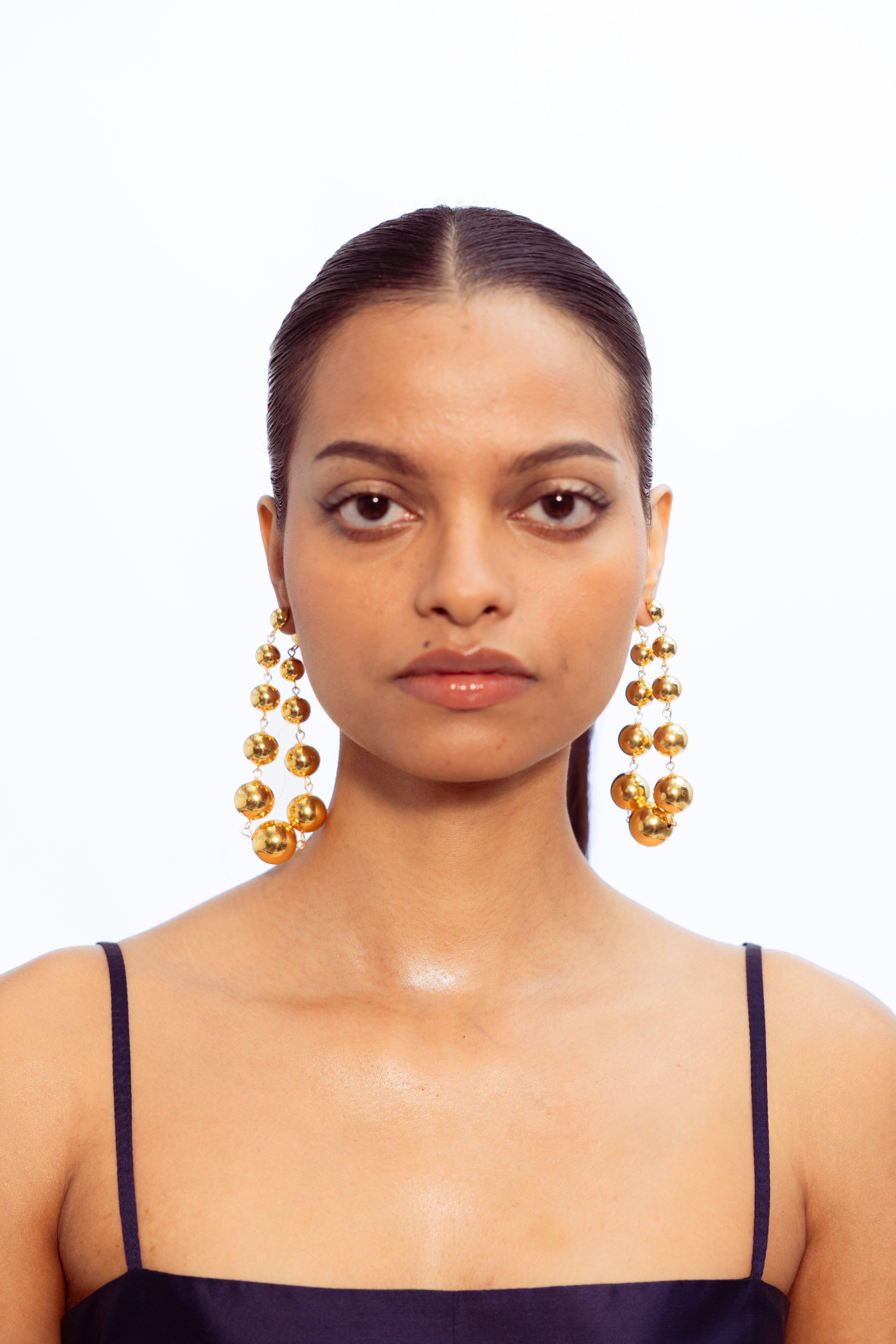 These eco brass string earrings feature a minimalist yet elegant design, adorned with small & Big metal beads in 15mm casted ball. Despite their delicate appearance, each pair weighs 52gms, offering a substantial feel. With their sustainable materials and timeless style, these earrings provide a chic and eco-friendly accessory option, perfect for elevating any outfit with a hint of eco-conscious flair.