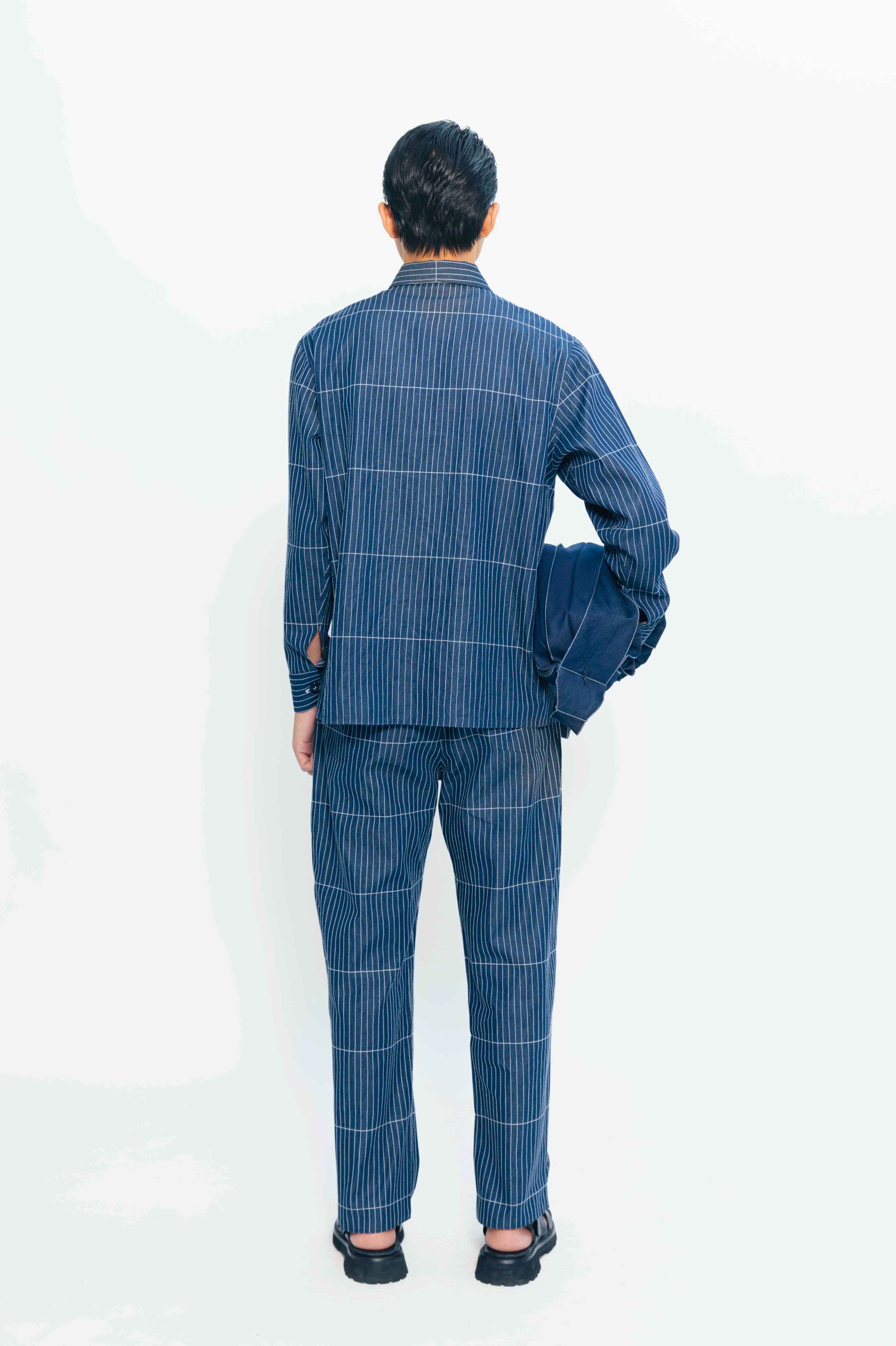 This denim trousers with contrast topstitches feature a classic denim look enhanced by striking stitching details. The contrasting thread adds a stylish touch, making them a fashionable choice for casual wear.