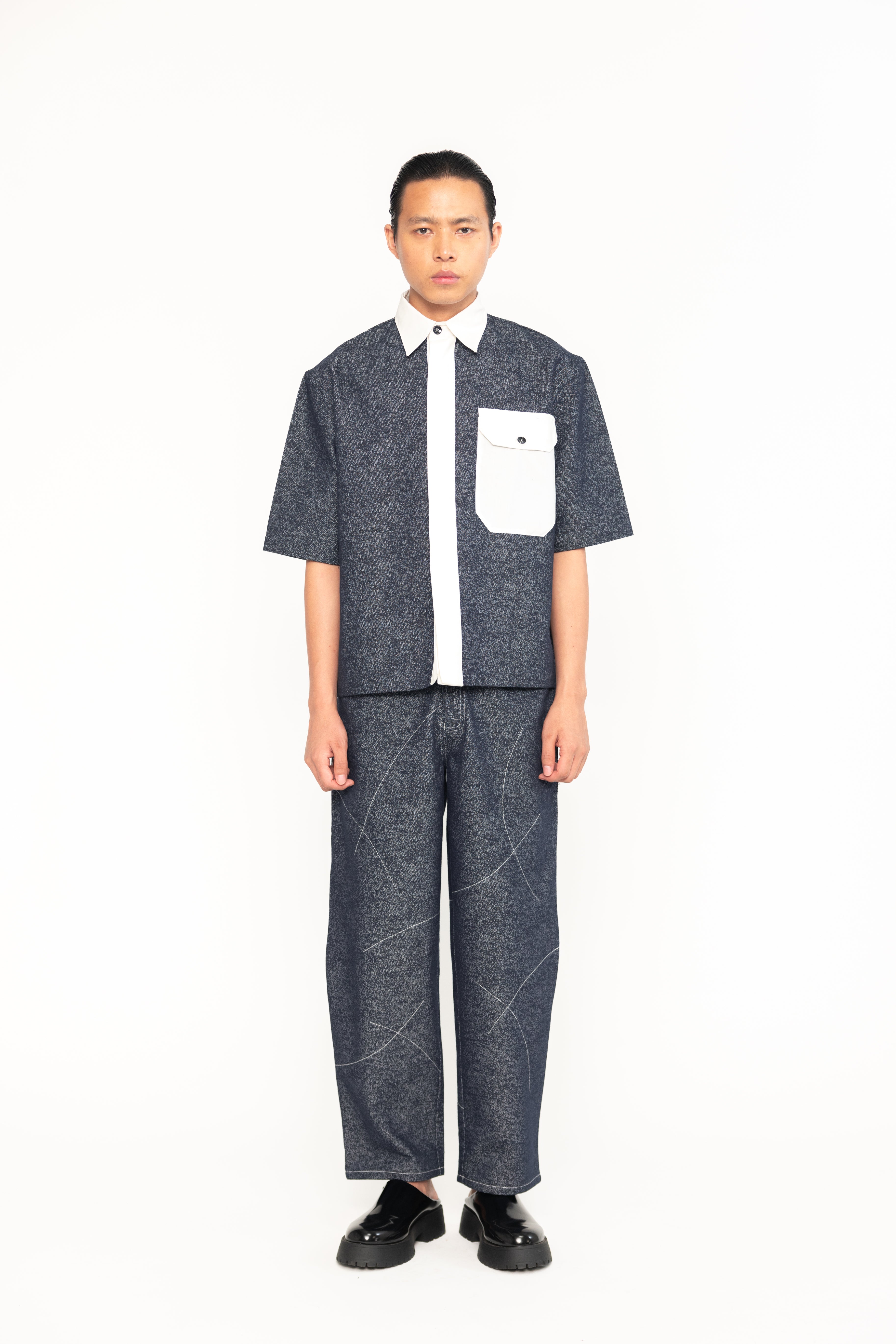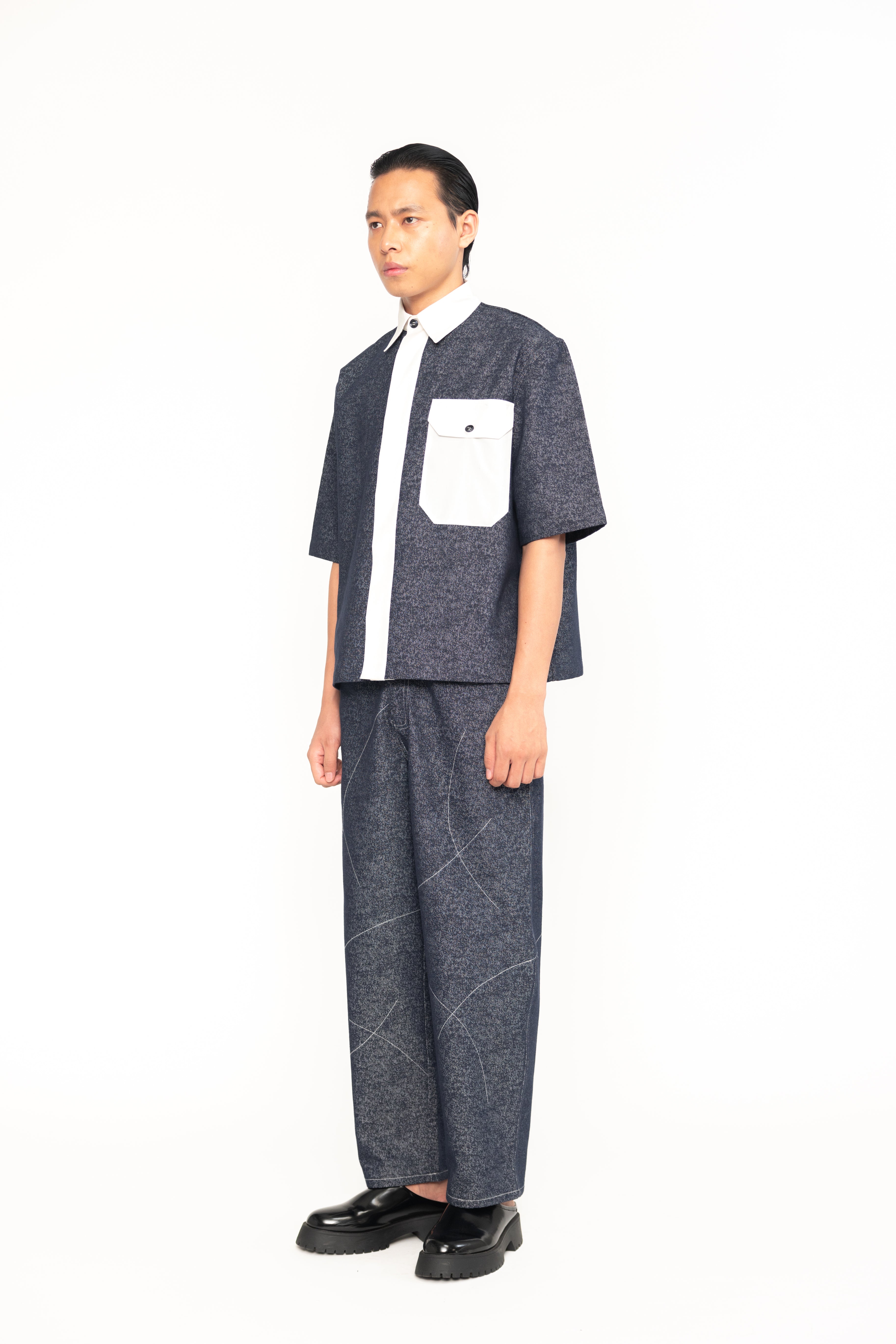 This dual-fabric men’s half shirt combines durable cotton ripstop with denim accents, creating a unique, textured look. The blend of materials adds visual contrast and rugged appeal, making it a stylish choice for casual wear.