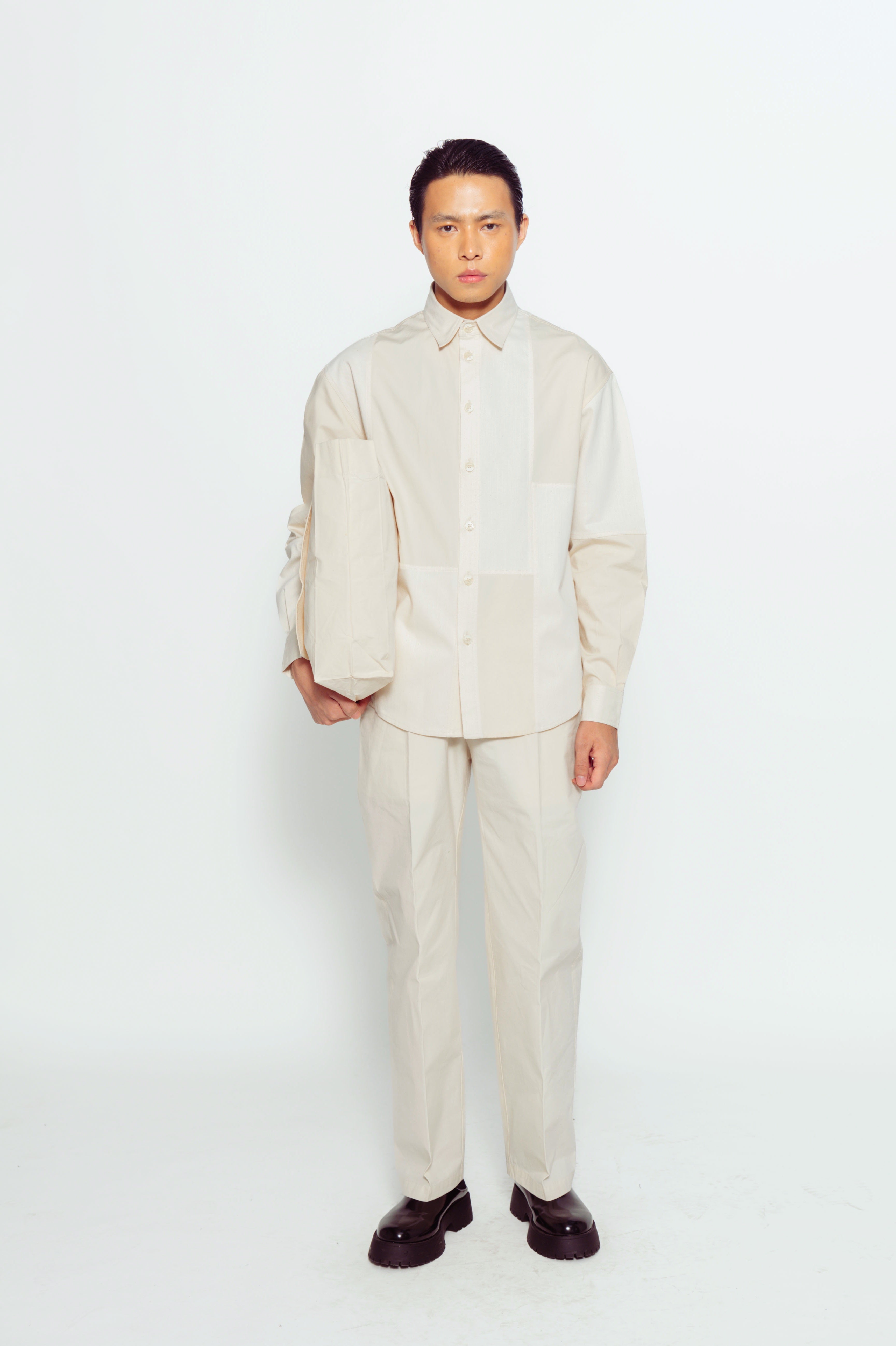 This men's full-sleeve shirt featuring a fabric-blocked design combines cotton and denim for a unique look. The mix of textures adds visual interest, making it a versatile choice for casual and semi-formal occasions.