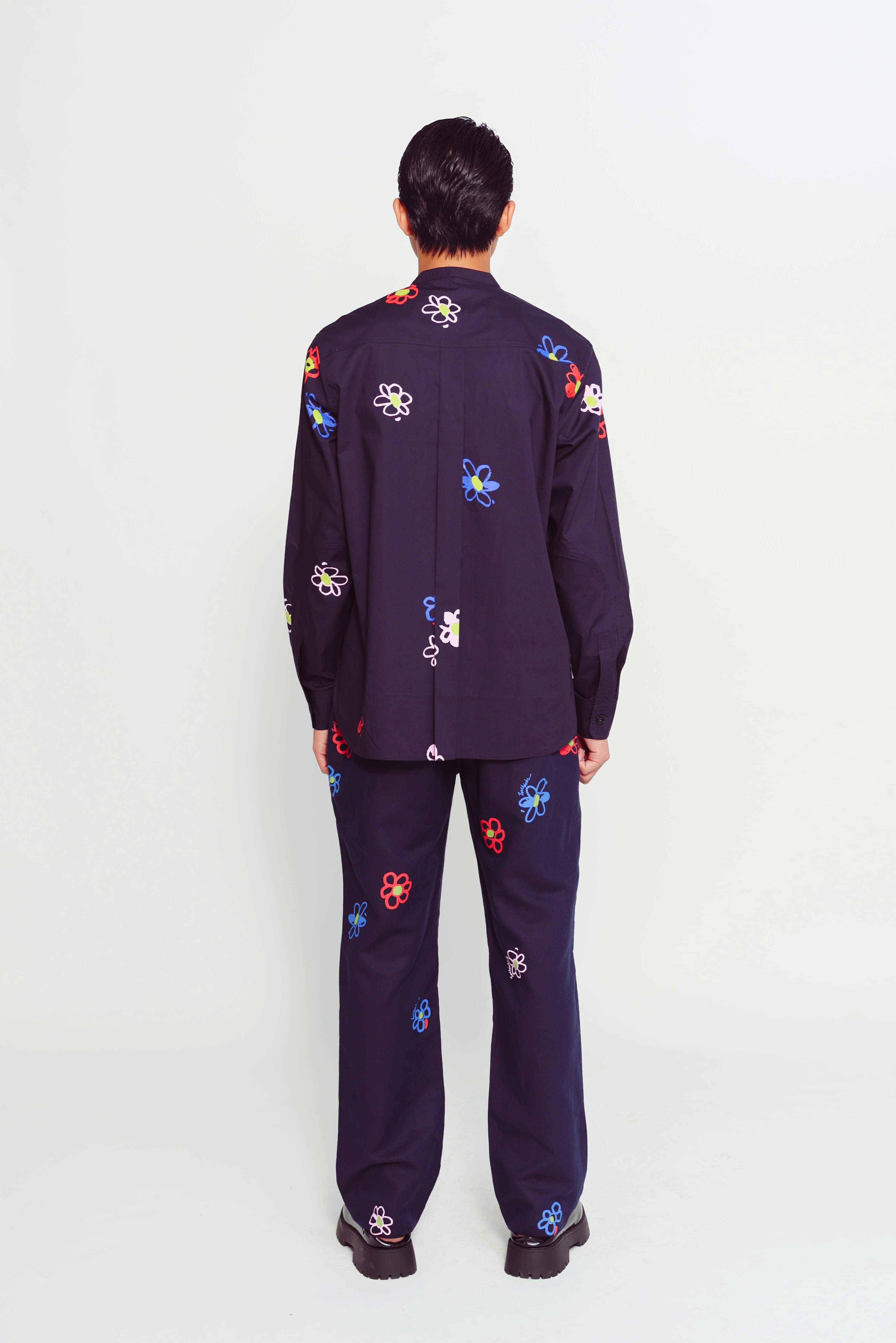 This men’s printed handloom linen full-sleeve shirt features a unique print, a chinese collar, and a front placket. The linen fabric offers breathability, while the design adds a touch of sophistication and modern style.