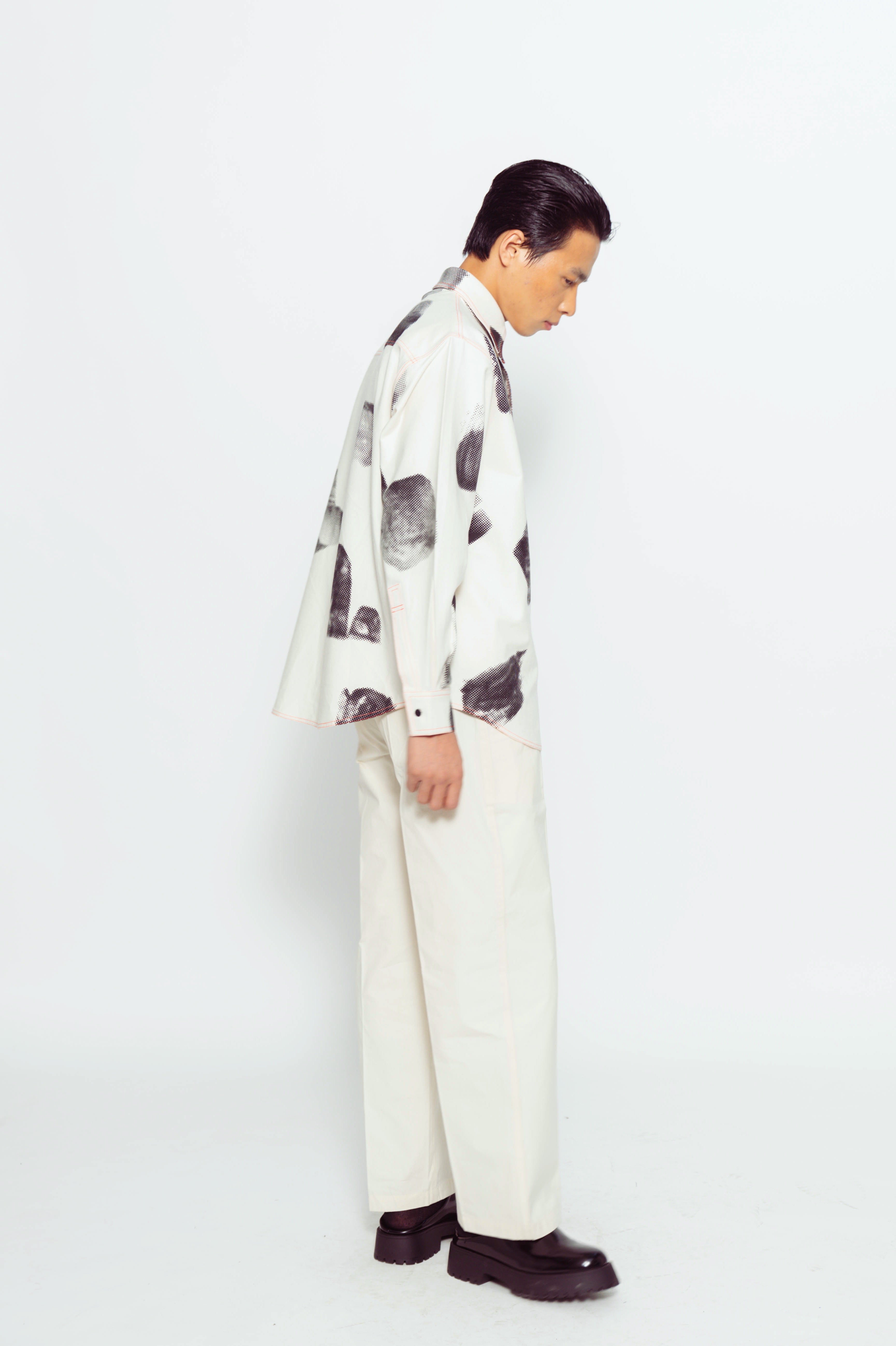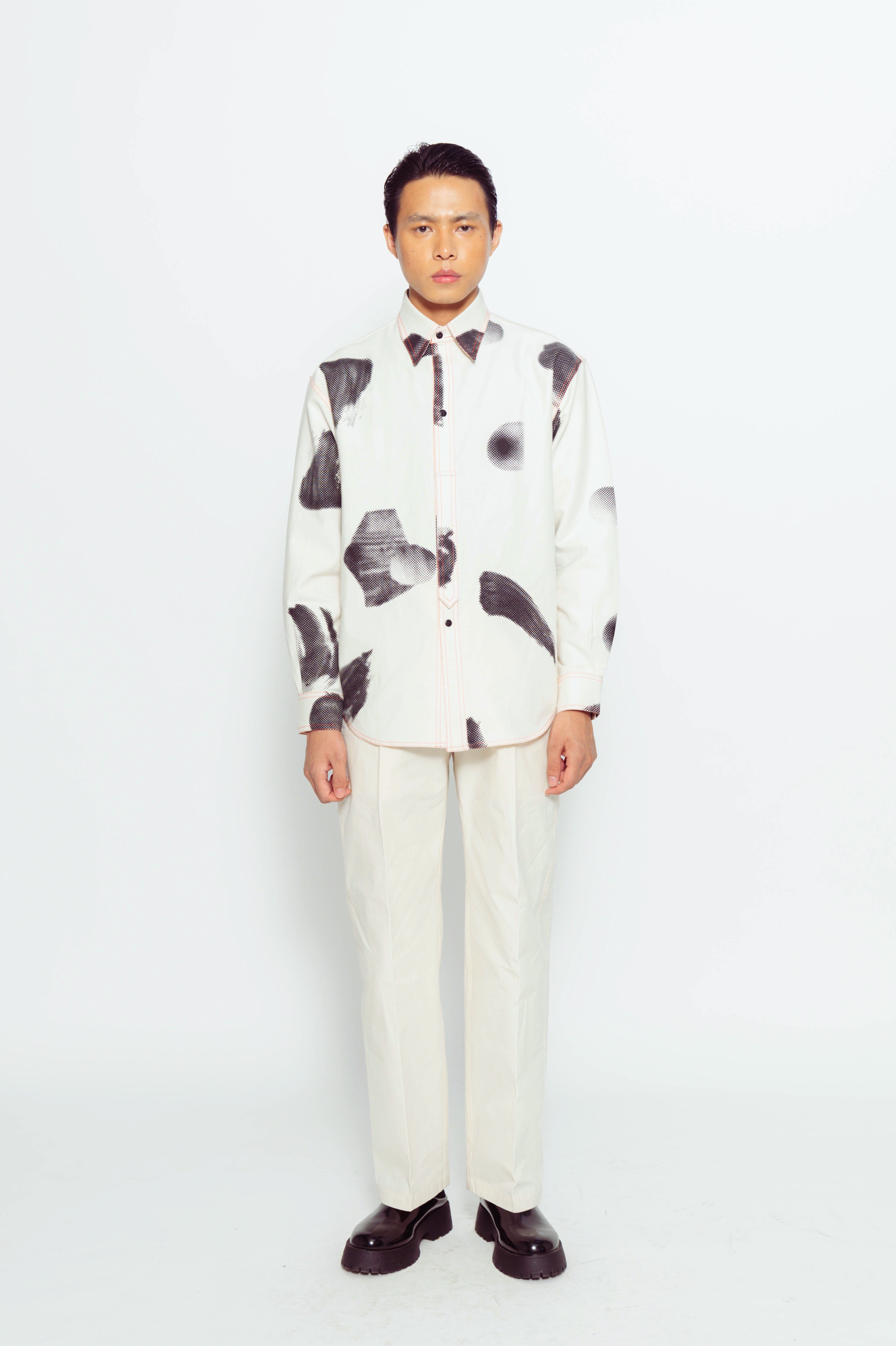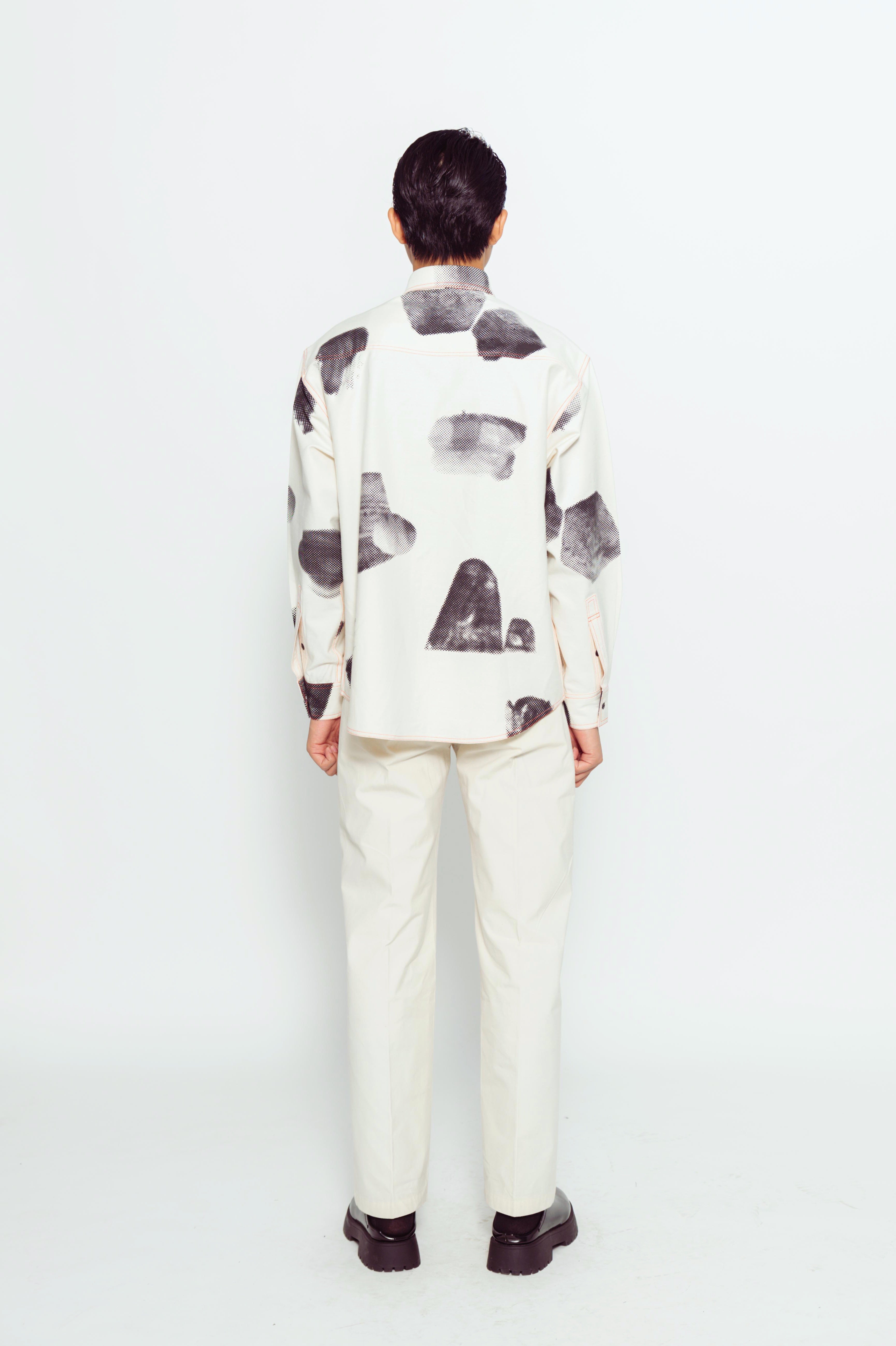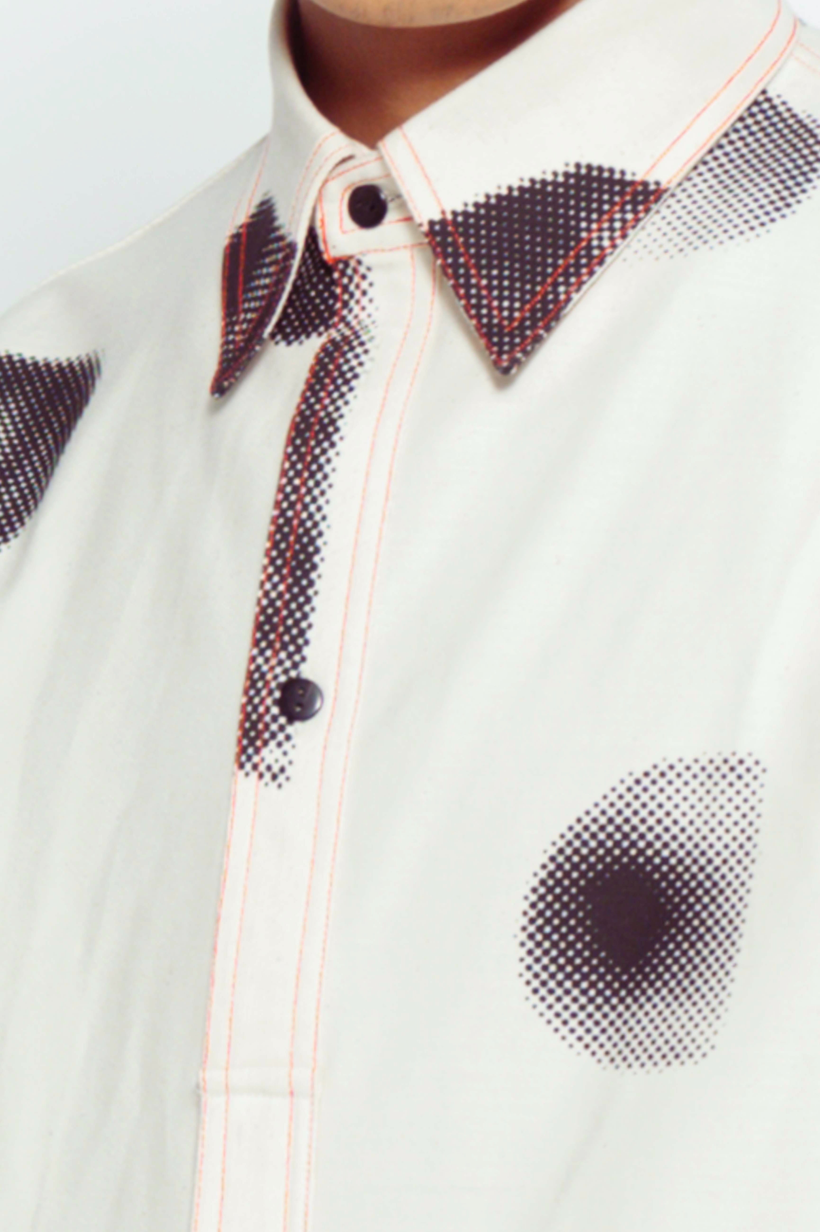 This printed ecru denim full-sleeve shirt features a distinctive print from Lovebirds archival prints and is made from breathable denim. Its full sleeves offer a classic look, while the fabric's texture adds a touch of sophistication.