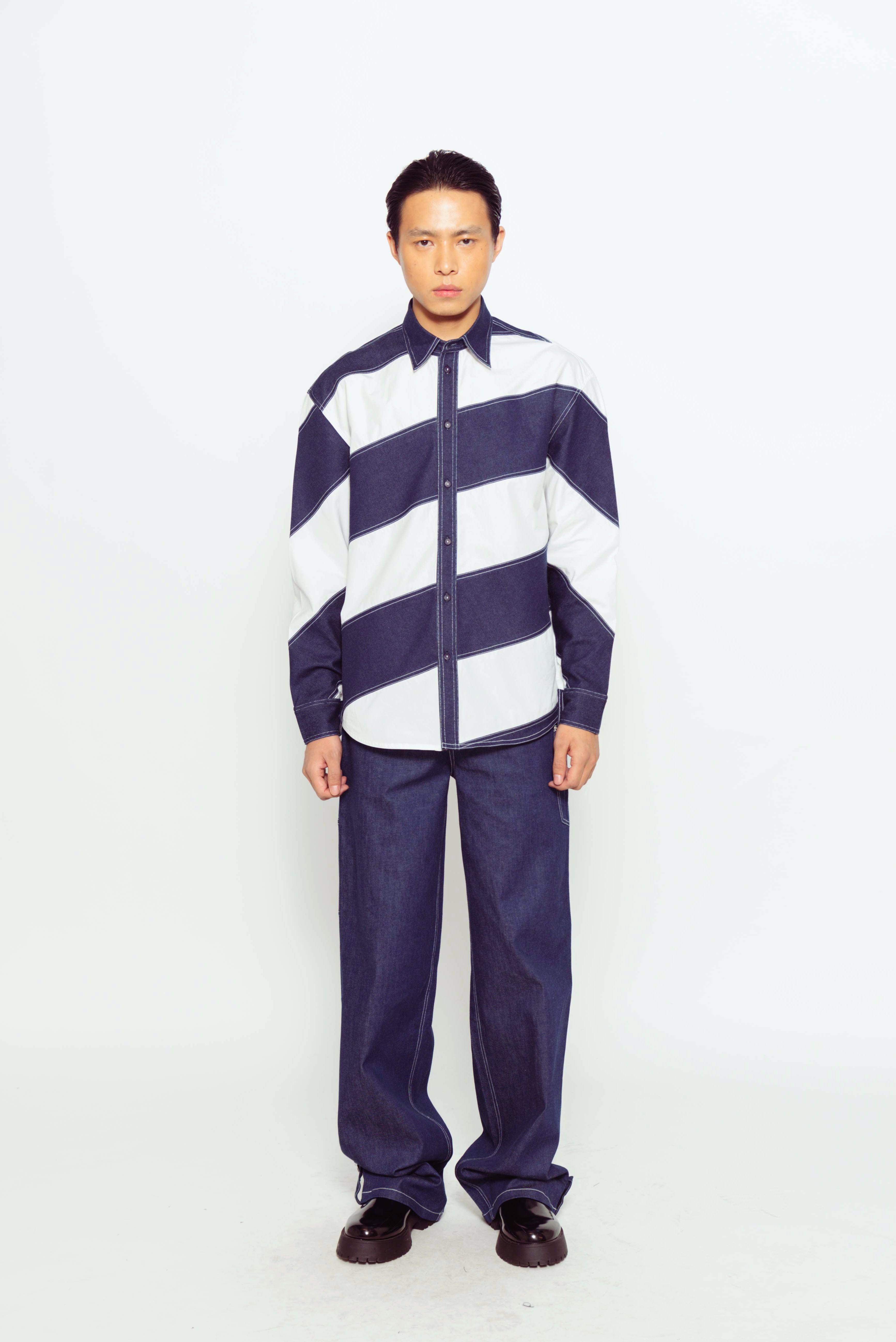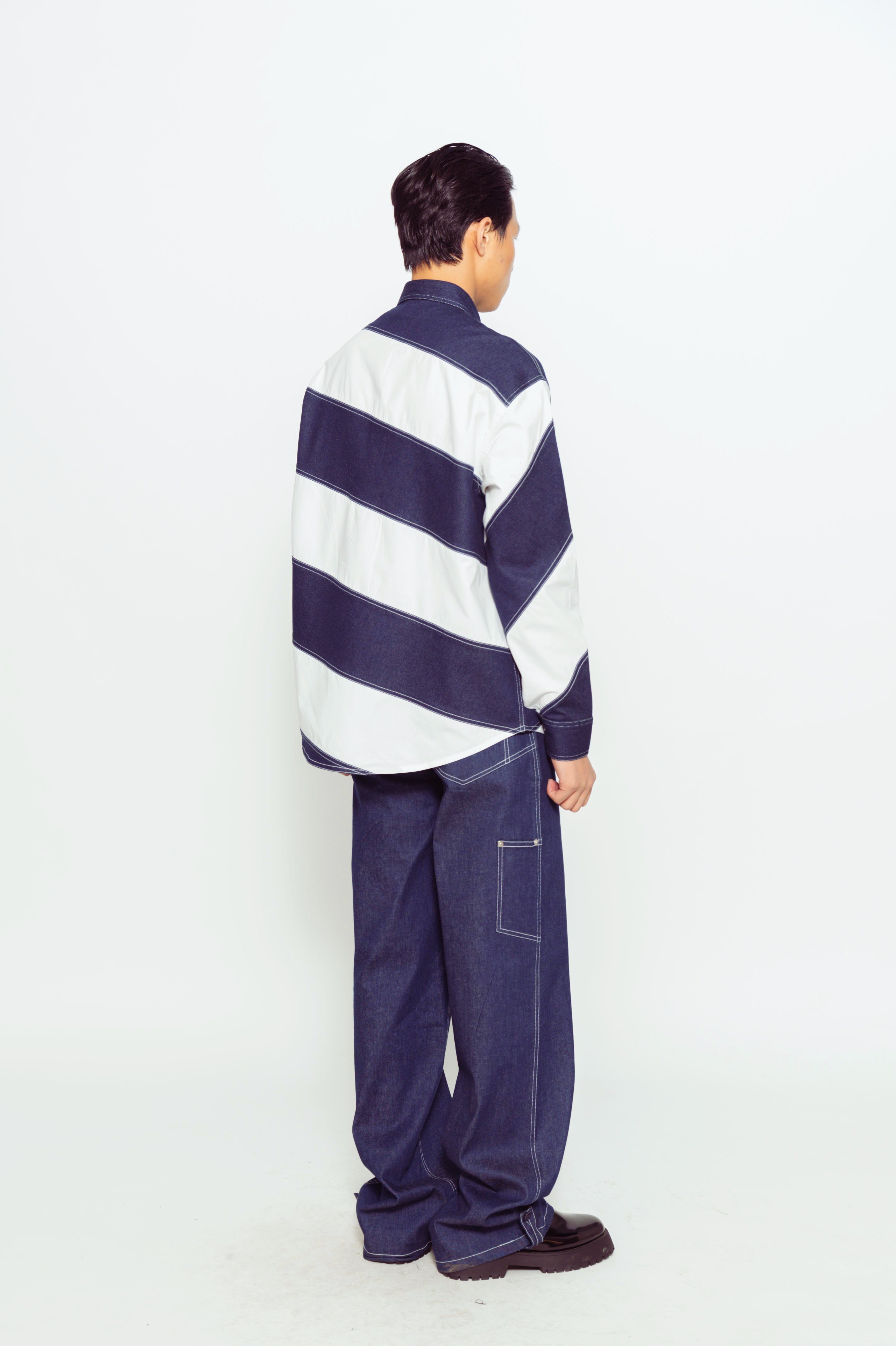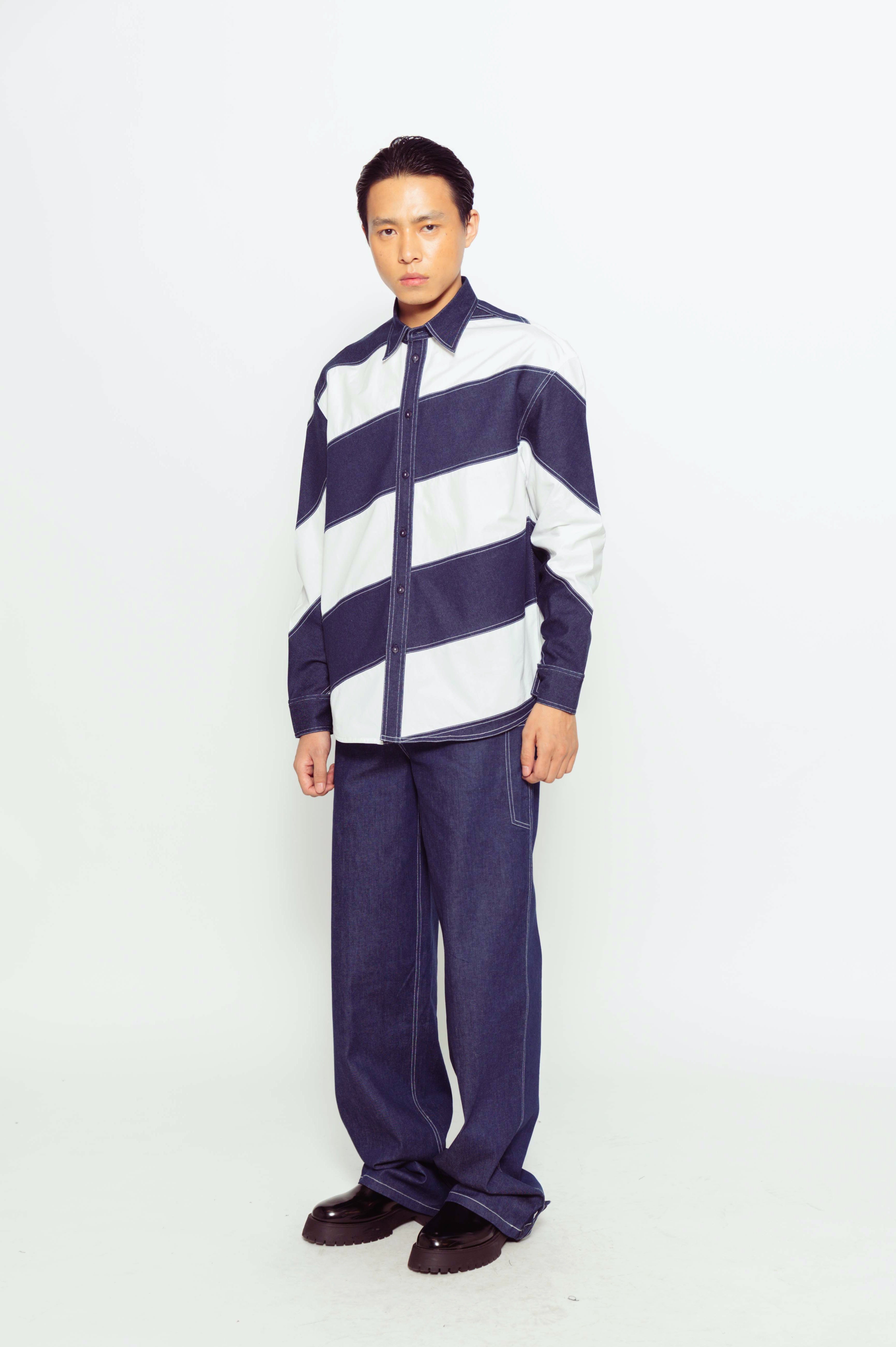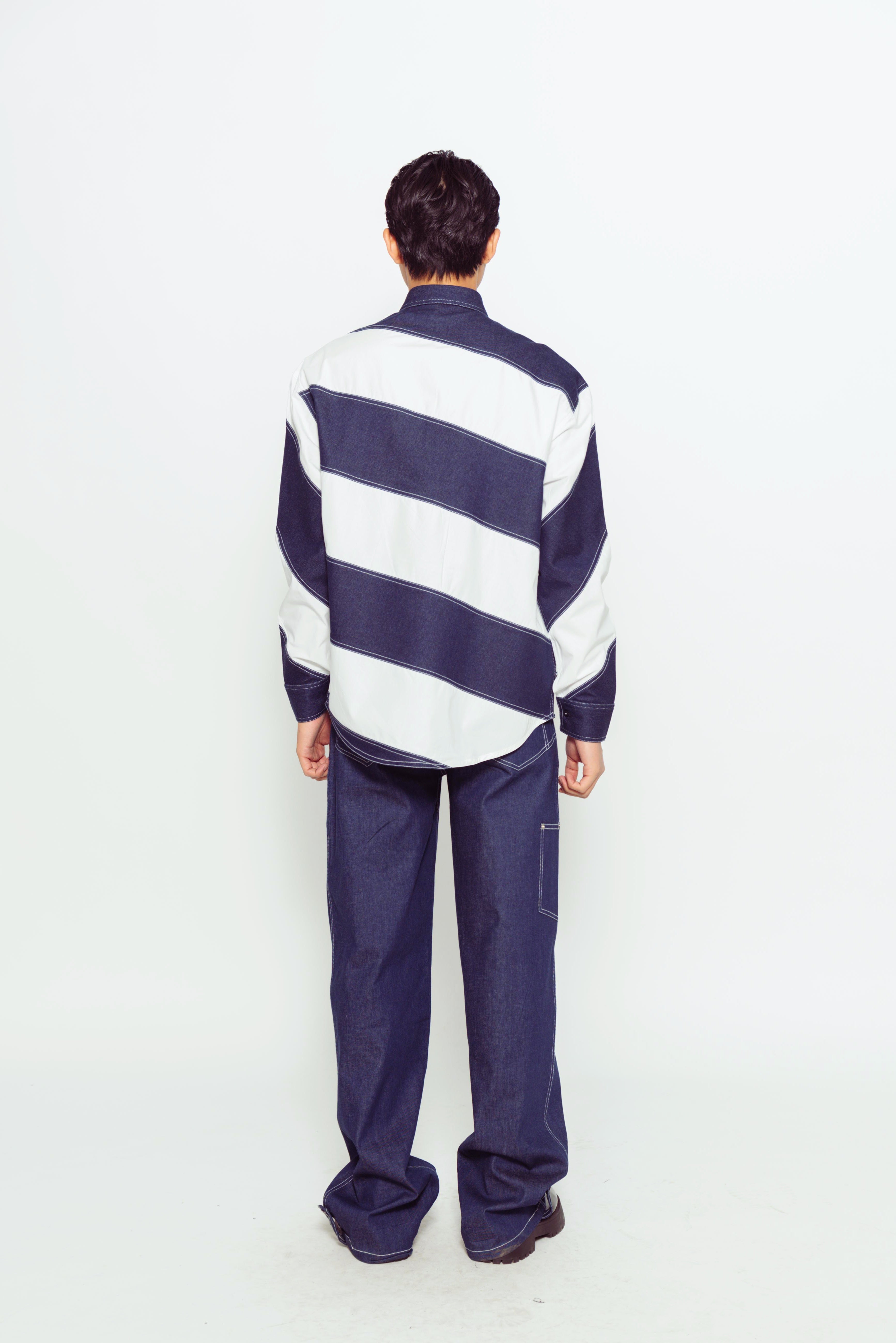 This color-blocked denim and cotton full-sleeve shirt combines sections of durable denim and soft cotton for a bold, contrasting look. This stylish mix of fabrics offers comfort and versatility, perfect for casual wear.