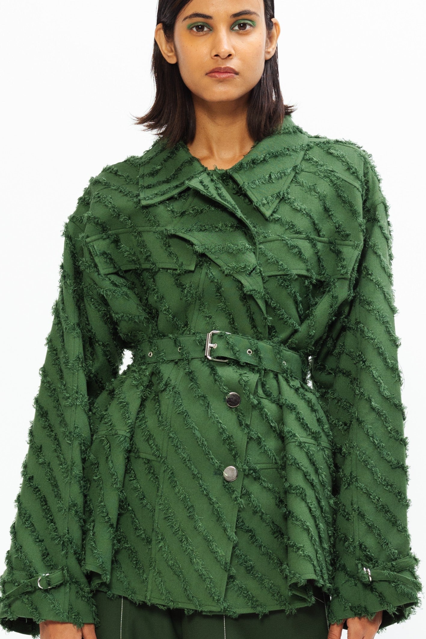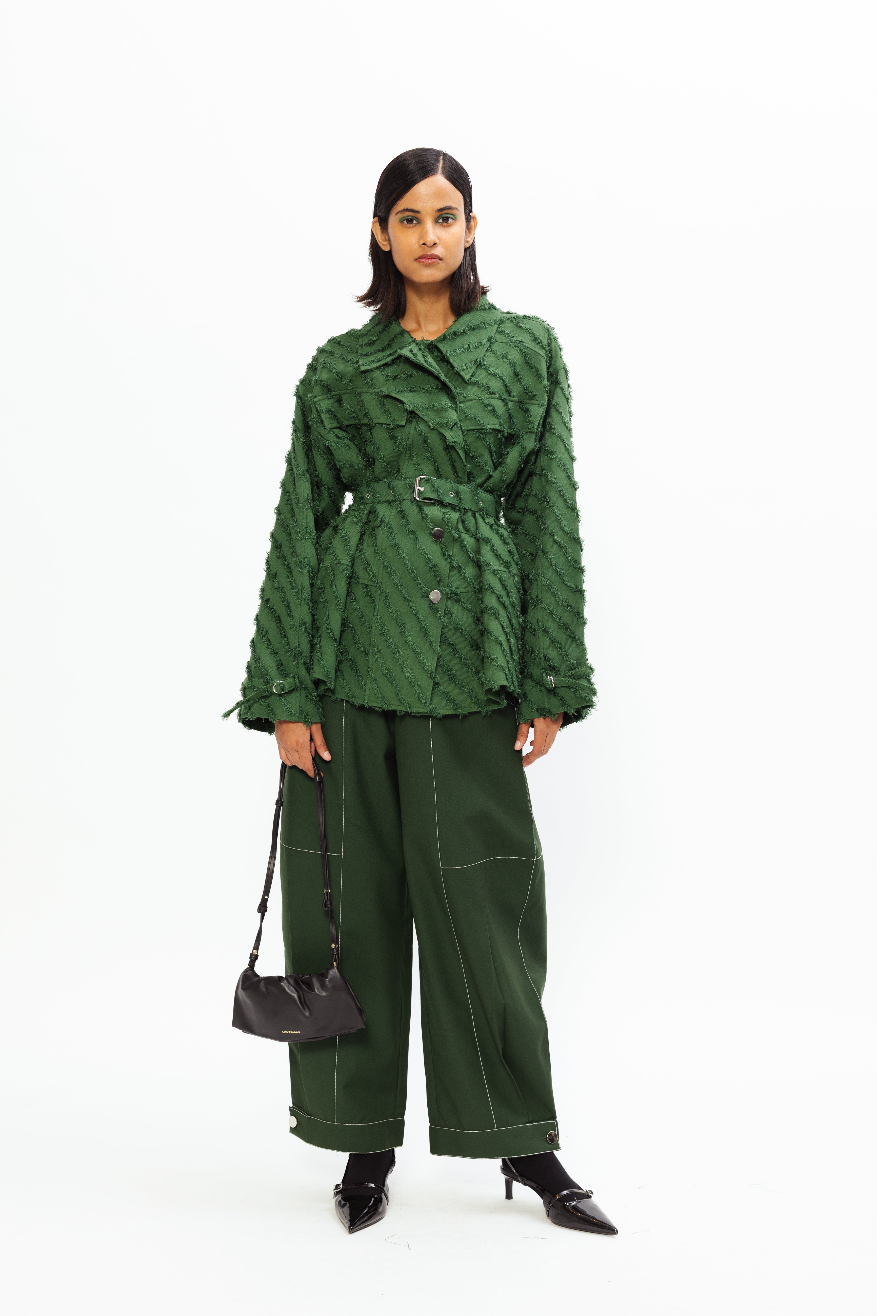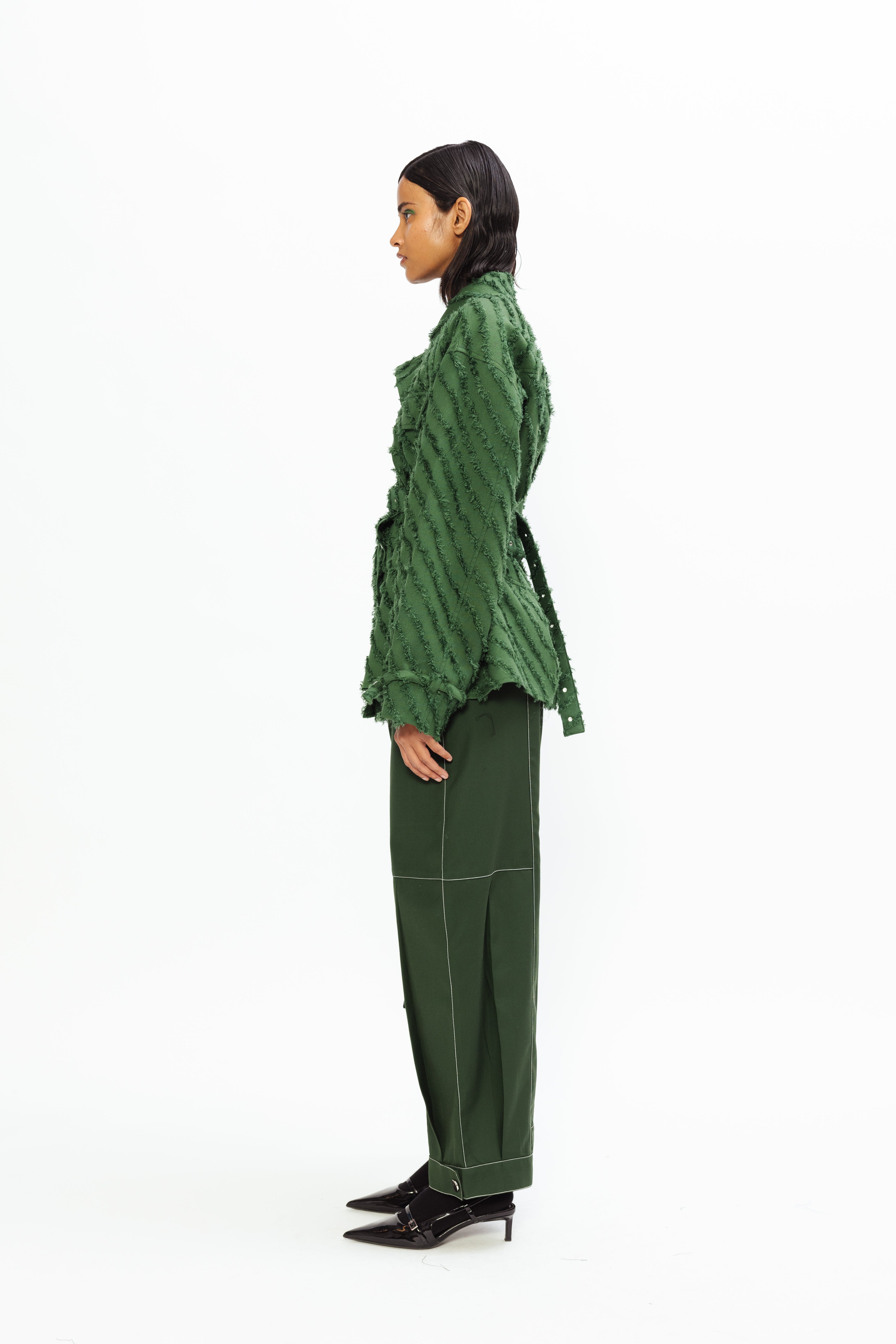 A classic overshirt crafted from extra yarn wool in a rich hunter green hue. The structured yet relaxed design offers warmth and ease, while the premium wool texture adds depth and sophistication, making it a versatile layer for cooler days.