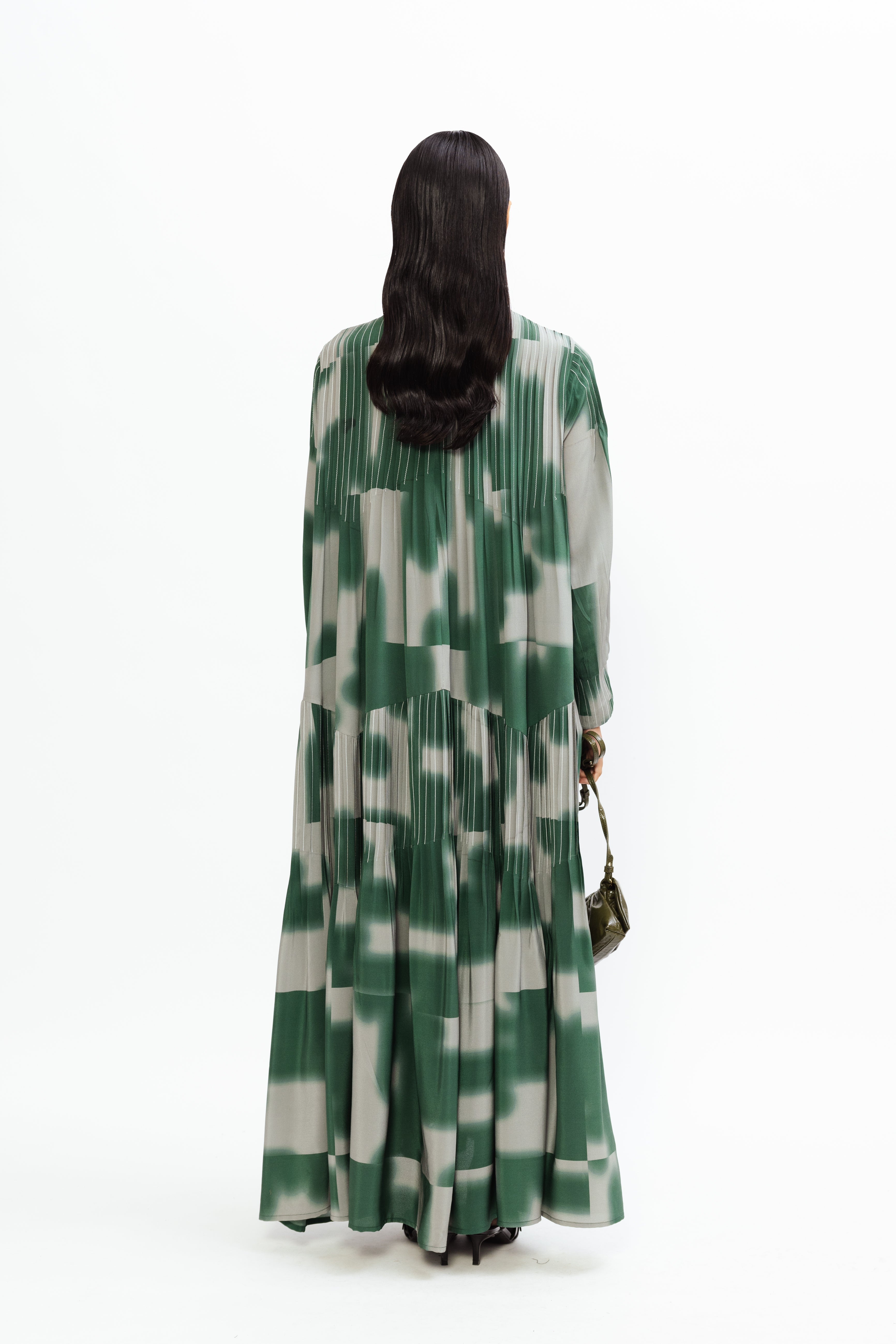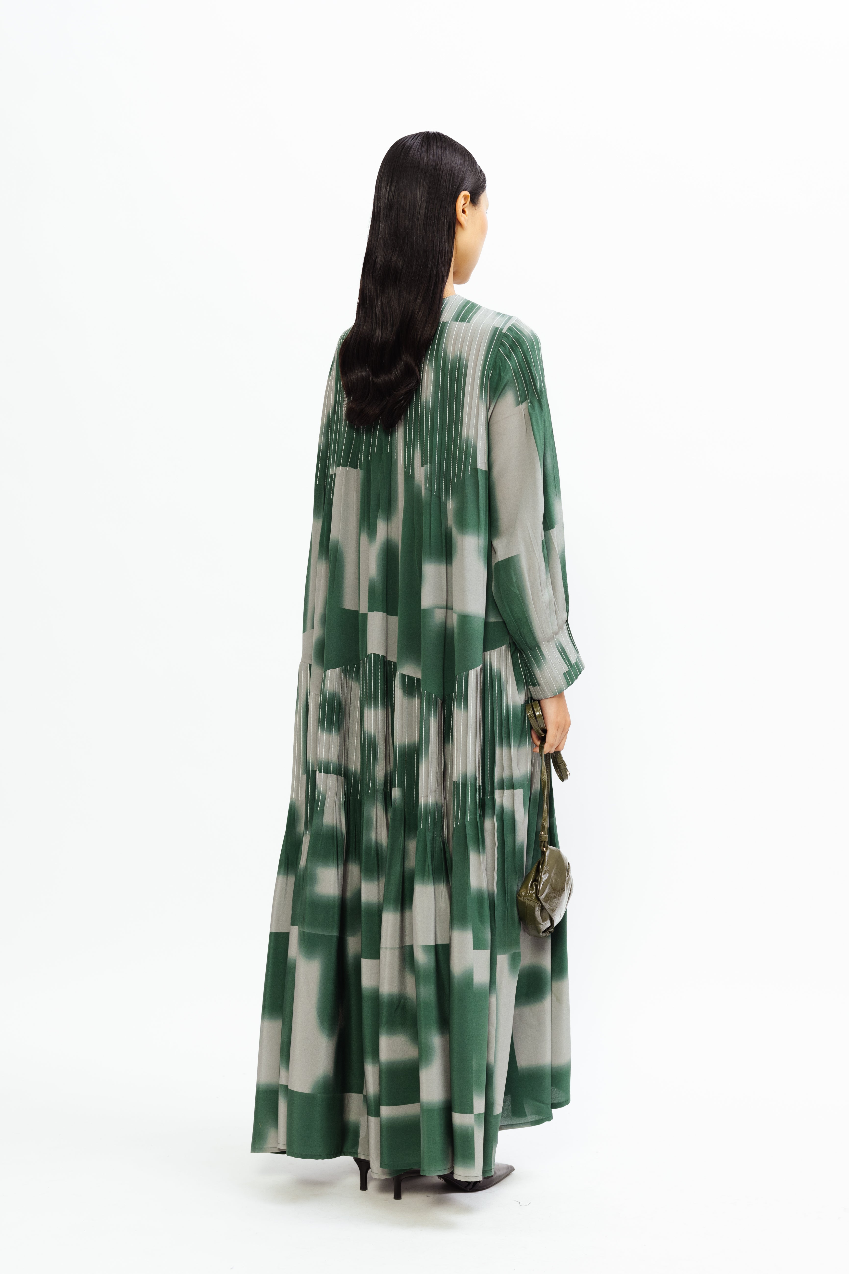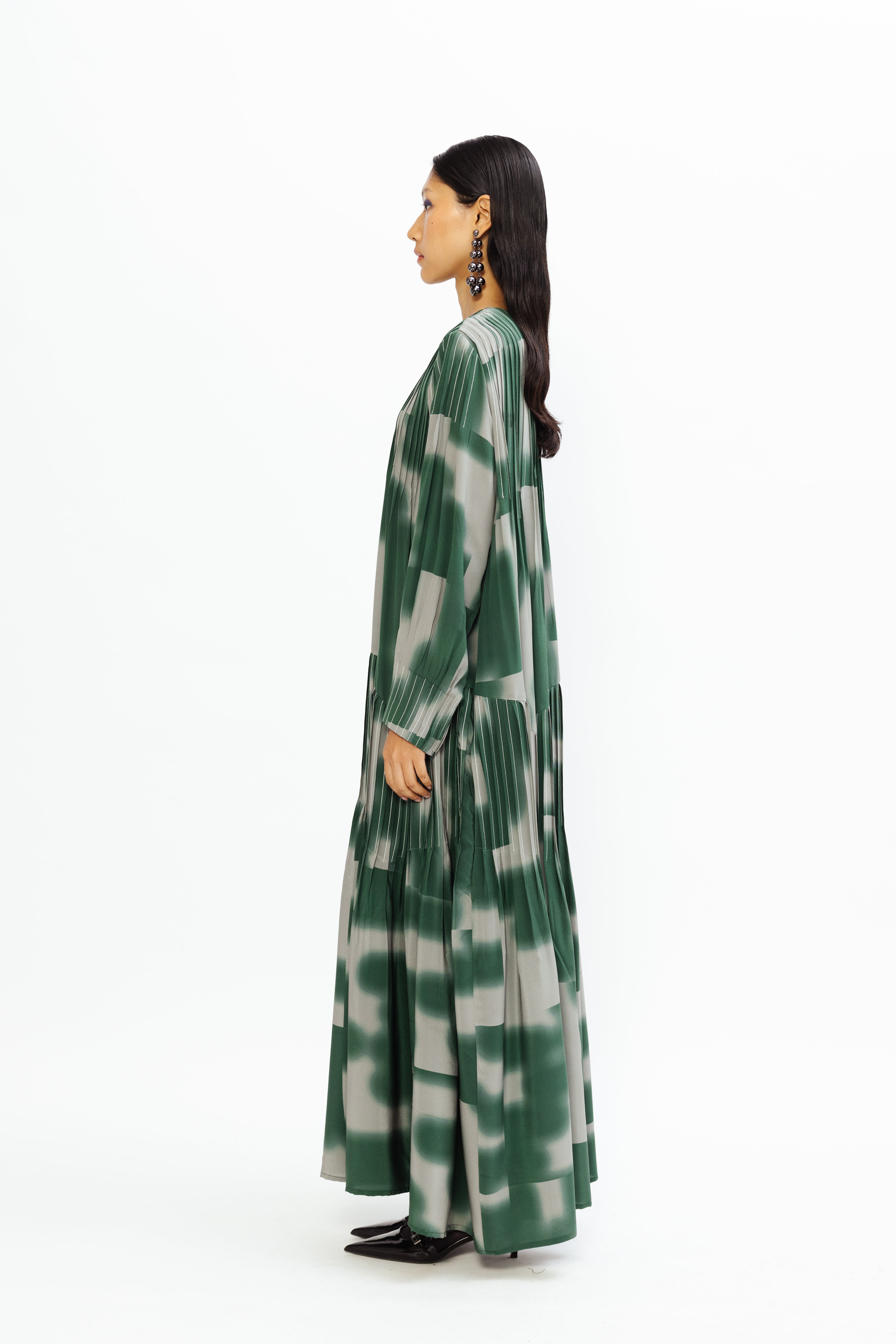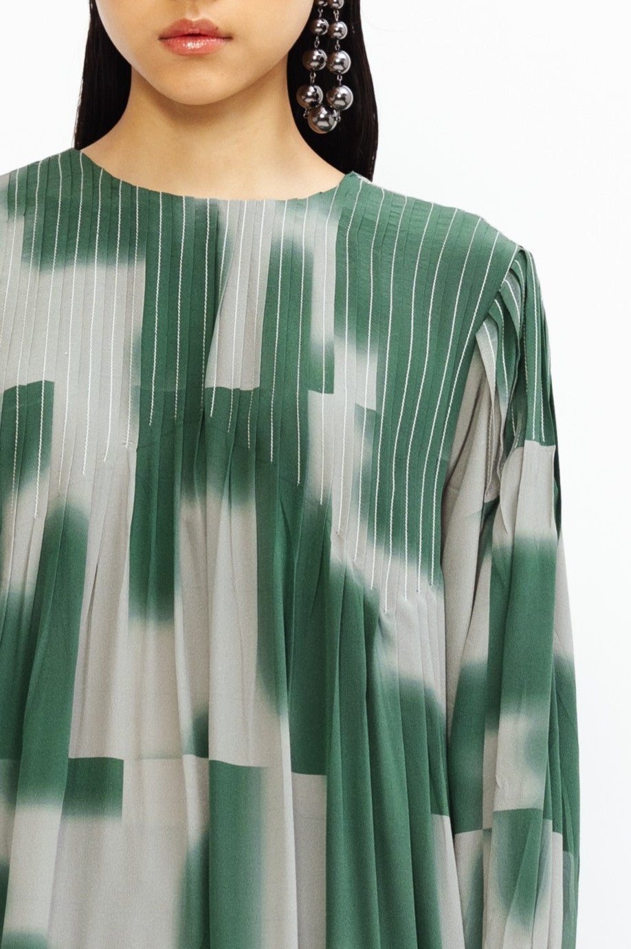 A modern classic, this shift dress is crafted in smooth crepe and defined by delicate pleats that add texture and movement. Its clean silhouette offers effortless elegance, making it a versatile choice for both day and evening occasions.