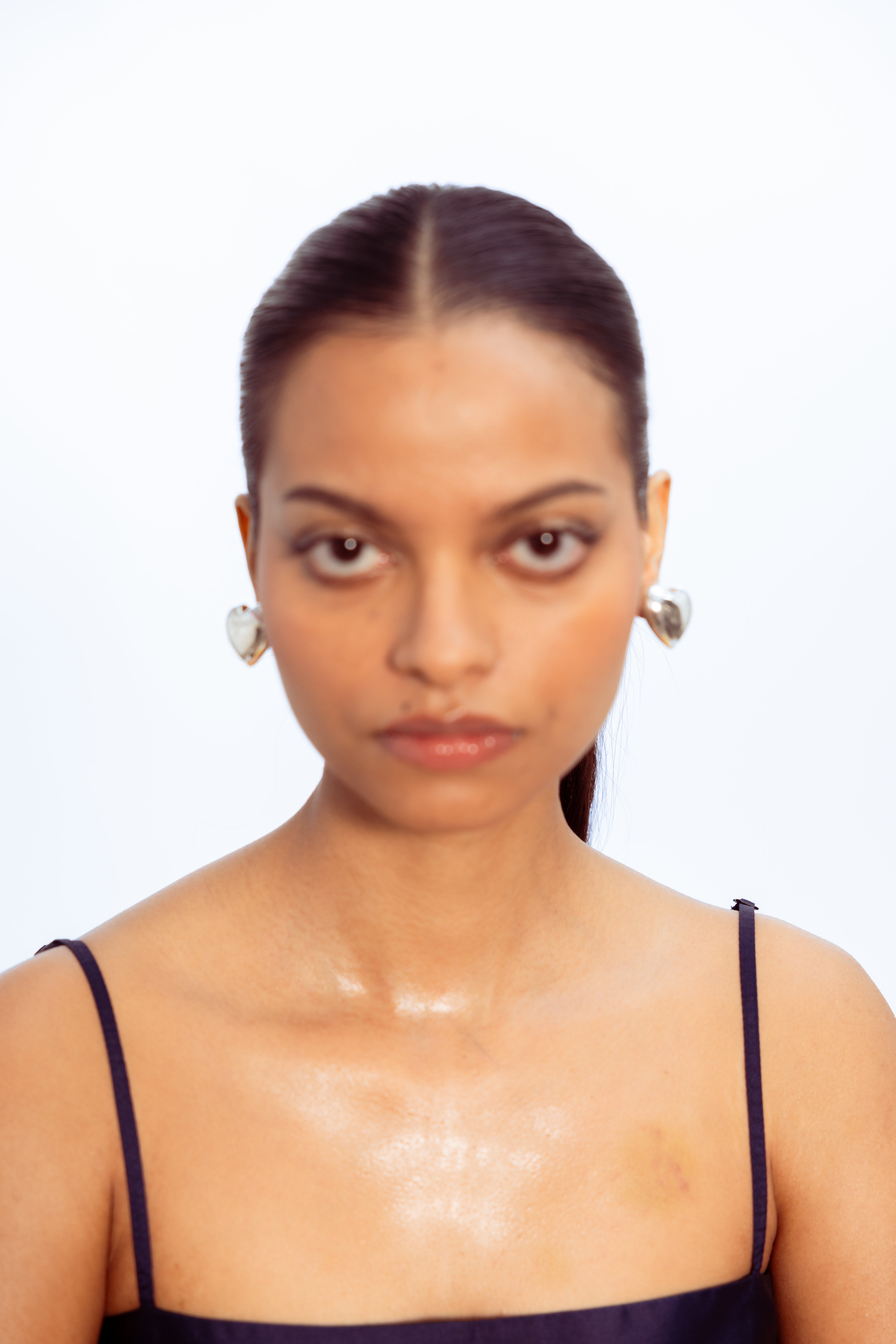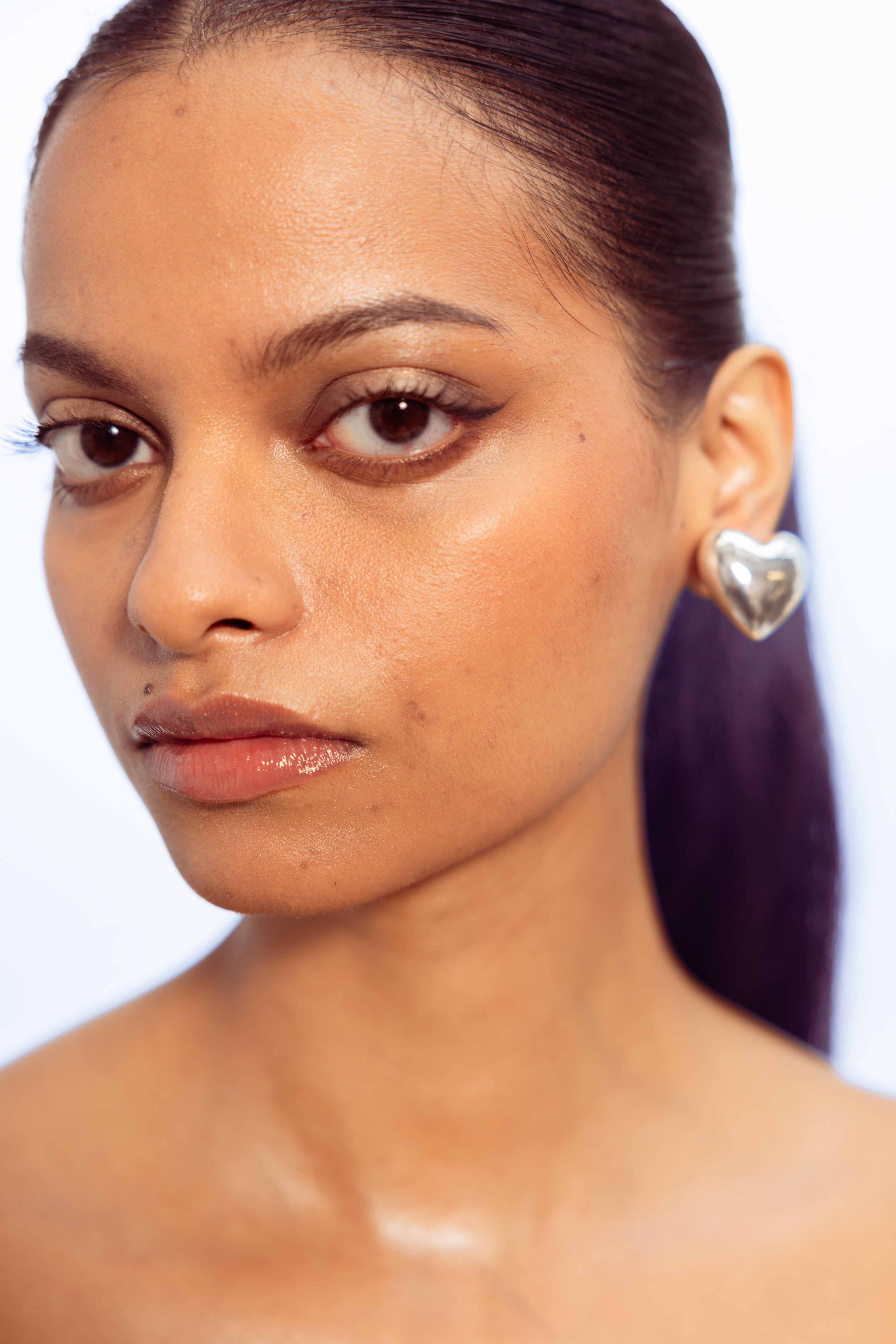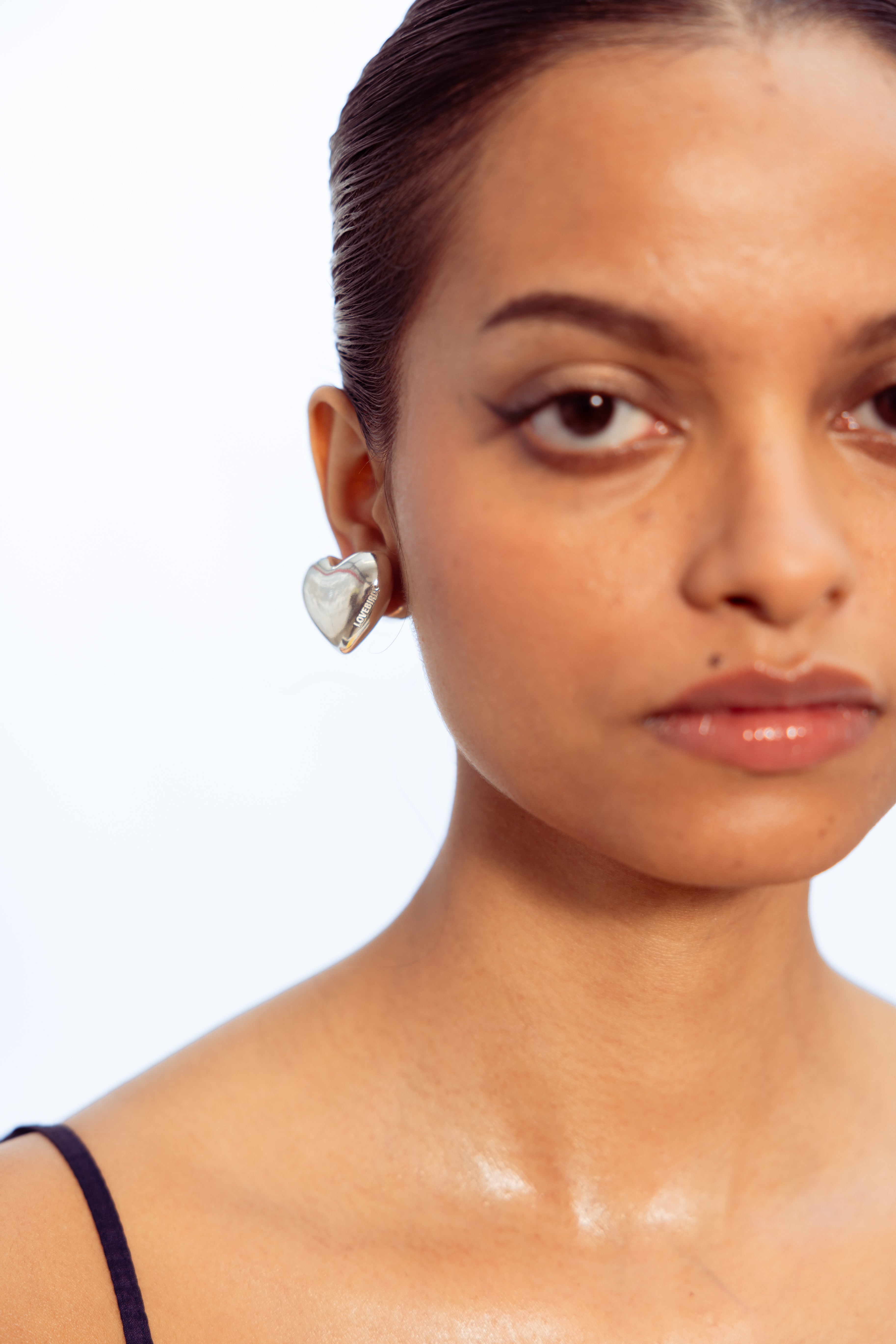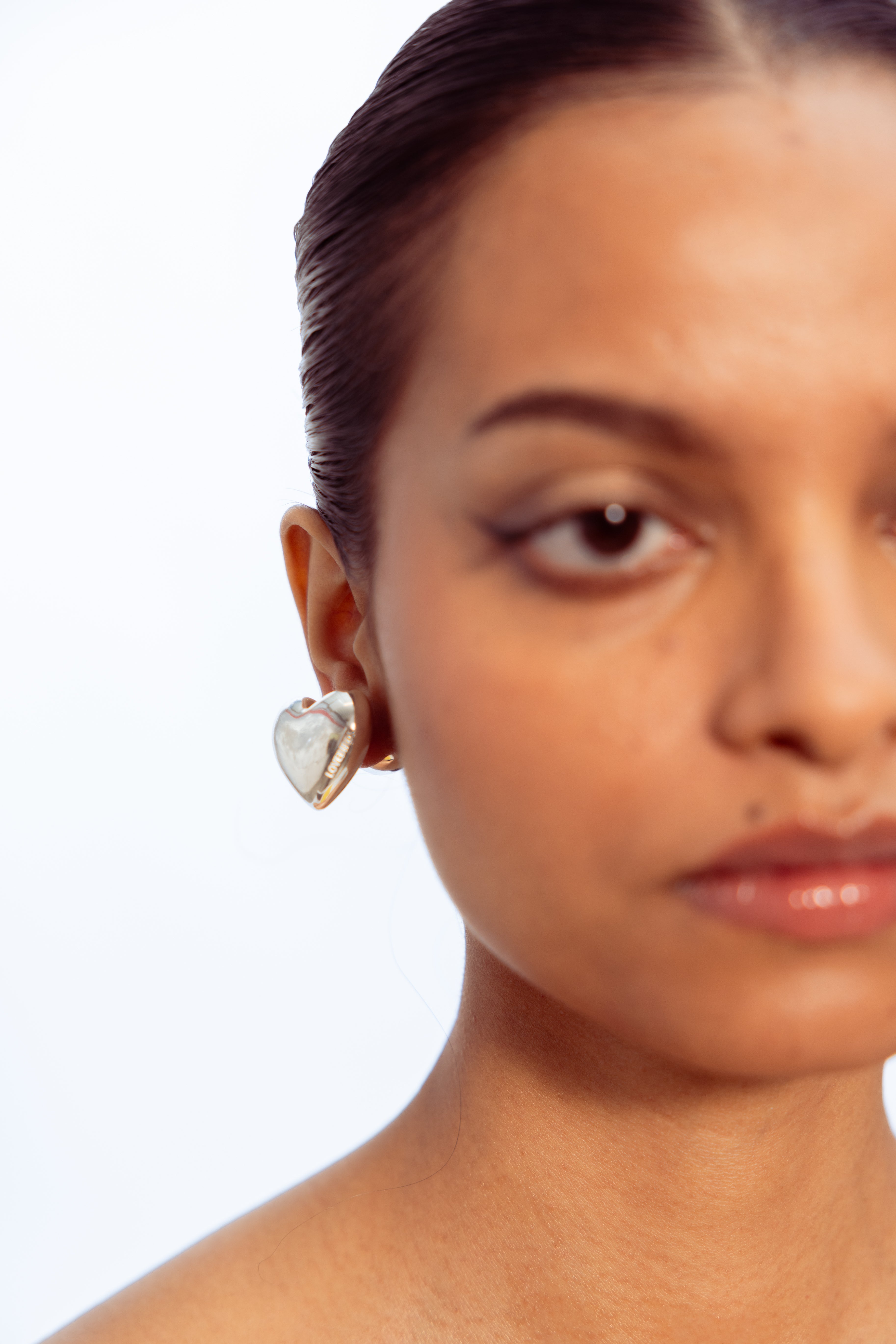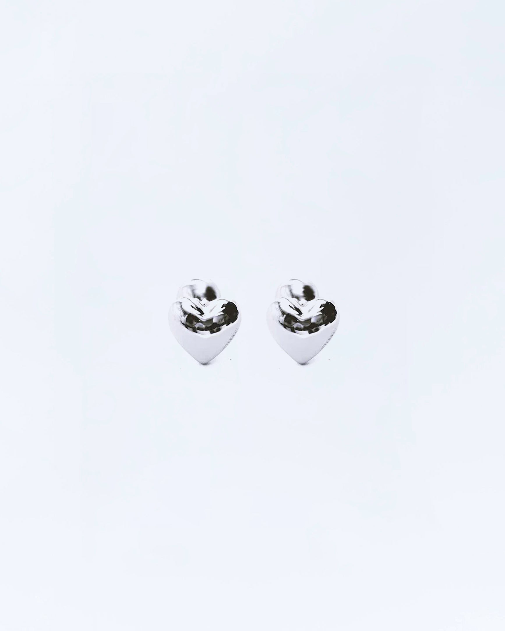 A pair of 15mm Heart shaped light weight Ear-studs with 18KT high shine Silver finish, fastened by sphere. Comes with an extra regular fastener to use the spheres separately.