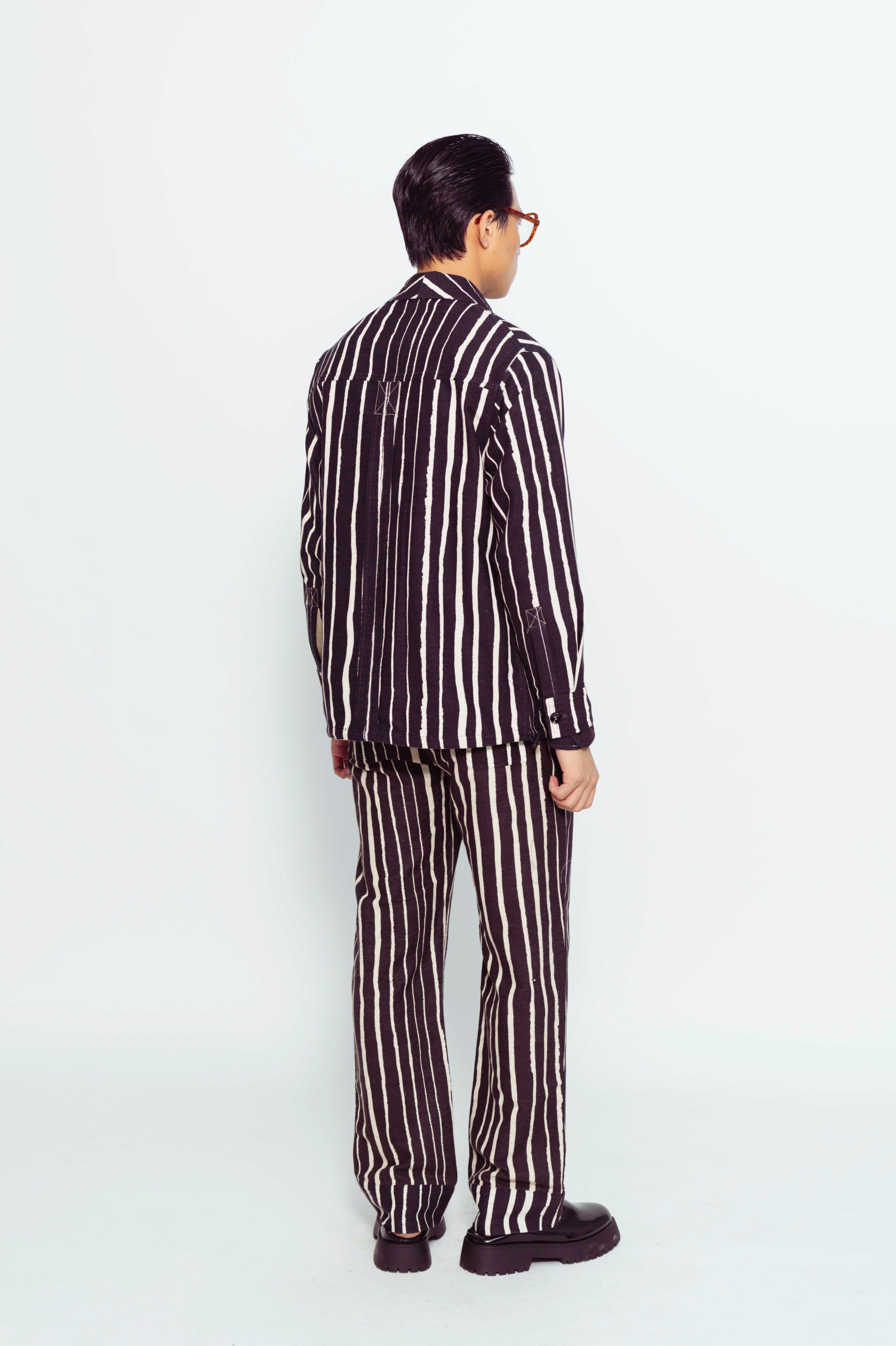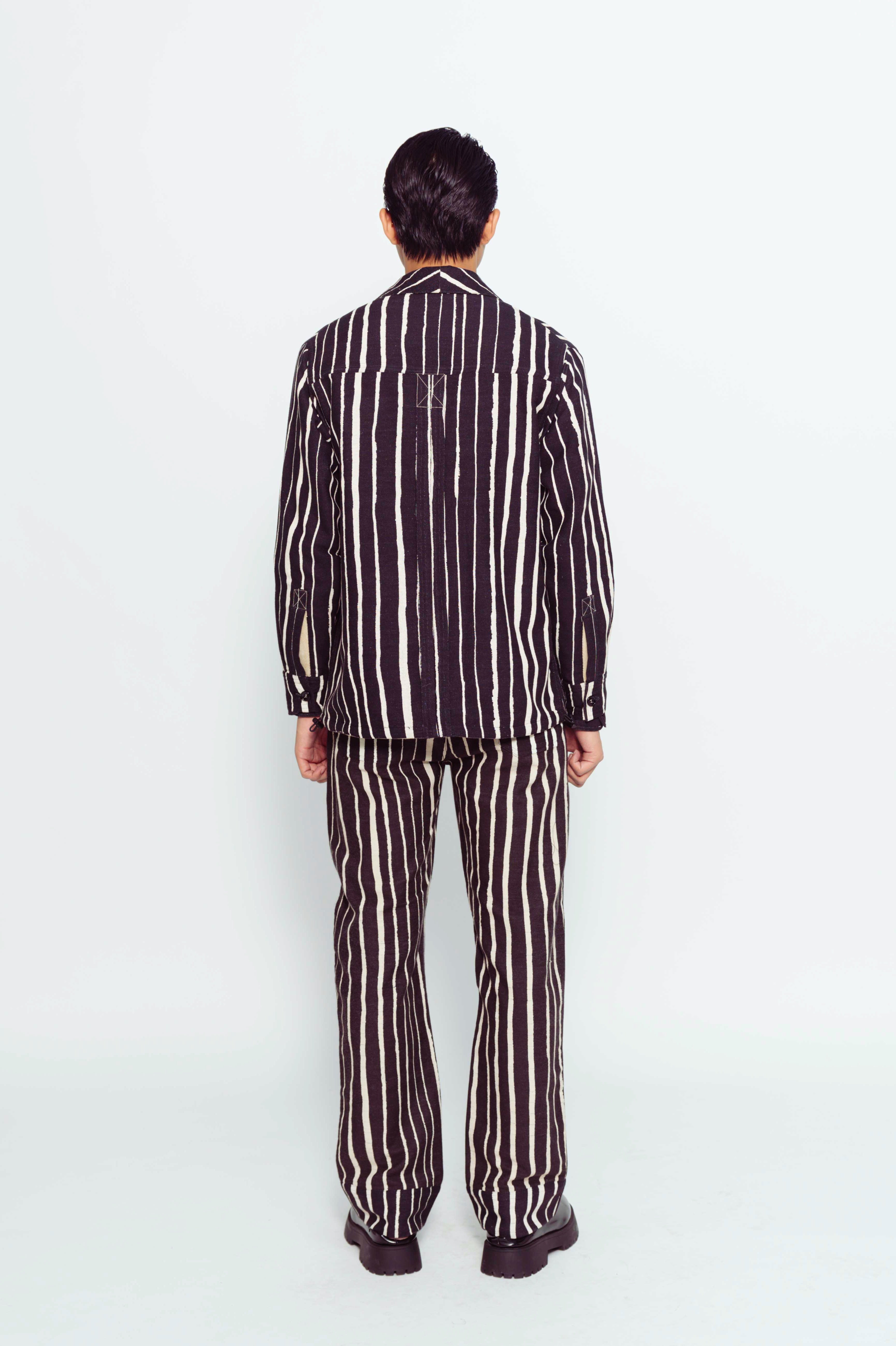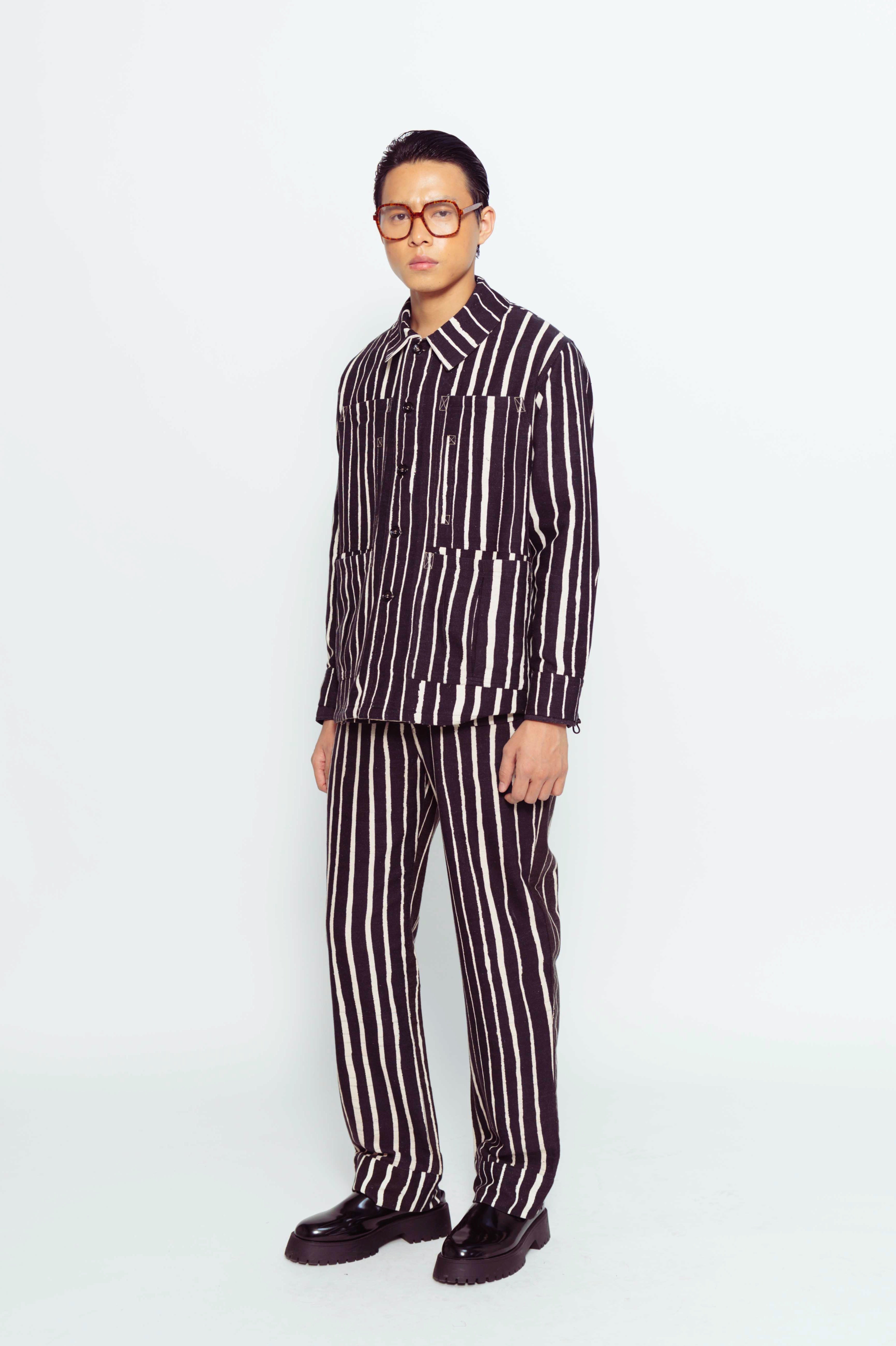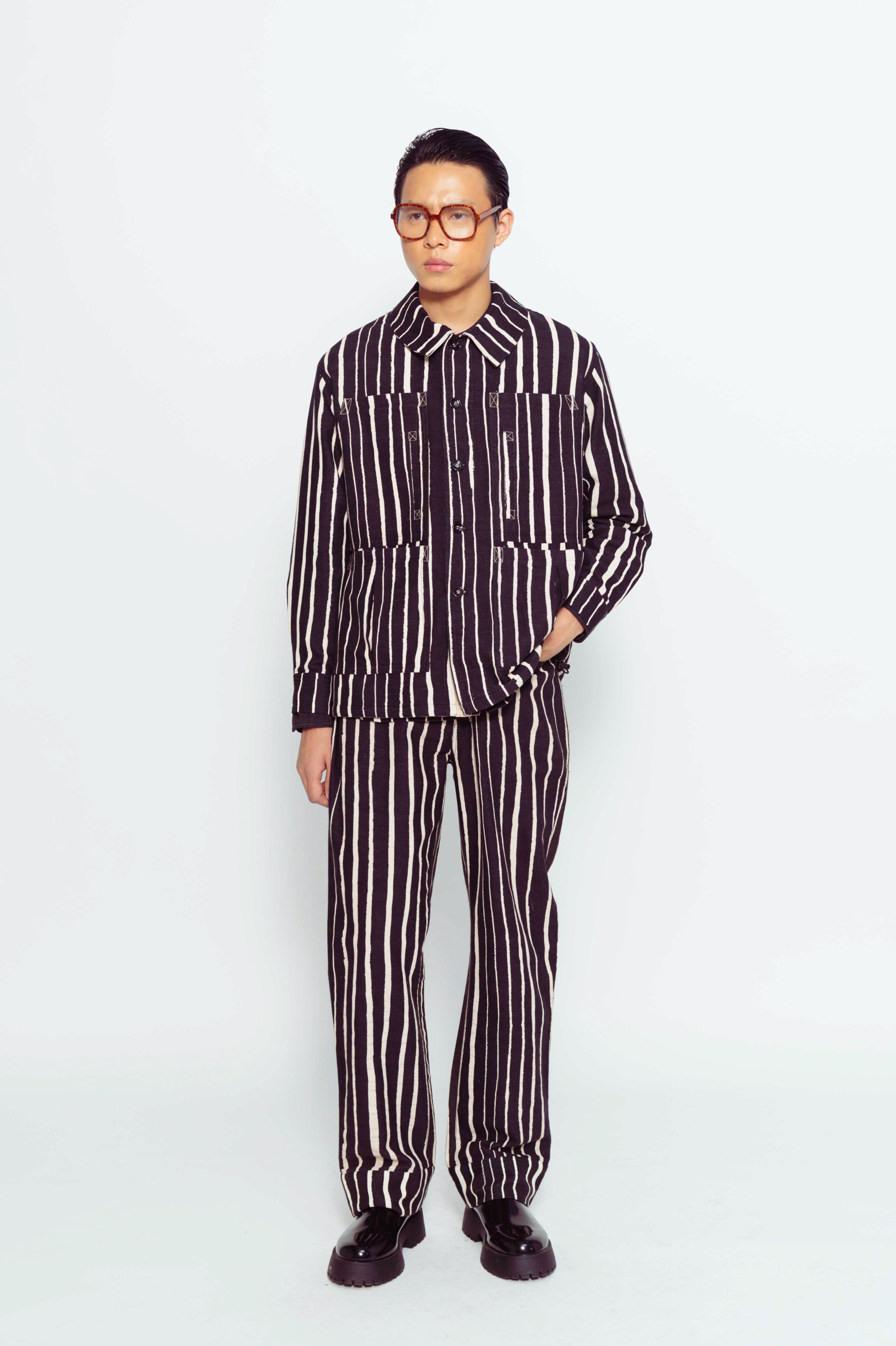 This full-sleeve screen-printed handwoven denim jacket features unique prints and chest pockets for added functionality. The durable denim fabric and stylish design make it a versatile choice for casual wear as an overshirt or a work jacket.