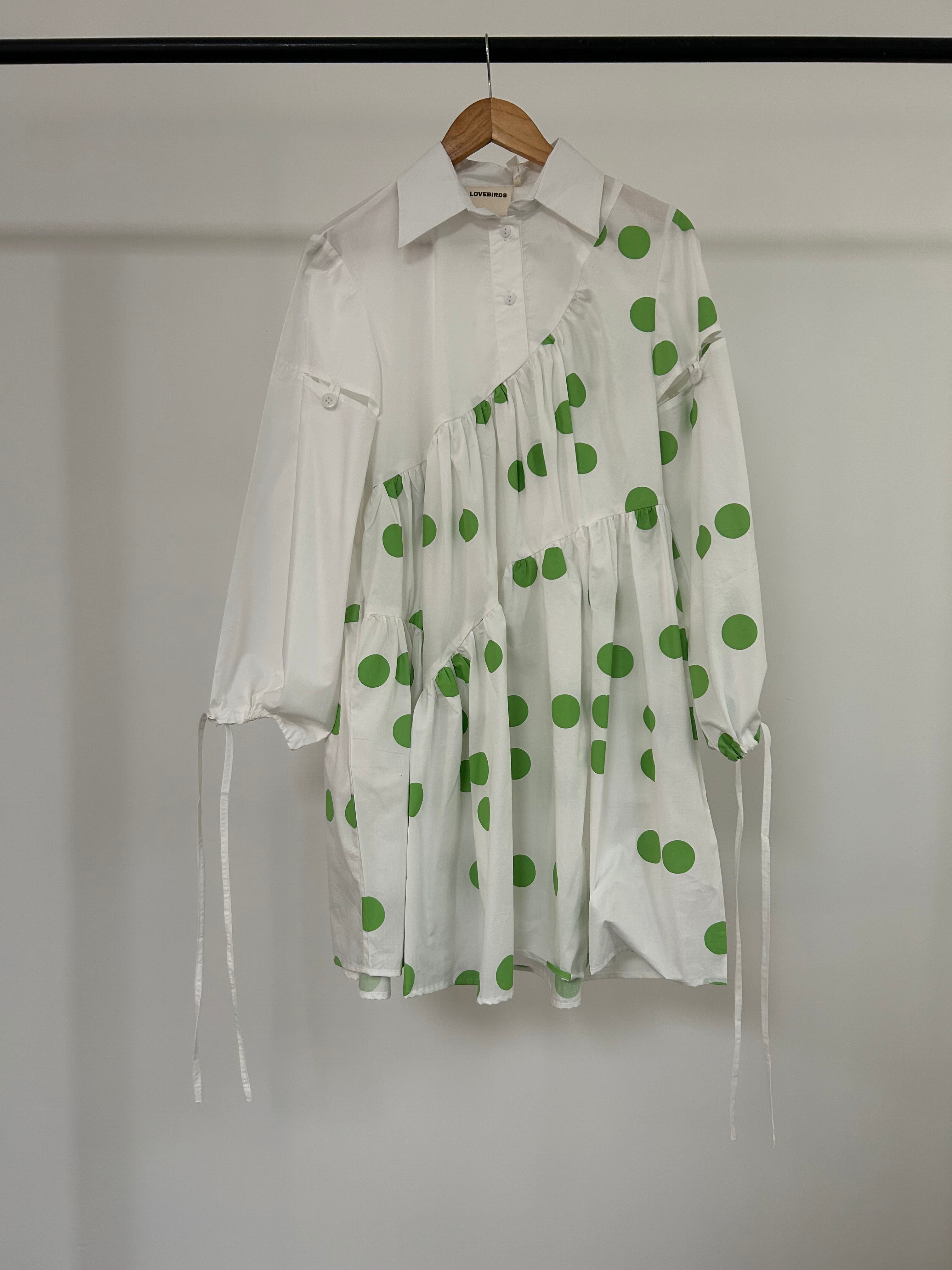 This chic color-blocked dress features a gathered waist and an eye-catching sleeve detail, adding a modern twist to a classic silhouette. Crafted from lightweight, breathable fabric, the dress offers a comfortable fit while making a bold statement with its vibrant color palette.
