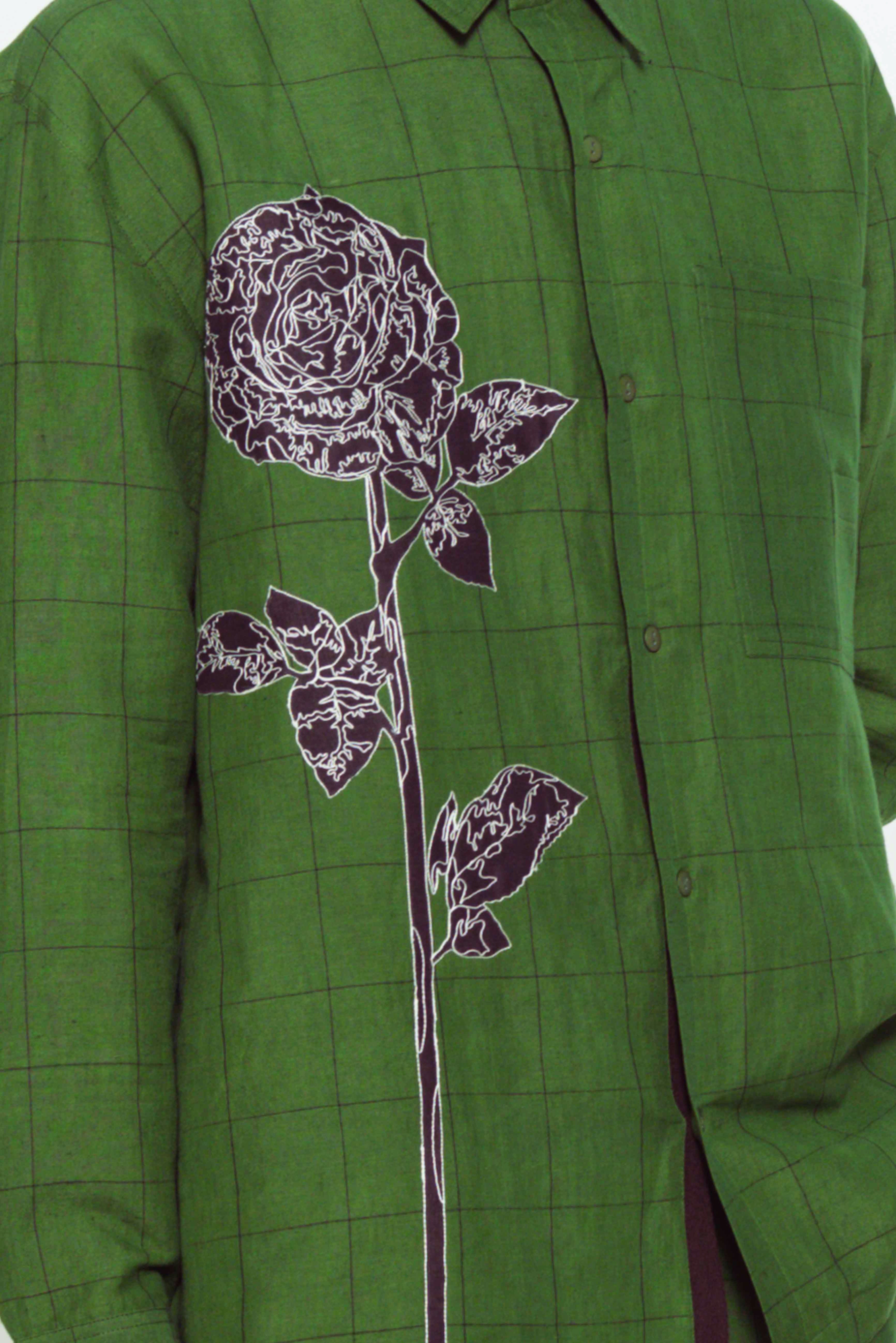 This self-checkered handloom linen co-ord set features a full-sleeve shirt with delicate floral applique embroidery and relaxed-fit trousers. The breathable linen fabric and checkered pattern offer comfort and style, making it perfect for casual or semi-formal occasions.