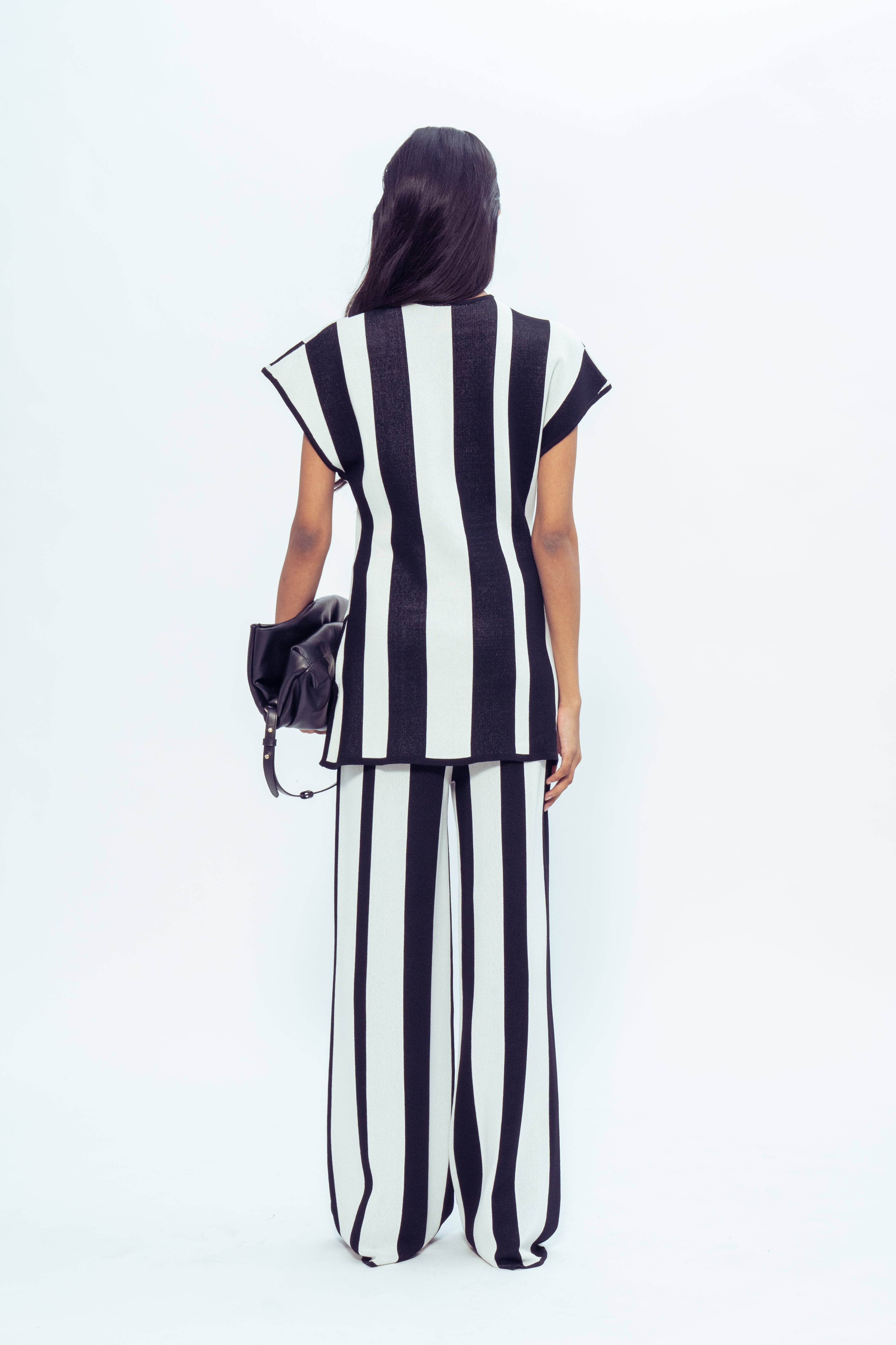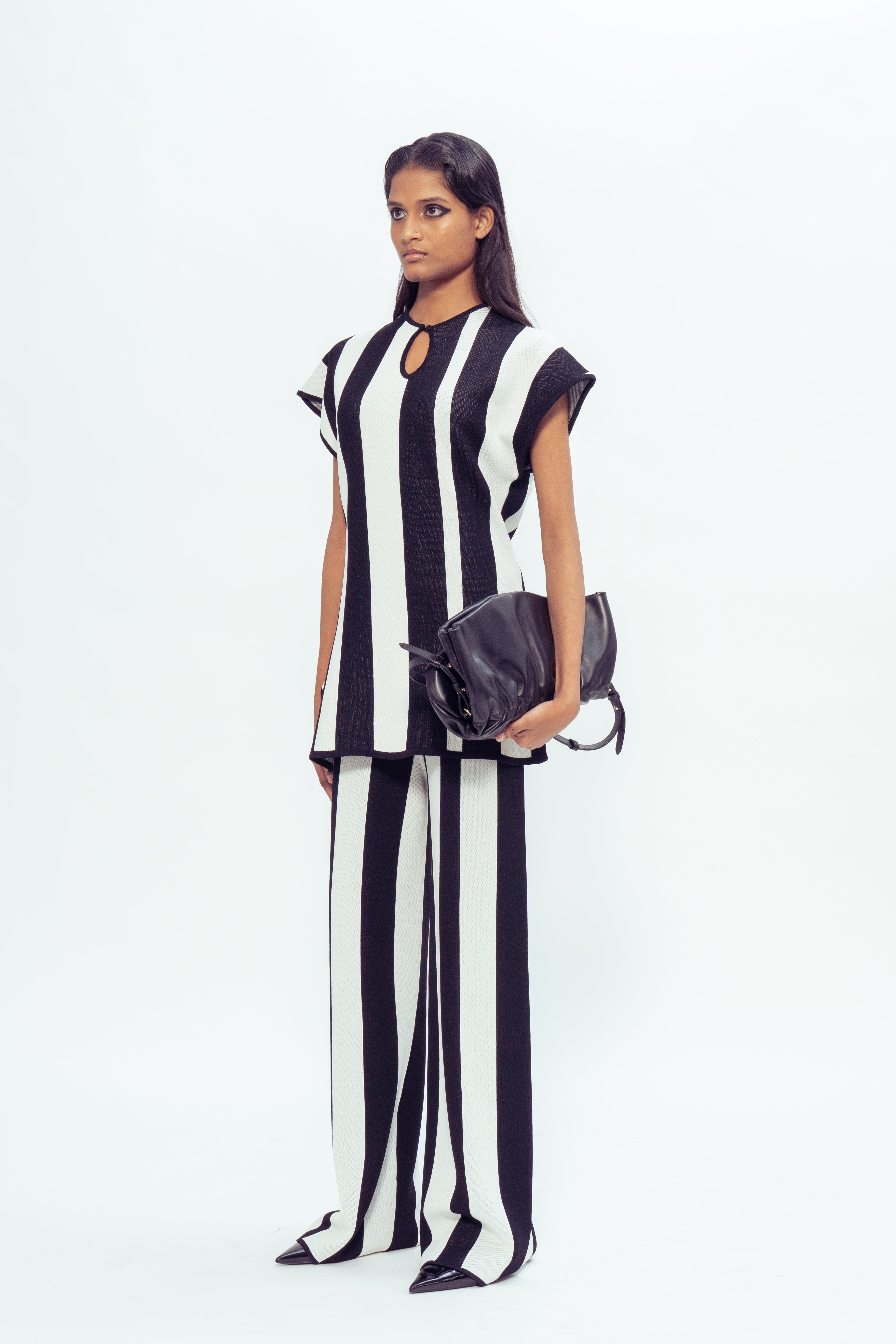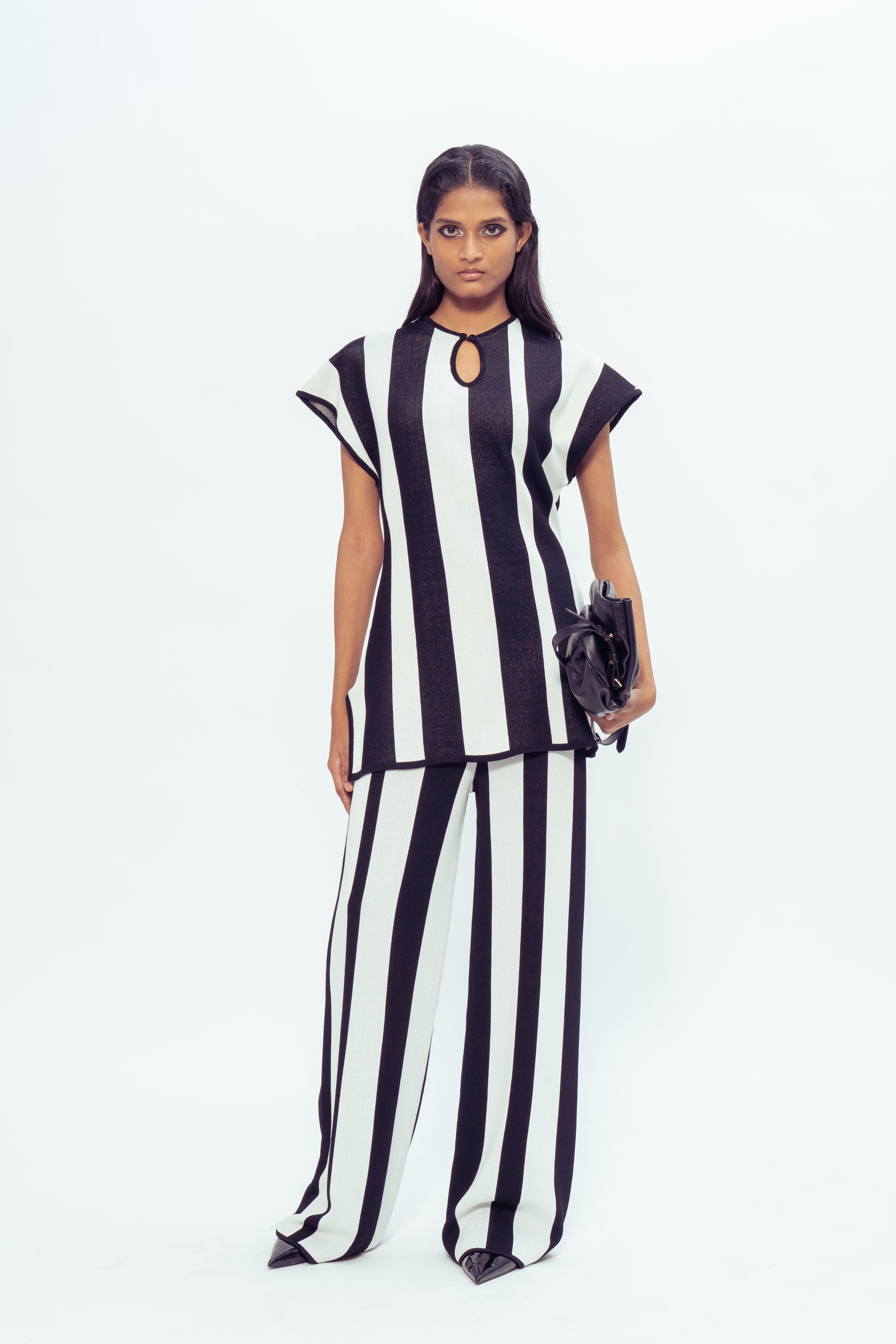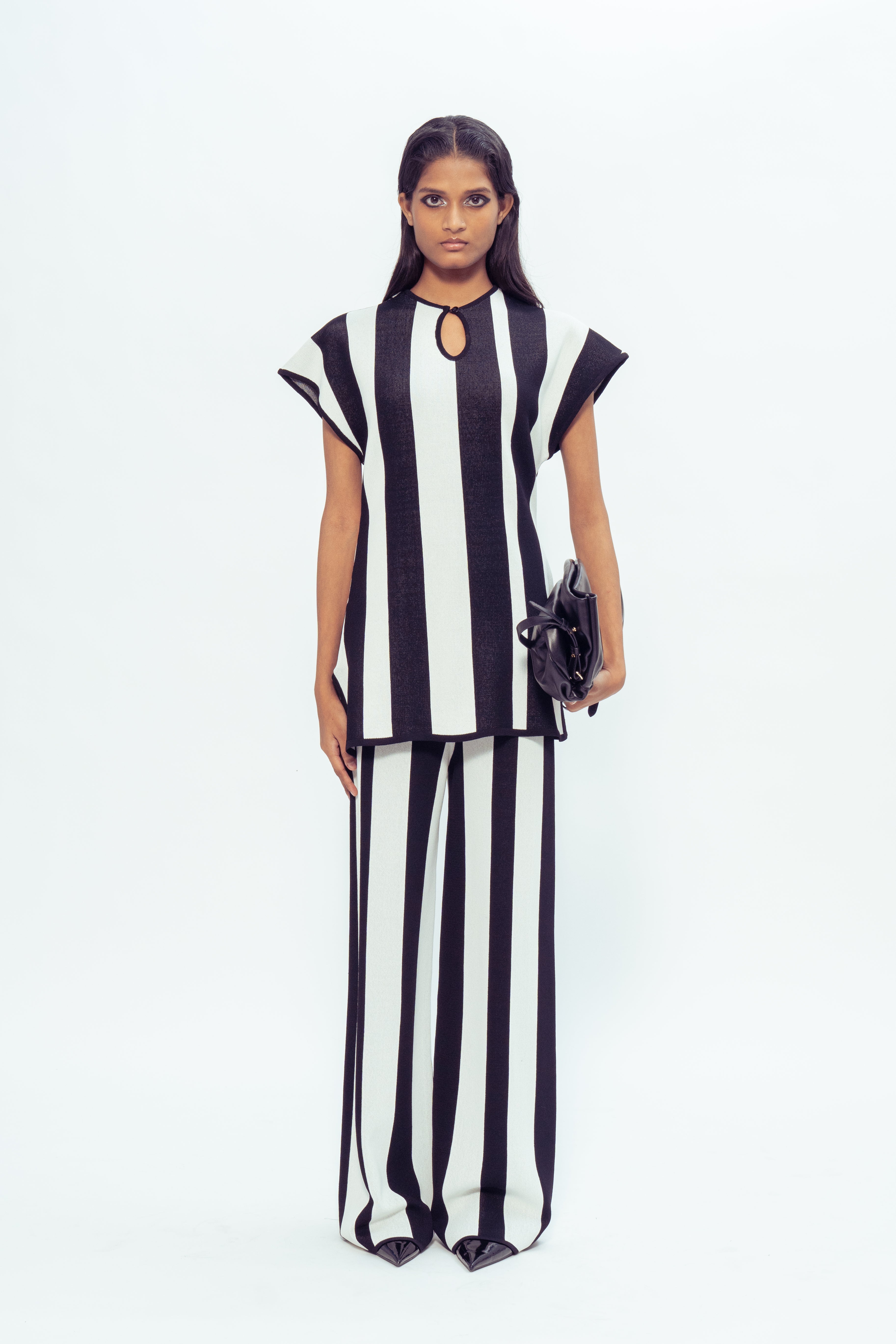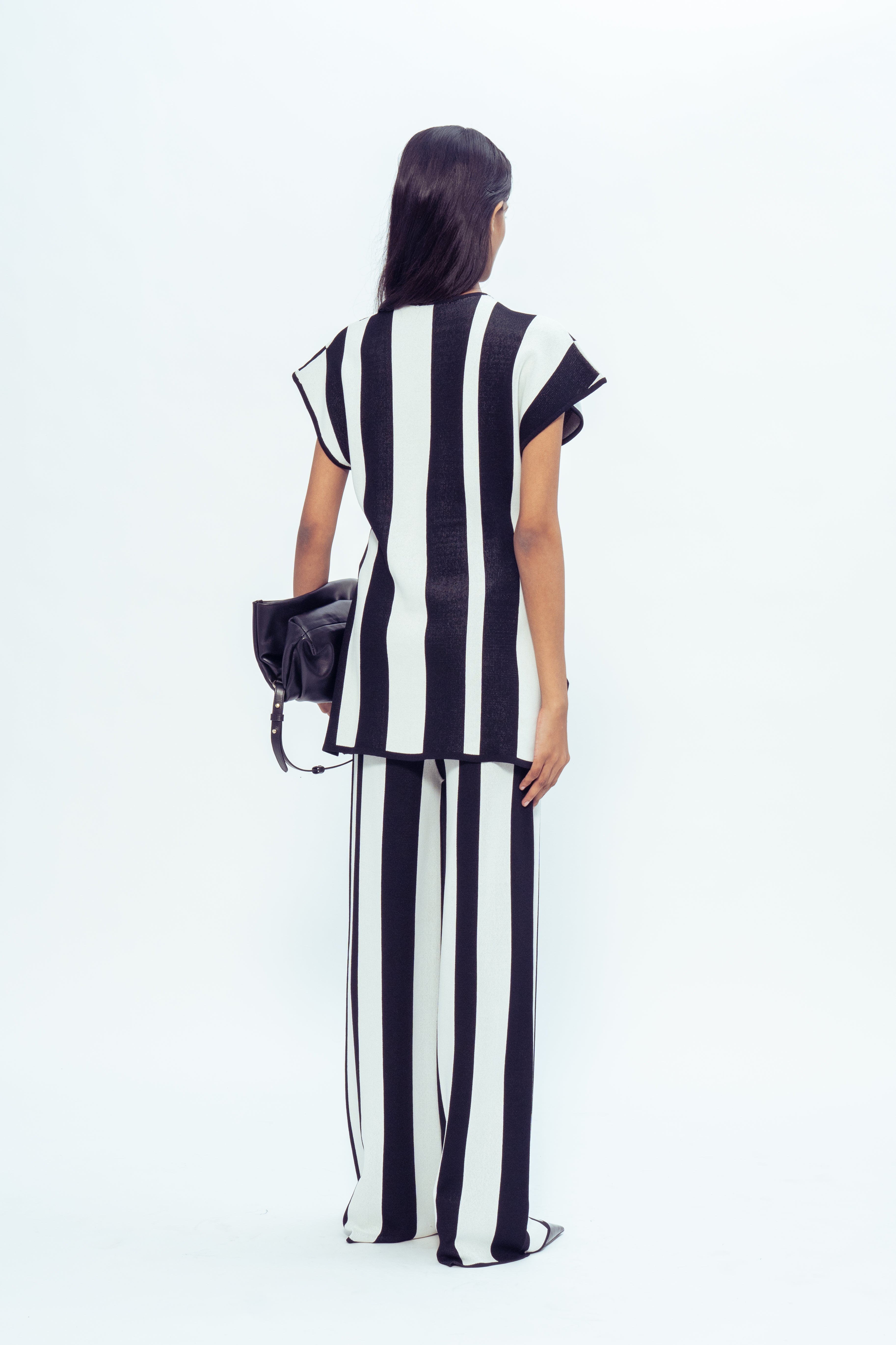 Crafted in a soft, stretch knit, this top features a striking vertical illusion pattern that elongates the silhouette and adds subtle texture. Designed for a close fit, it's a versatile piece that works effortlessly from day to evening.