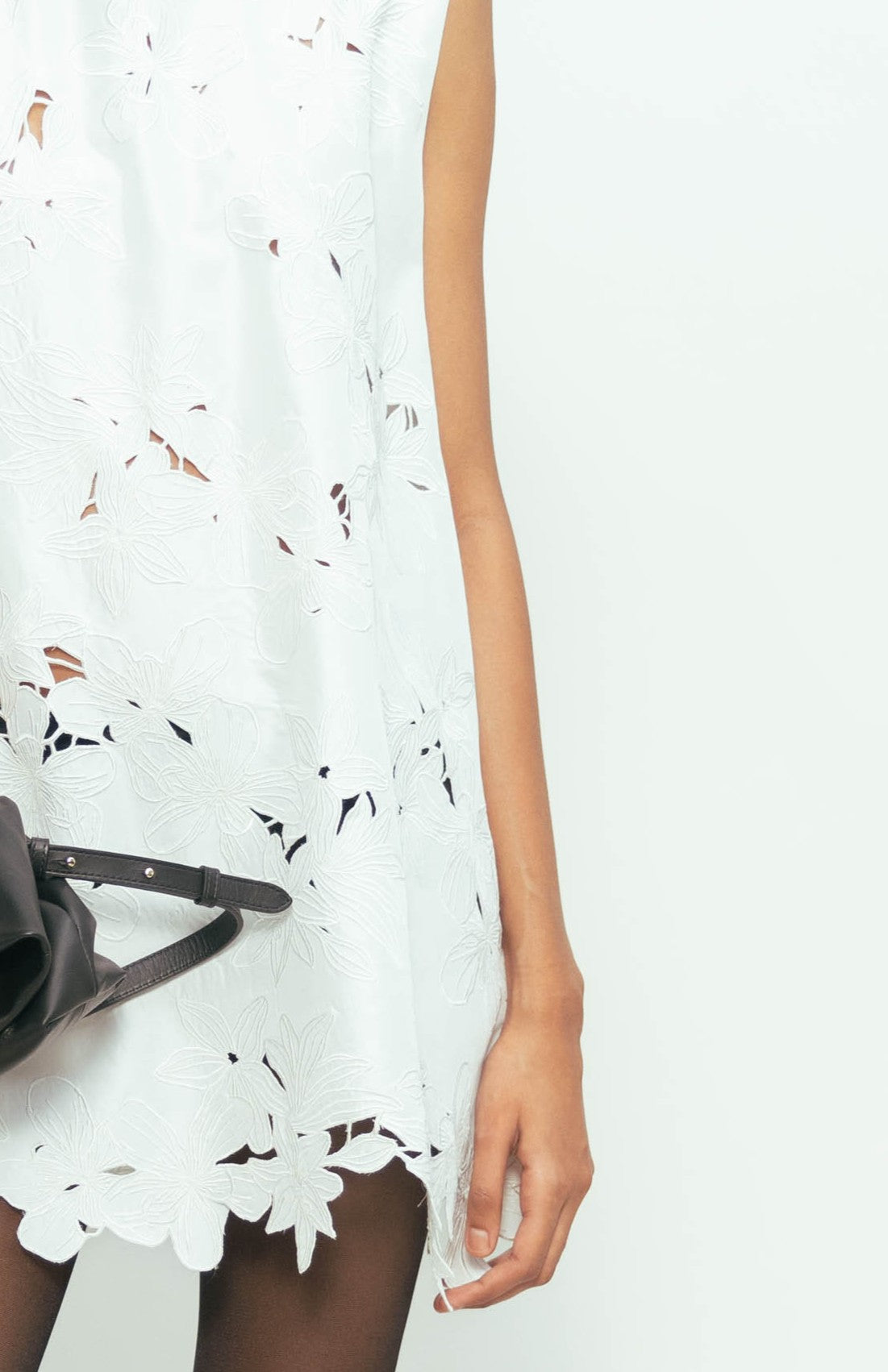 A study in shadow and intricacy, this piece is defined by its openwork surface—delicate yet deliberate. Negative space becomes pattern, with every cut and curve revealing just enough. Its form is fluid, shaped to follow the body with quiet elegance, while the surface shifts between opacity and air. A bold softness runs through it, offering both strength and lightness in one considered gesture.