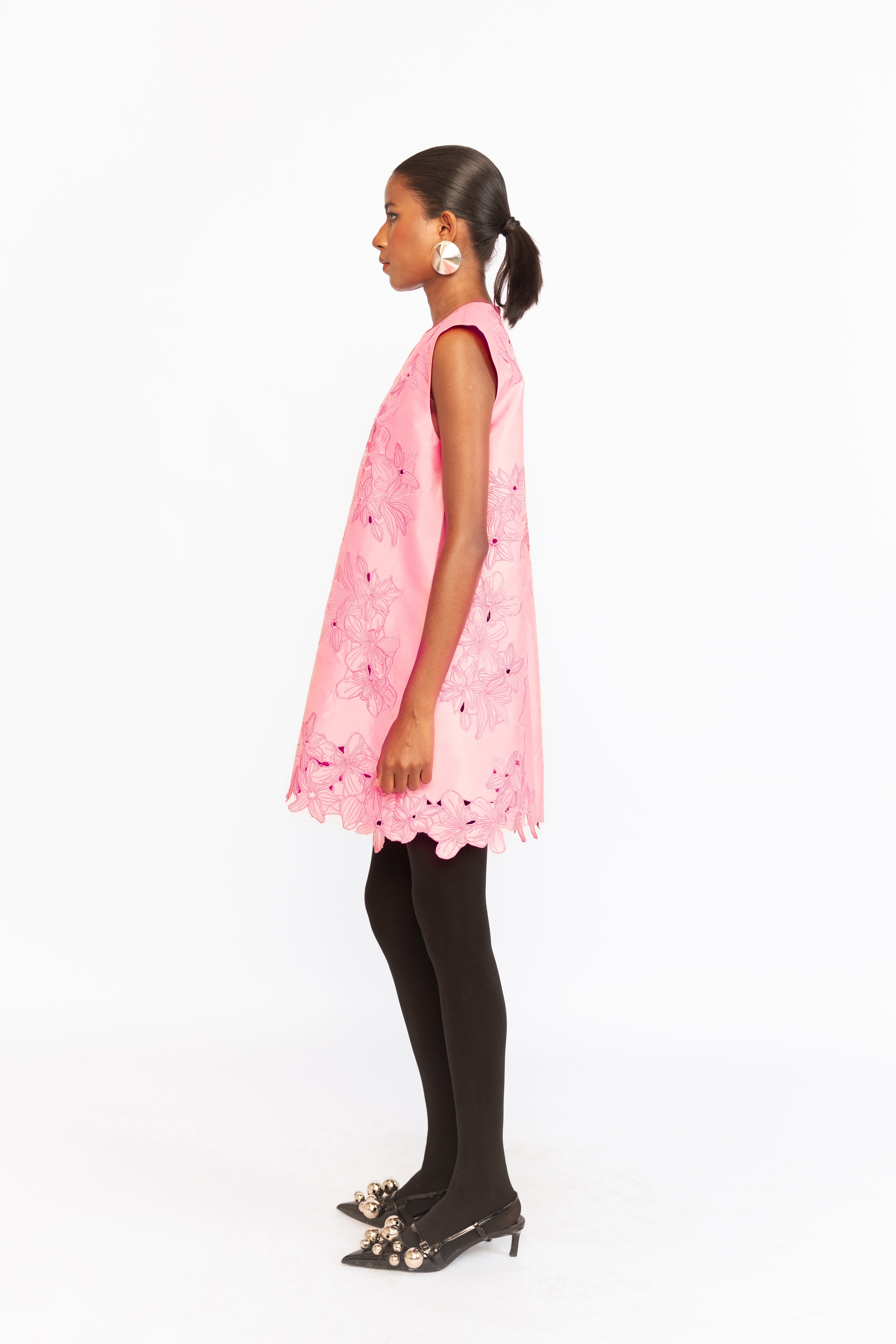 A study in shadow and intricacy, this piece is defined by its openwork surface—delicate yet deliberate. Negative space becomes pattern, with every cut and curve revealing just enough. Its form is fluid, shaped to follow the body with quiet elegance, while the surface shifts between opacity and air. A bold softness runs through it, offering both strength and lightness in one considered gesture.