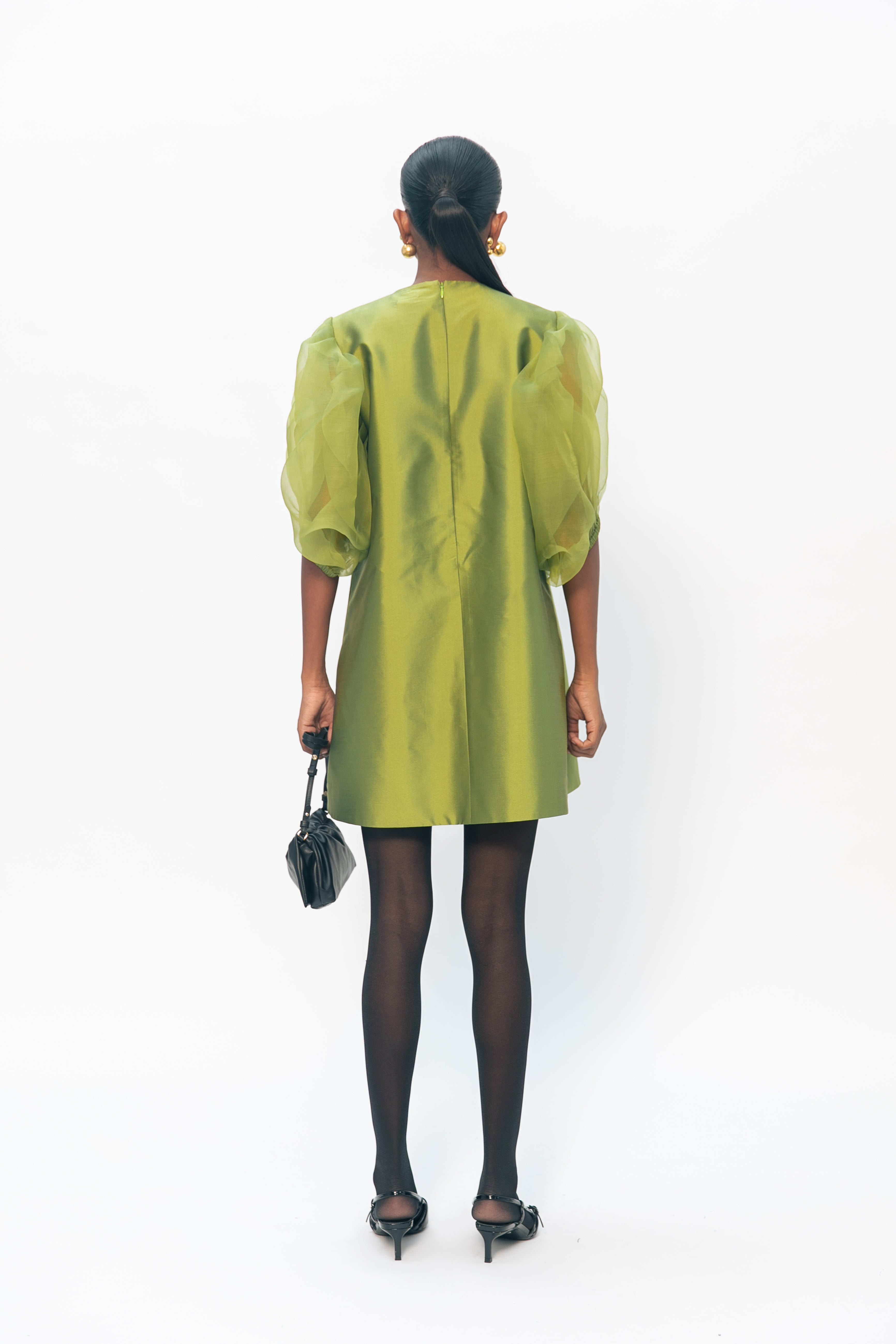 This charming short dress features enchanting organza puff sleeves that lend a whimsical touch, while delicate flower appliqué embroidery adds an elegant and feminine flair. With its sophisticated design, this dress is perfect for making a striking impression at any special occasion, combining grace and style effortlessly.