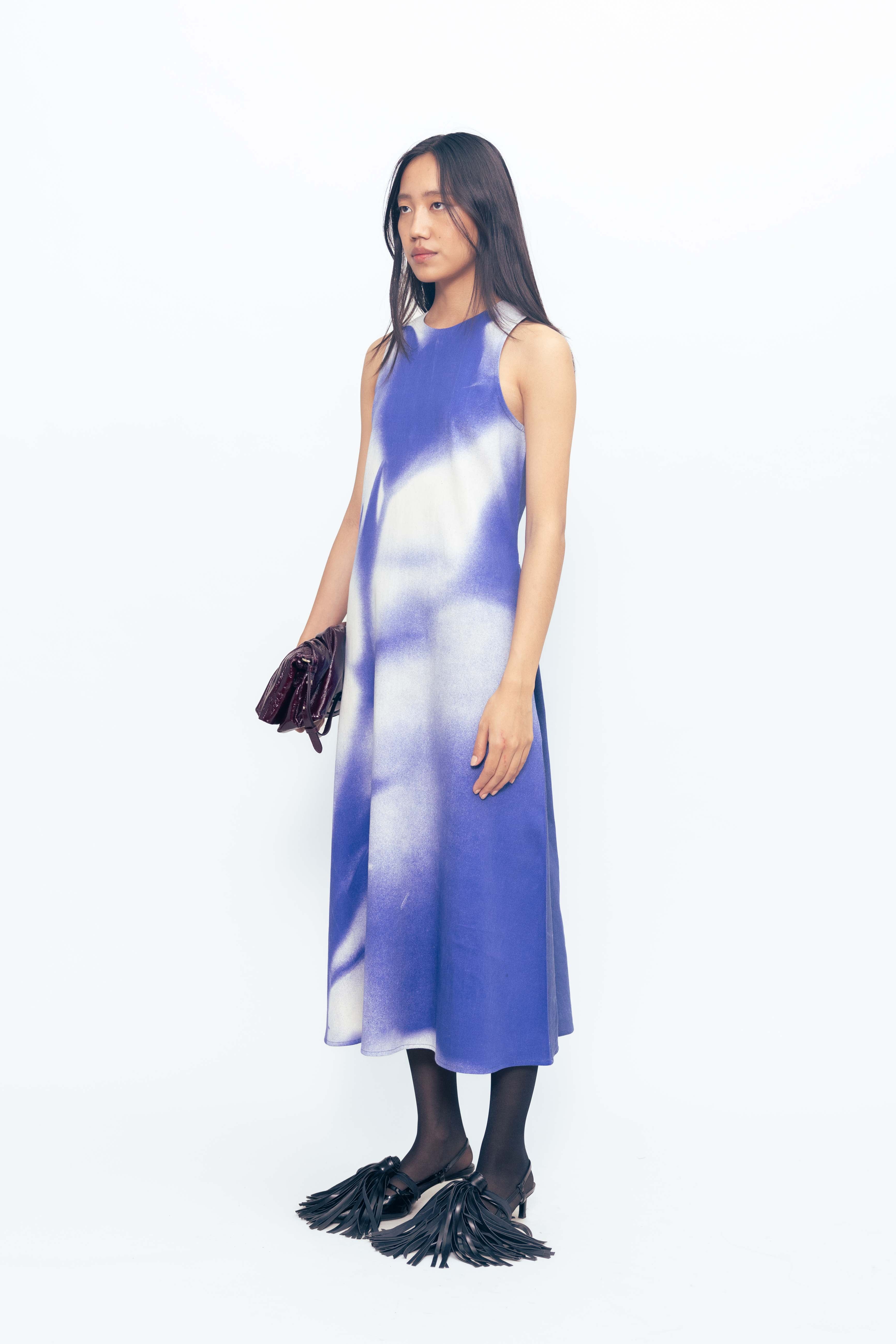 This fit-and-flare dress brings softness to denim with a painterly lily haze print that adds subtle depth and visual interest. The structured bodice gently defines the waist, while the flared skirt offers ease and movement. Balancing everyday comfort with refined detail, it’s a fresh take on denim dressing—playful, polished, and effortlessly versatile.
