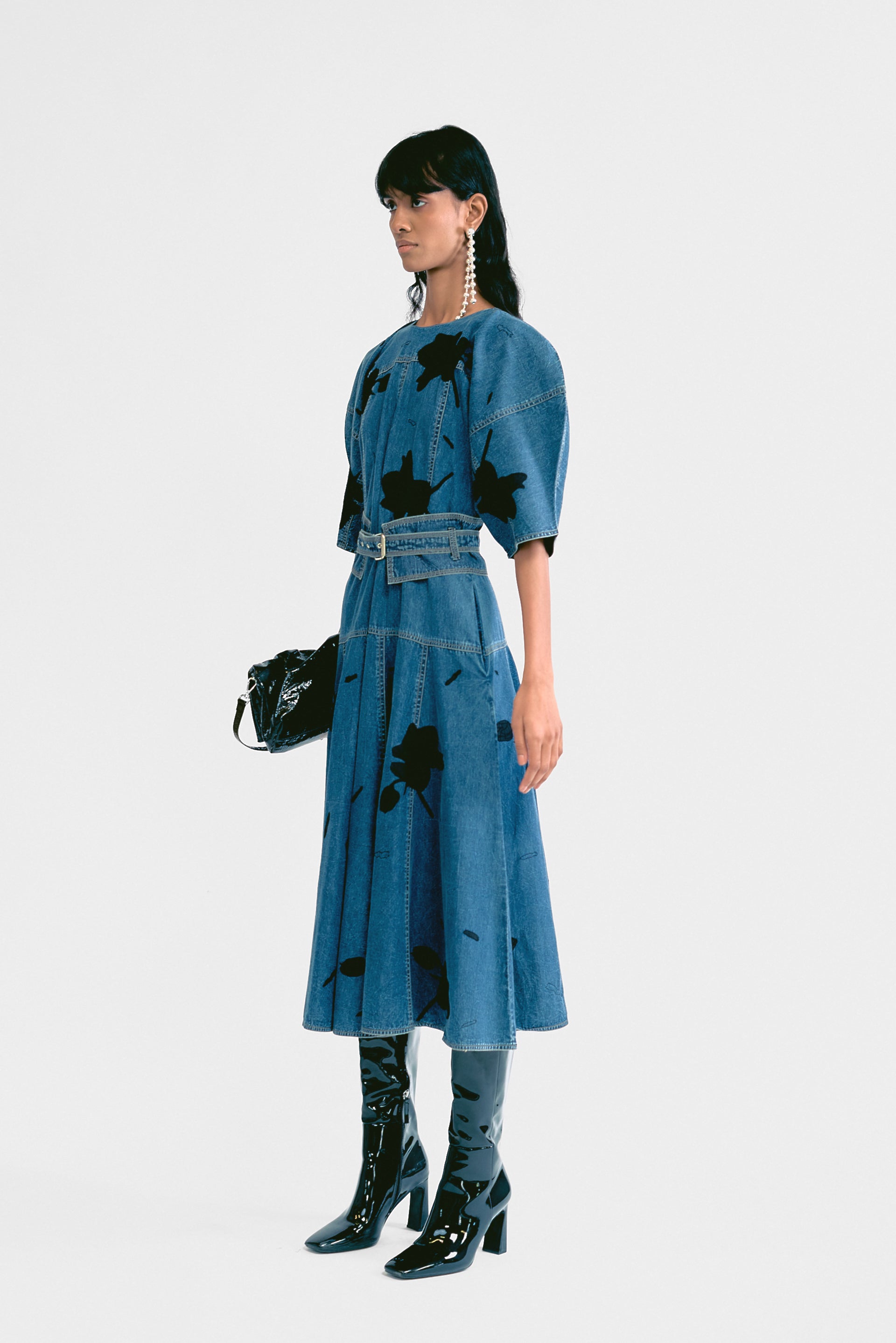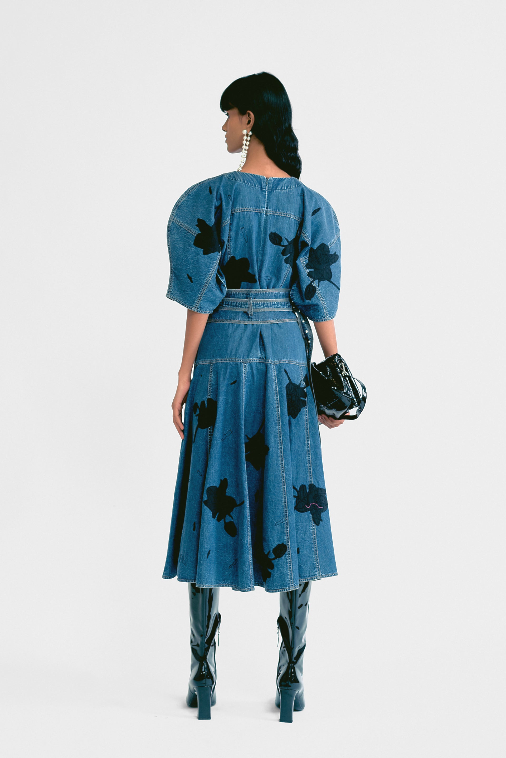 Turn heads in this Flora Freesia Patched Denim Fit & Flare Dress, featuring delicate Freesia appliqué patches for a feminine touch. The structured bodice flows into a flared skirt, creating a flattering silhouette with effortless movement. A perfect blend of classic denim and artistic detailing, it's a standout piece for any occasion.