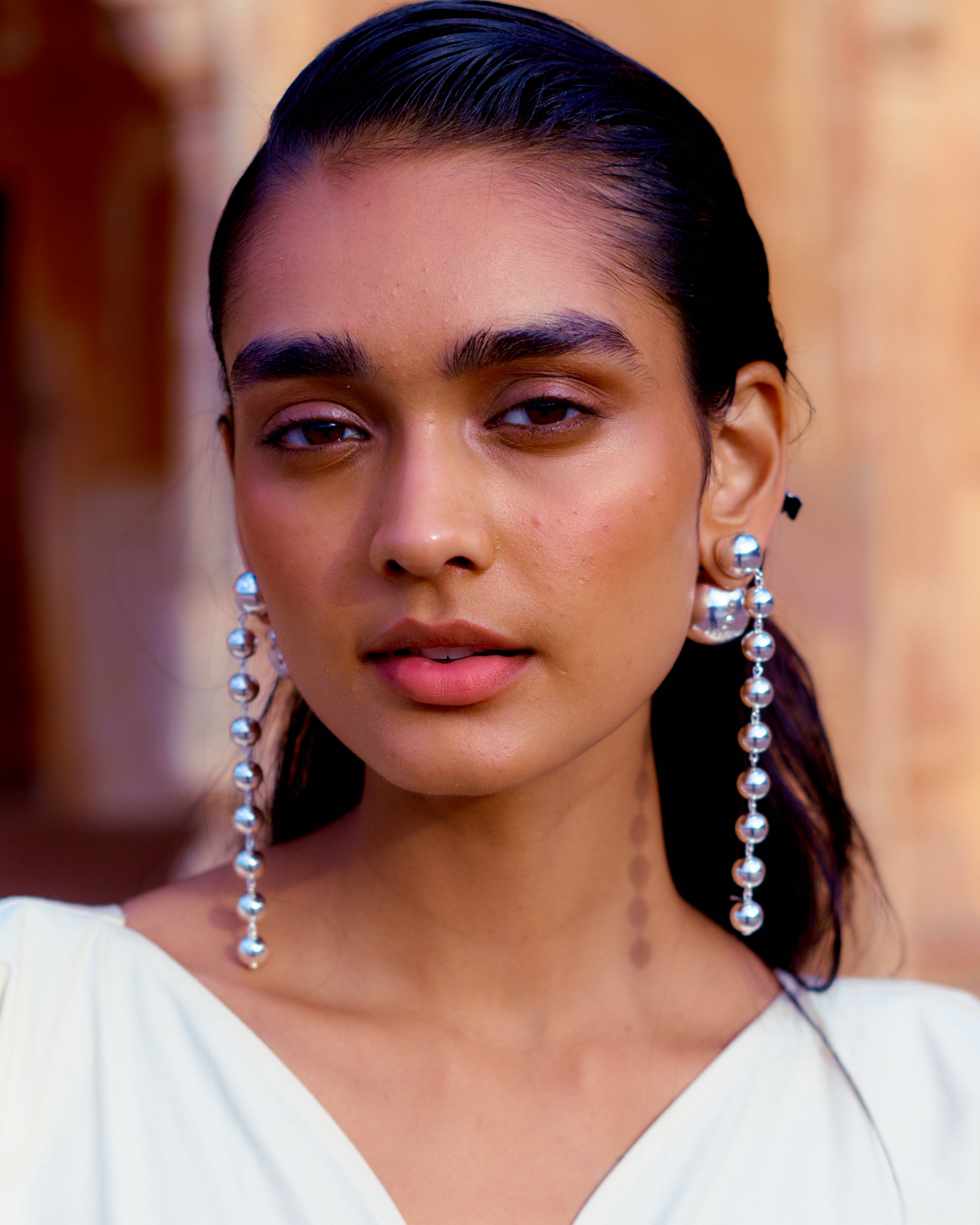Crafted from eco brass, these earrings strike a balance between sustainability and style. The front showcases a prominent 25mm ball for a bold statement, while the back features an oval plate measuring 66mm by 45mm, adding an elegant touch. Despite their substantial weight of 65gms, these earrings offer comfort and durability. With their unique design and eco-friendly materials, they make a chic and conscious addition to any jewelry collection.