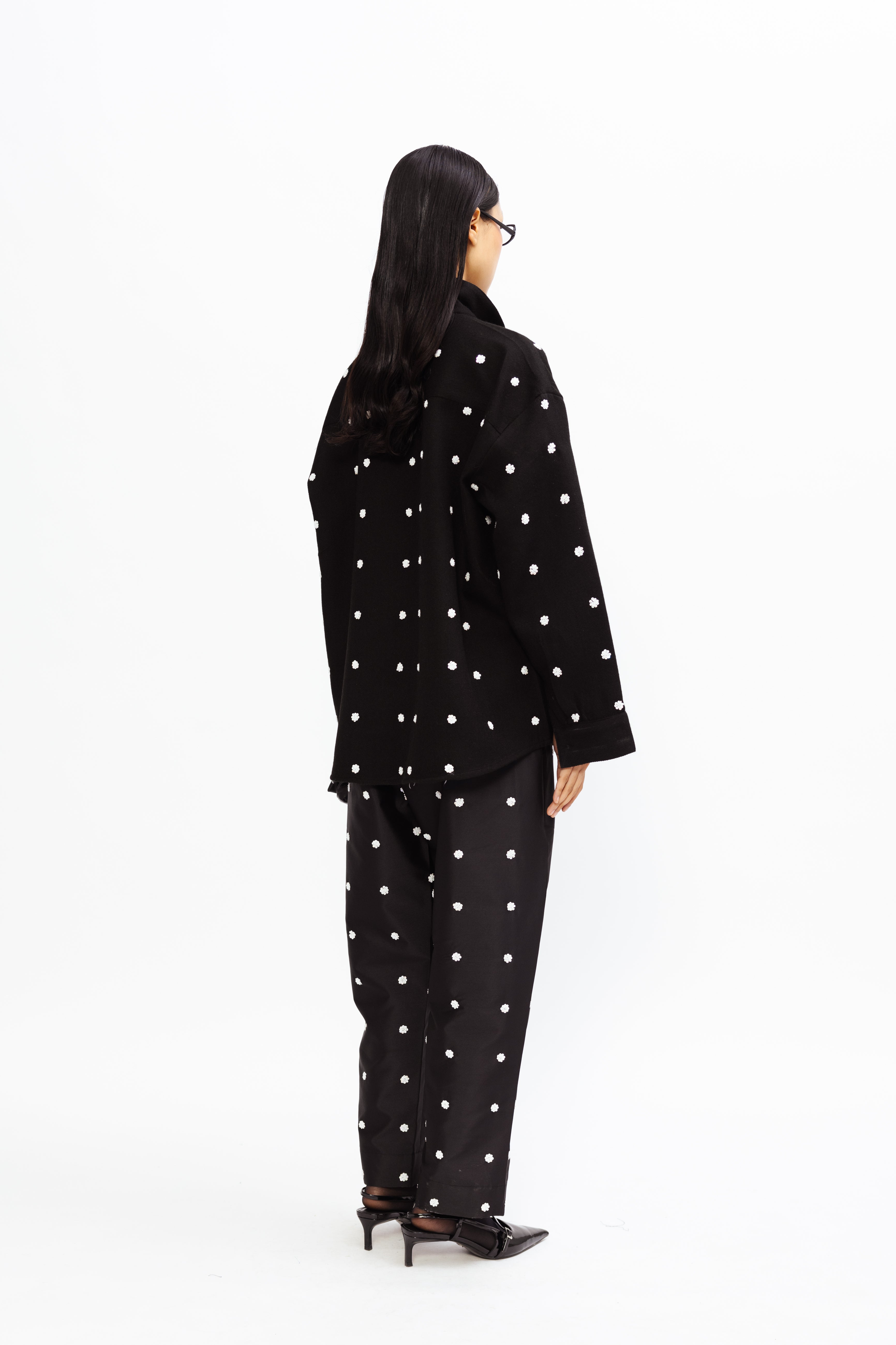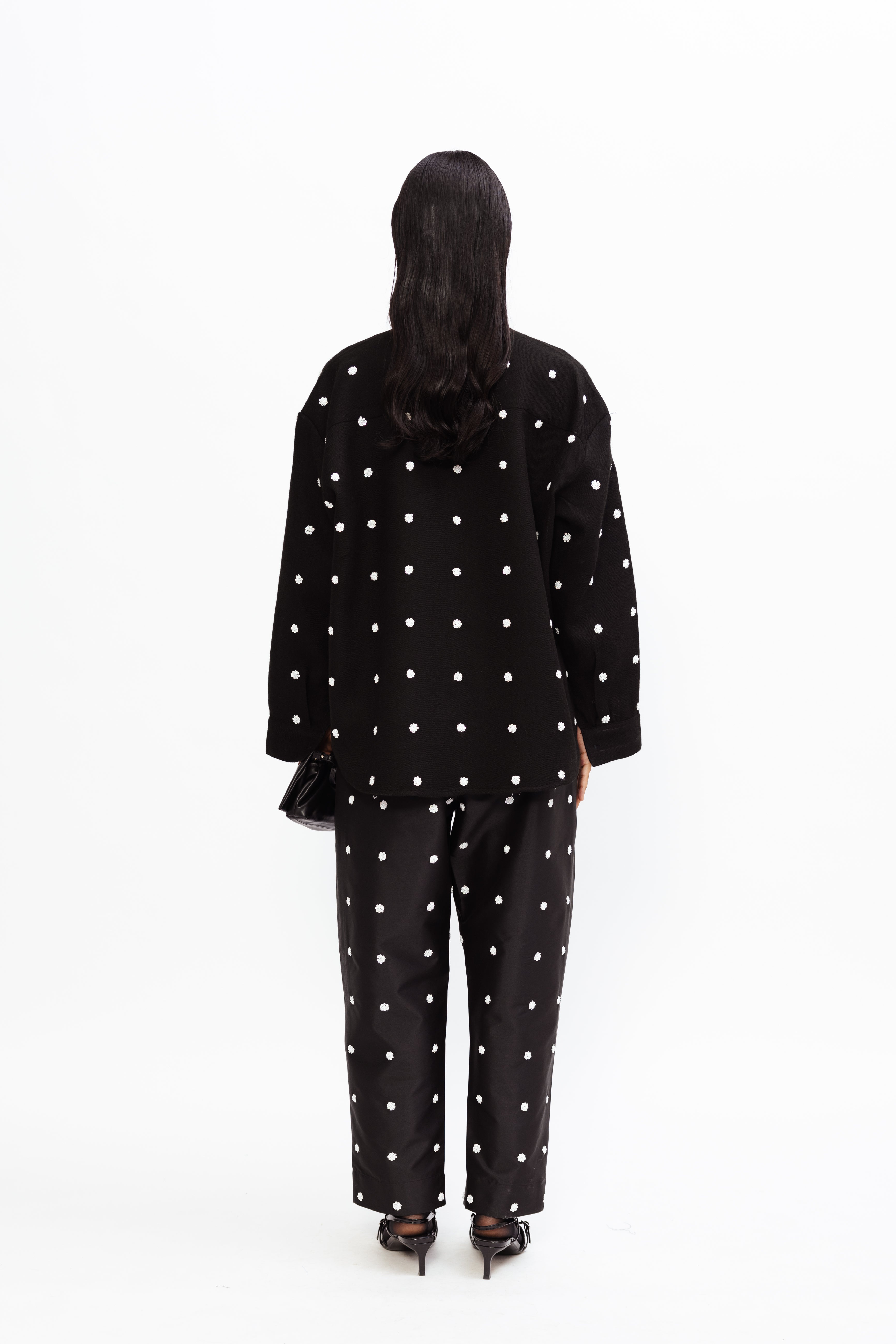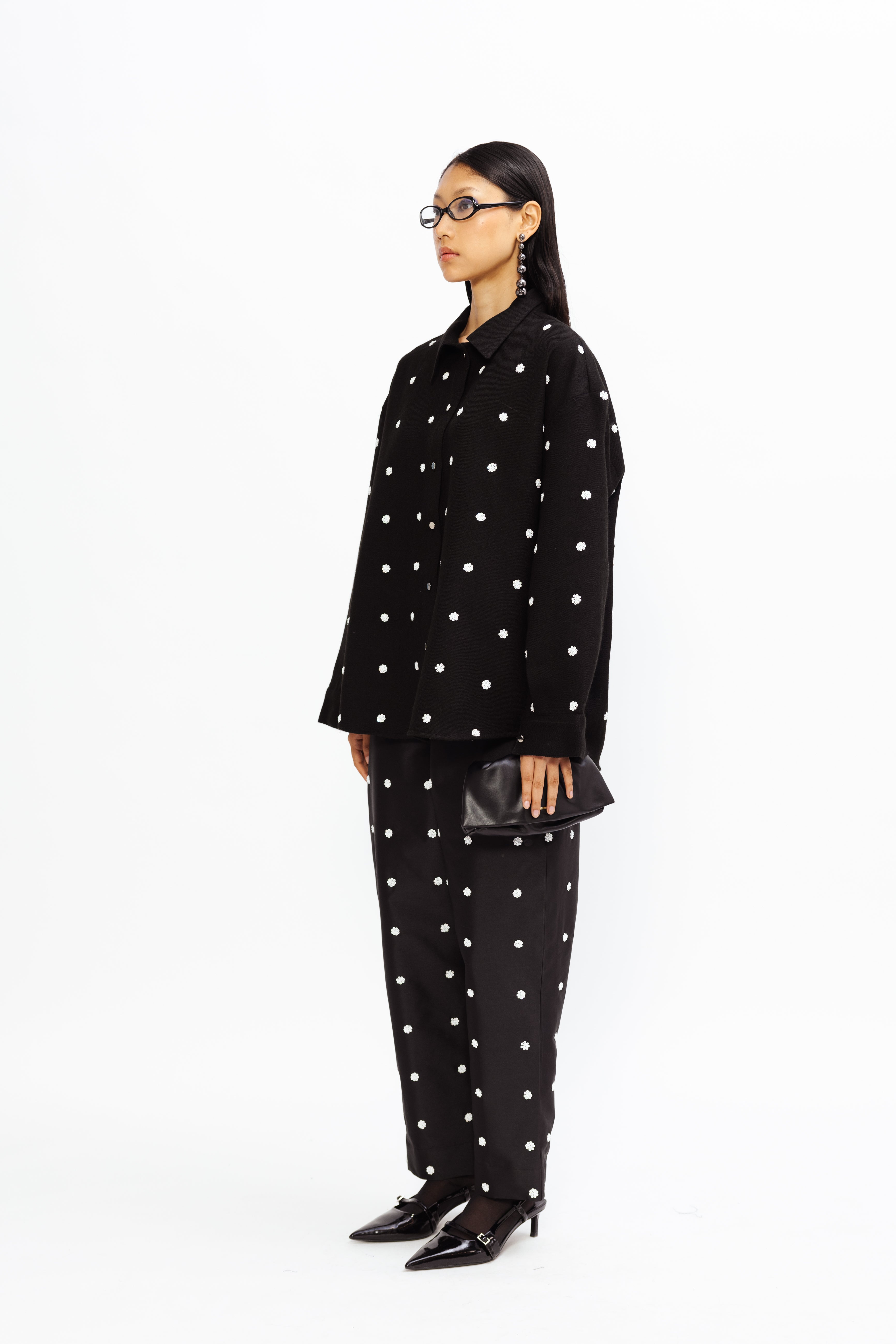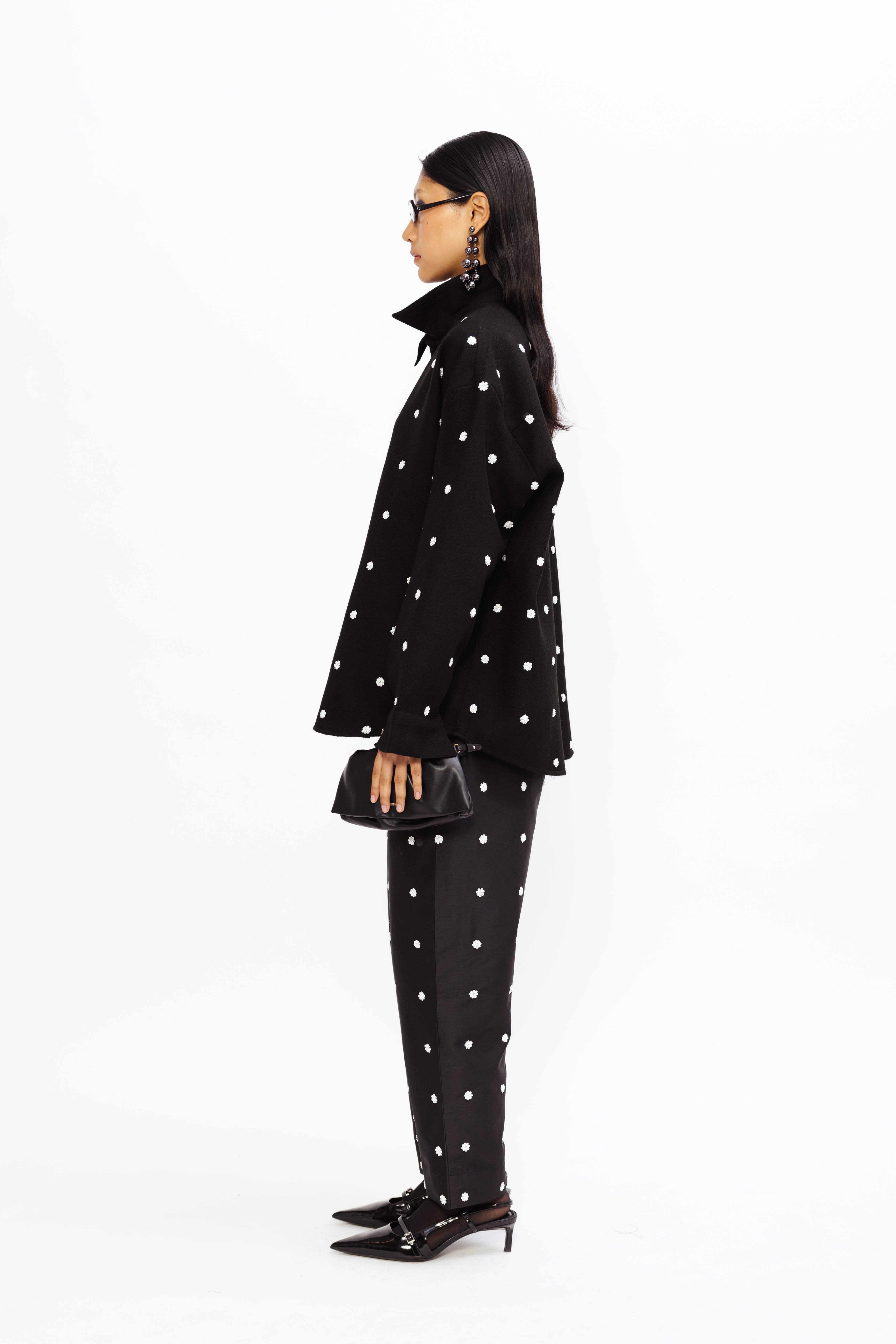Crafted from lustrous taffeta, these trousers exude a luxurious sheen and refined appeal. The relaxed, straight-leg fit offers effortless comfort while maintaining a modern, polished silhouette — perfect for both elevated daywear and chic evening looks.