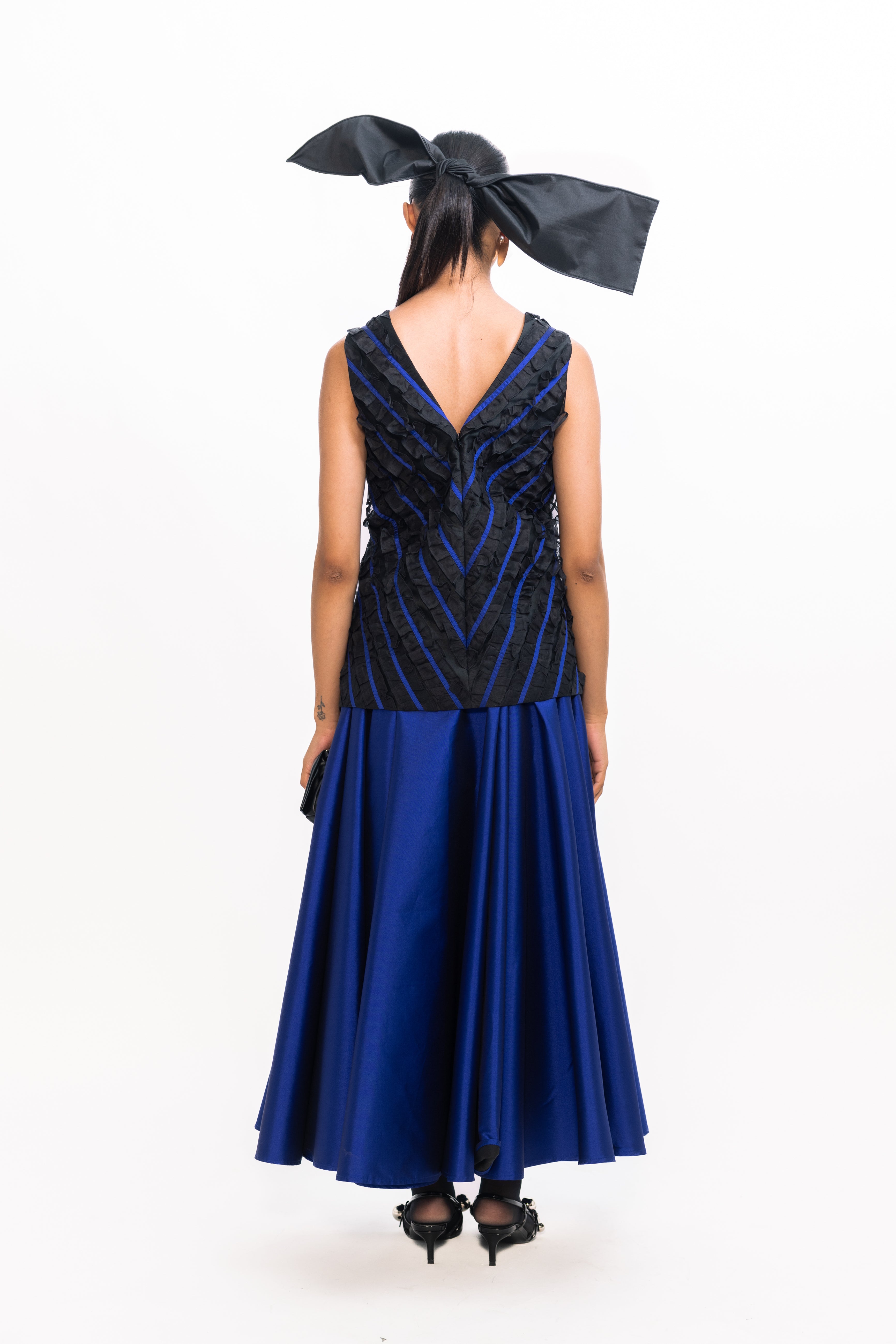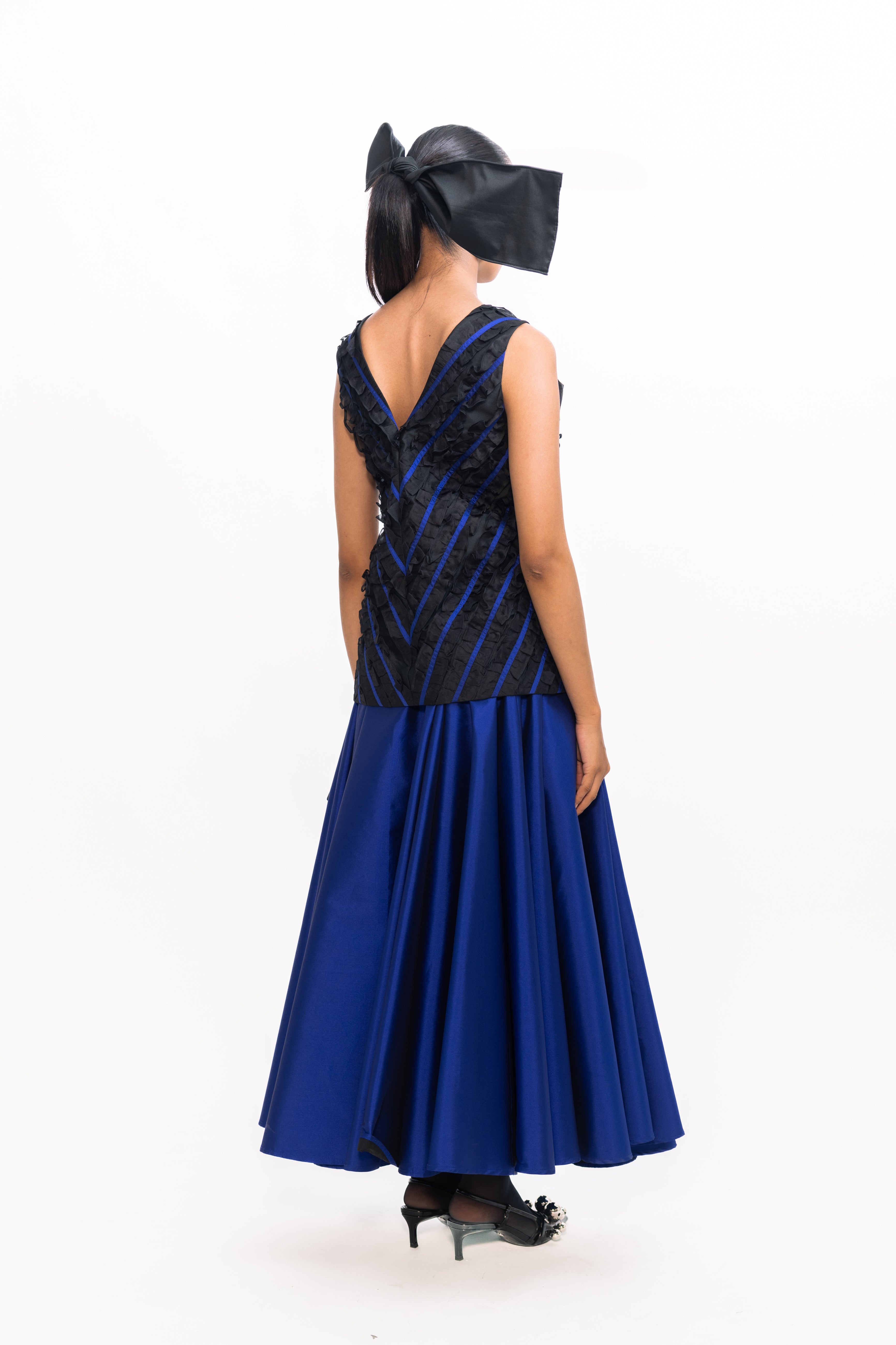 Crafted from lustrous taffeta, this flared skirt offers elegant volume and a beautifully structured silhouette. The crisp fabric holds its shape while creating graceful movement, making it an ideal choice for evening occasions, festive gatherings or chic daytime styling.