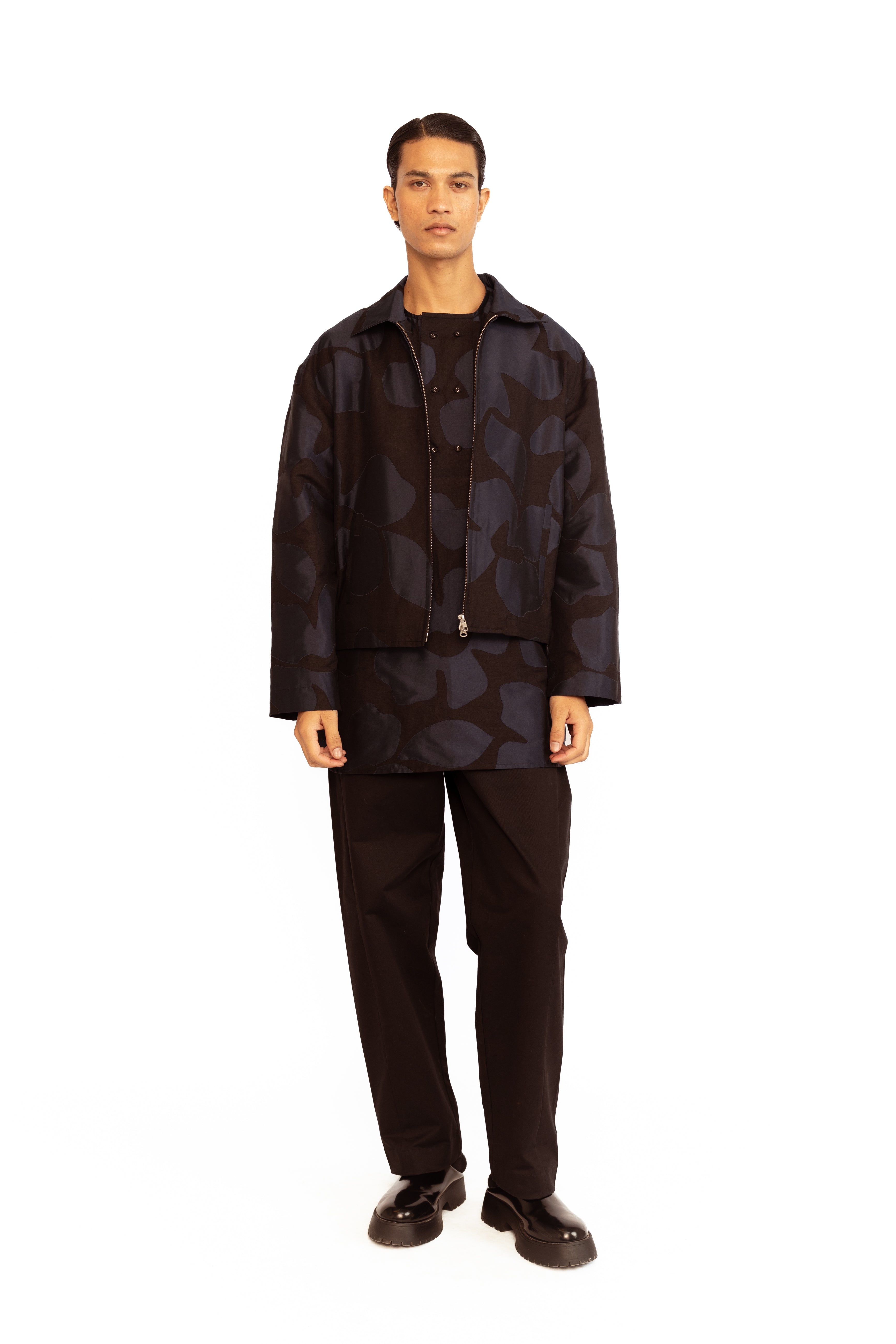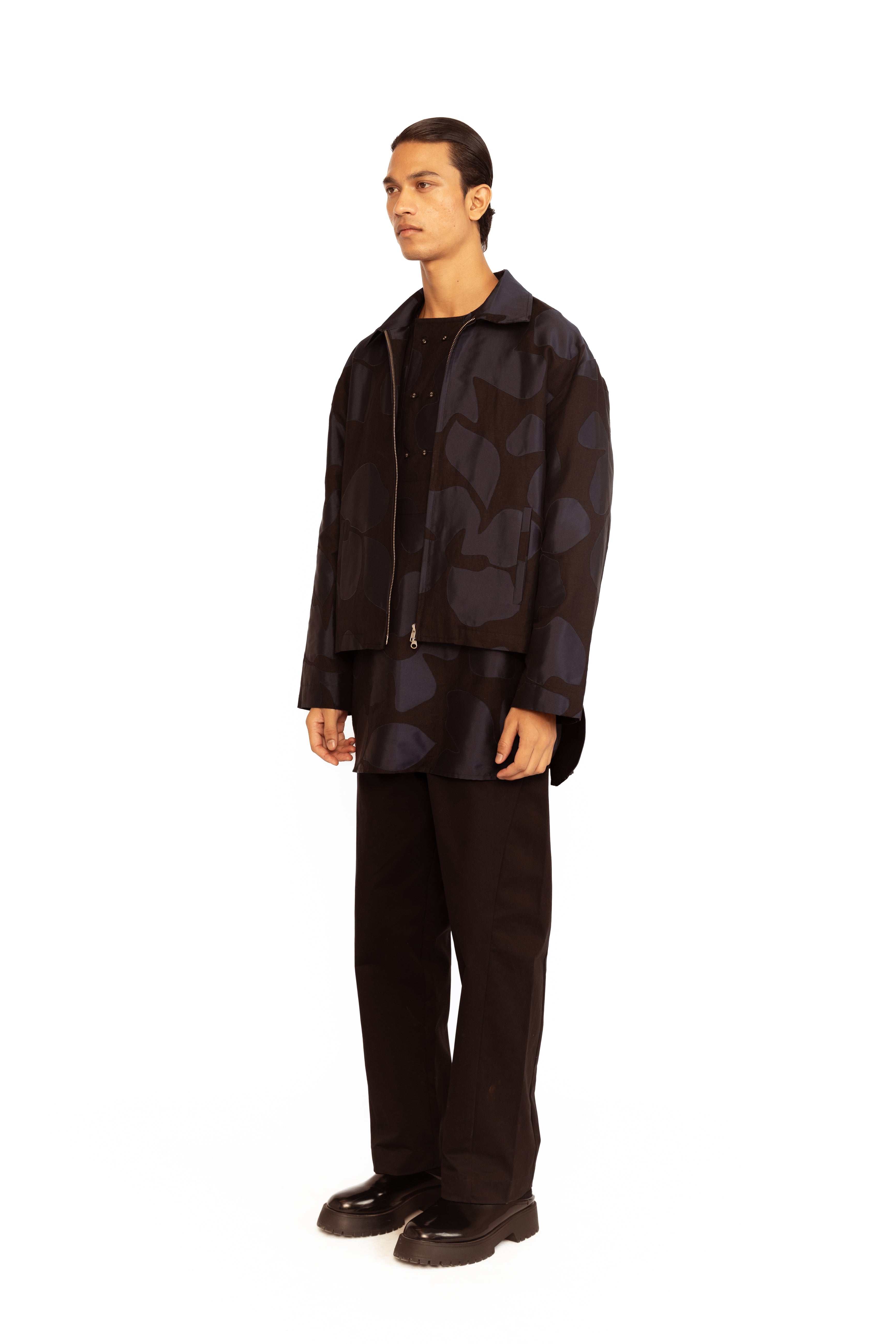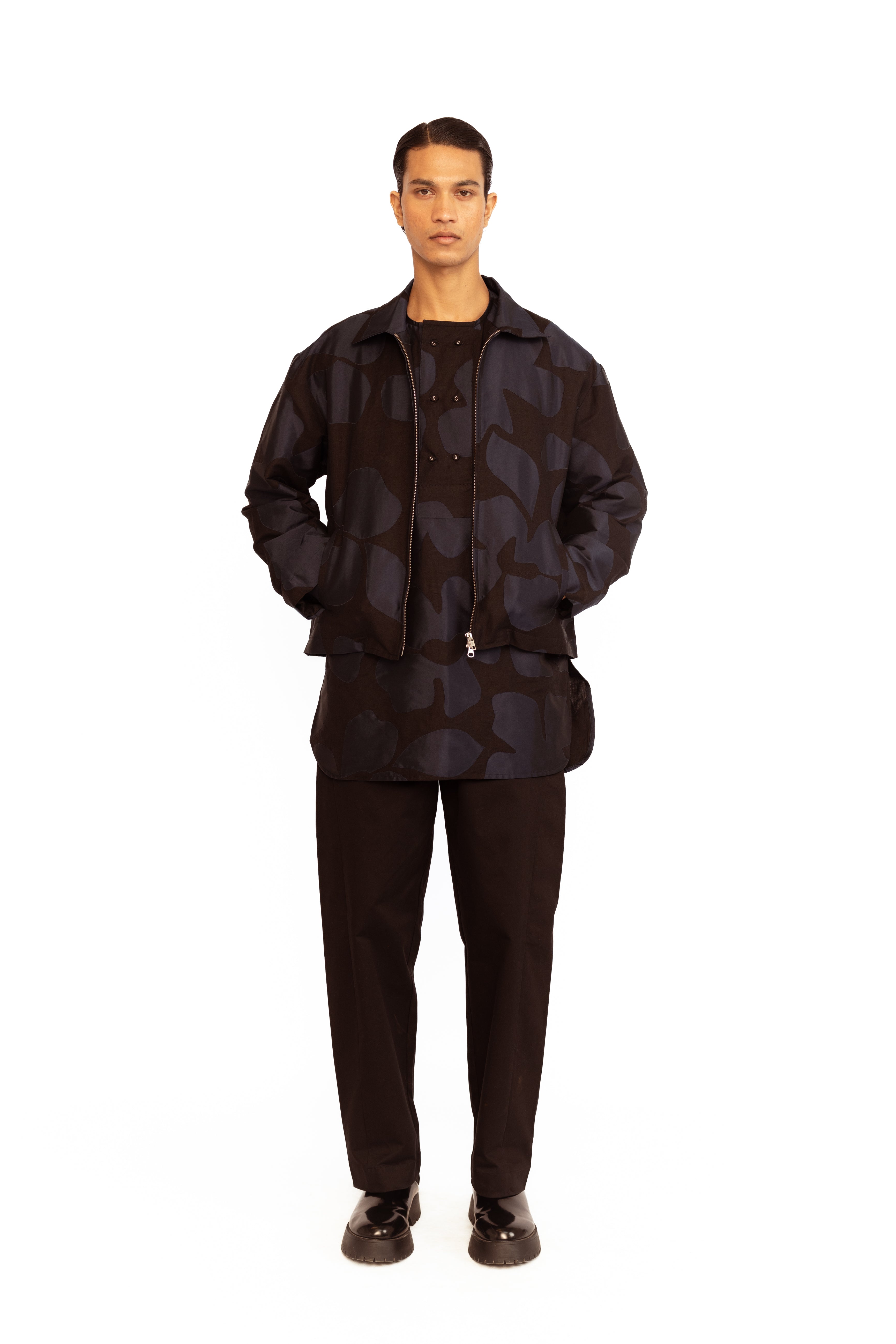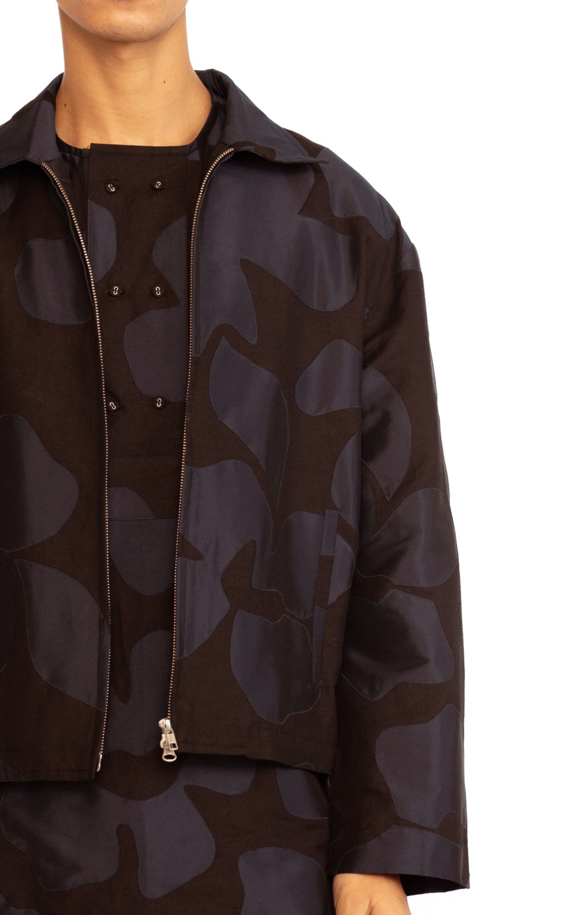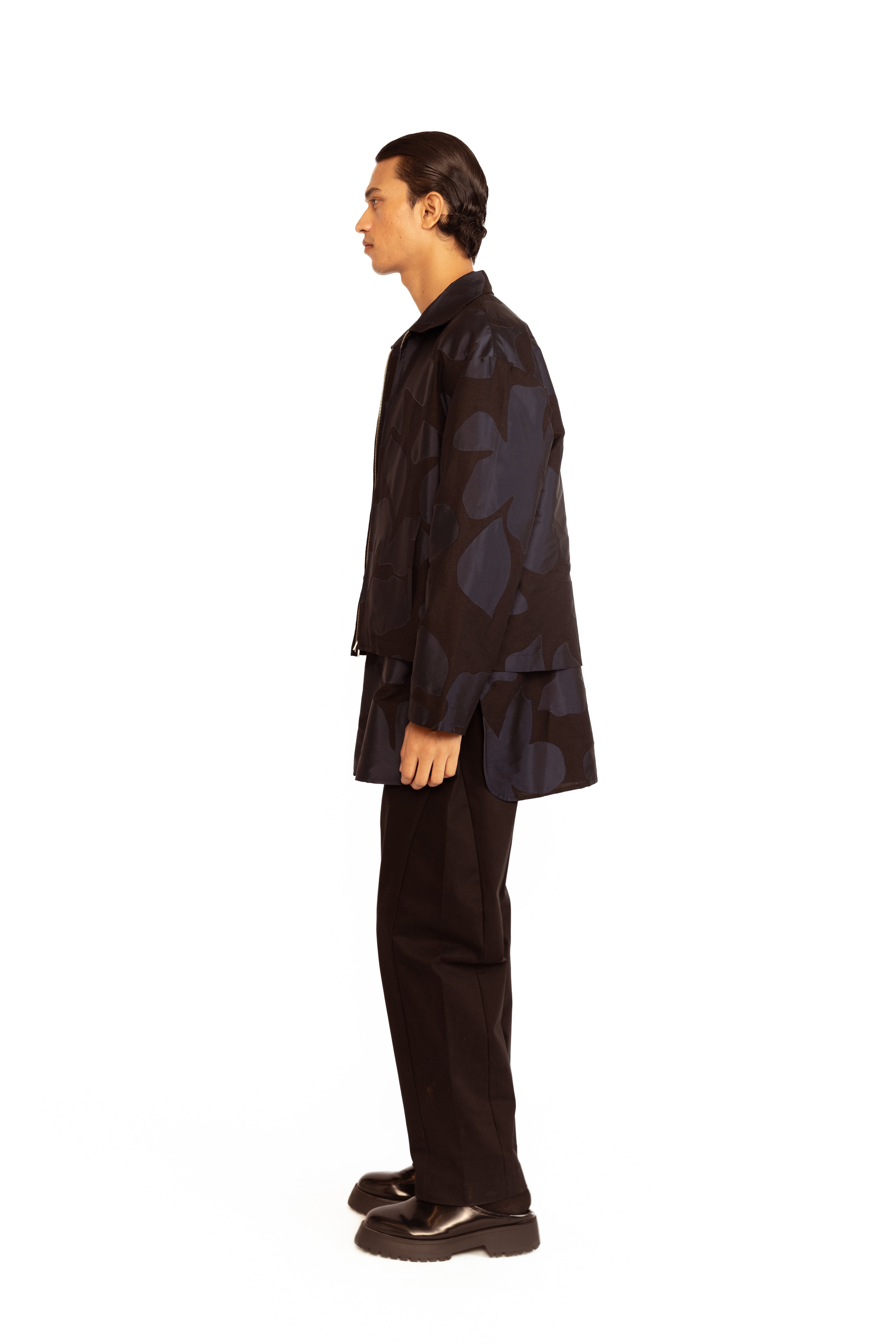 A blend of utility and artistry. This jacket features delicate floral appliqué detailing that adds a touch of femininity to its structured silhouette. Designed with a practical front zip and functional pockets, it strikes the perfect balance between contemporary style and everyday ease.