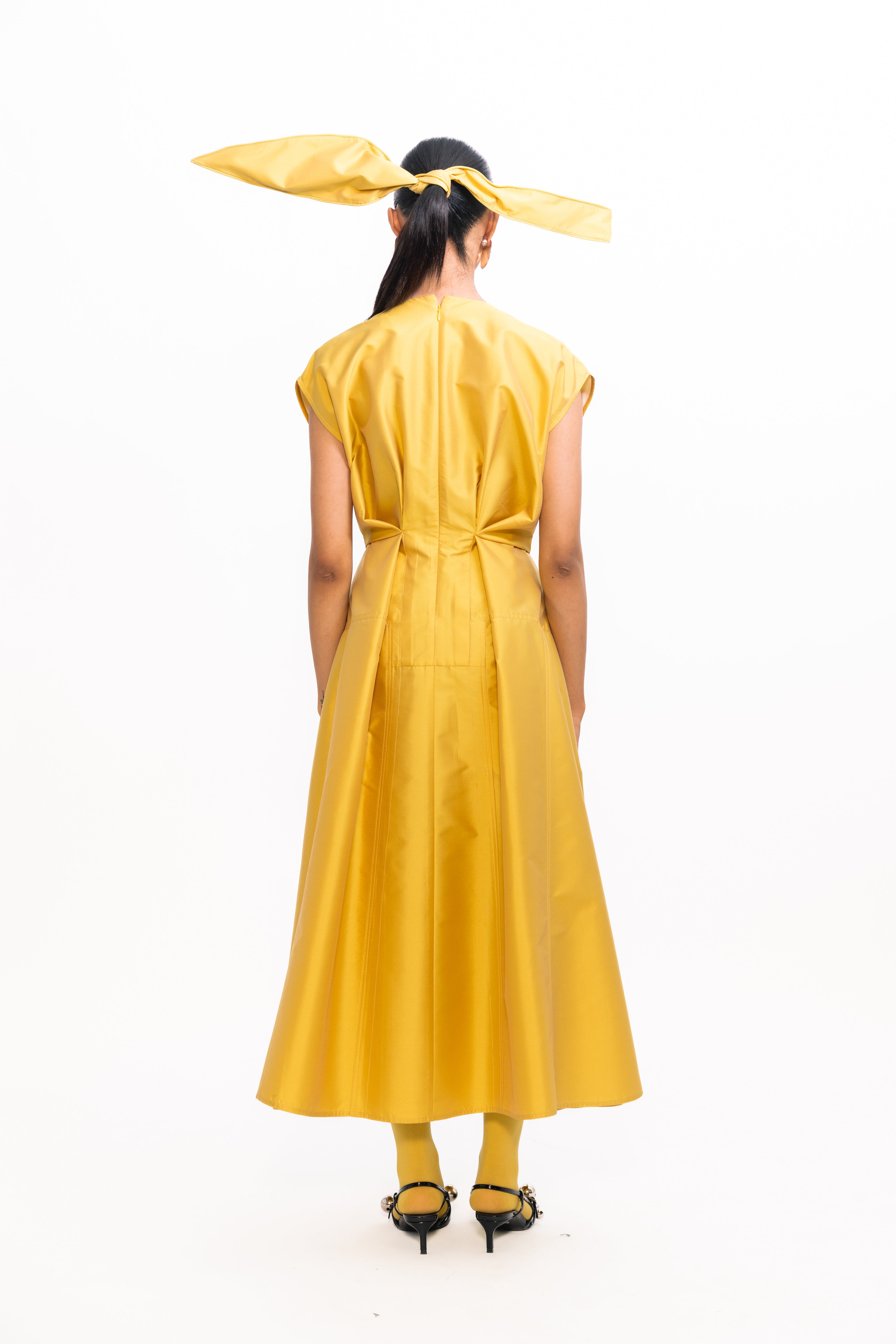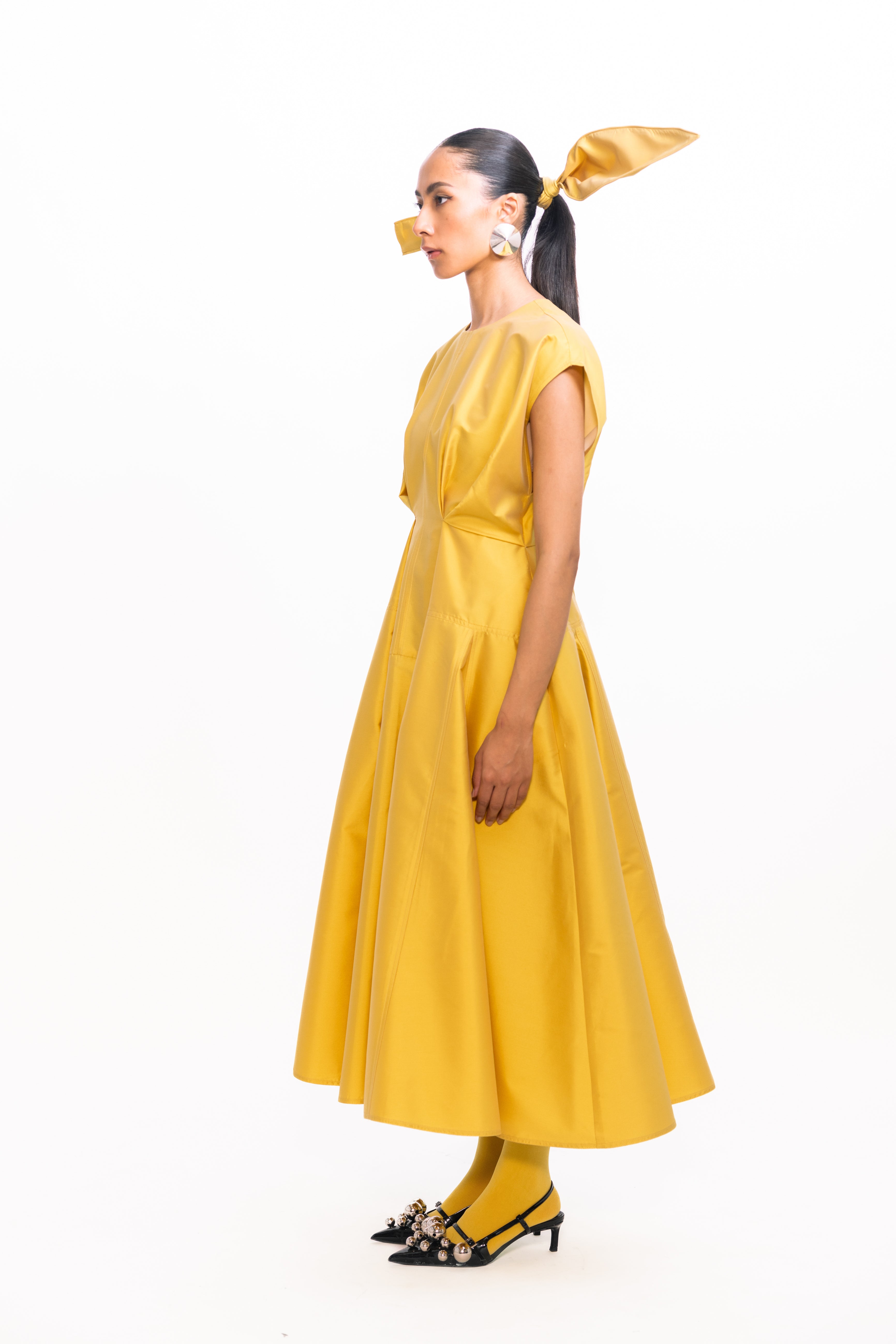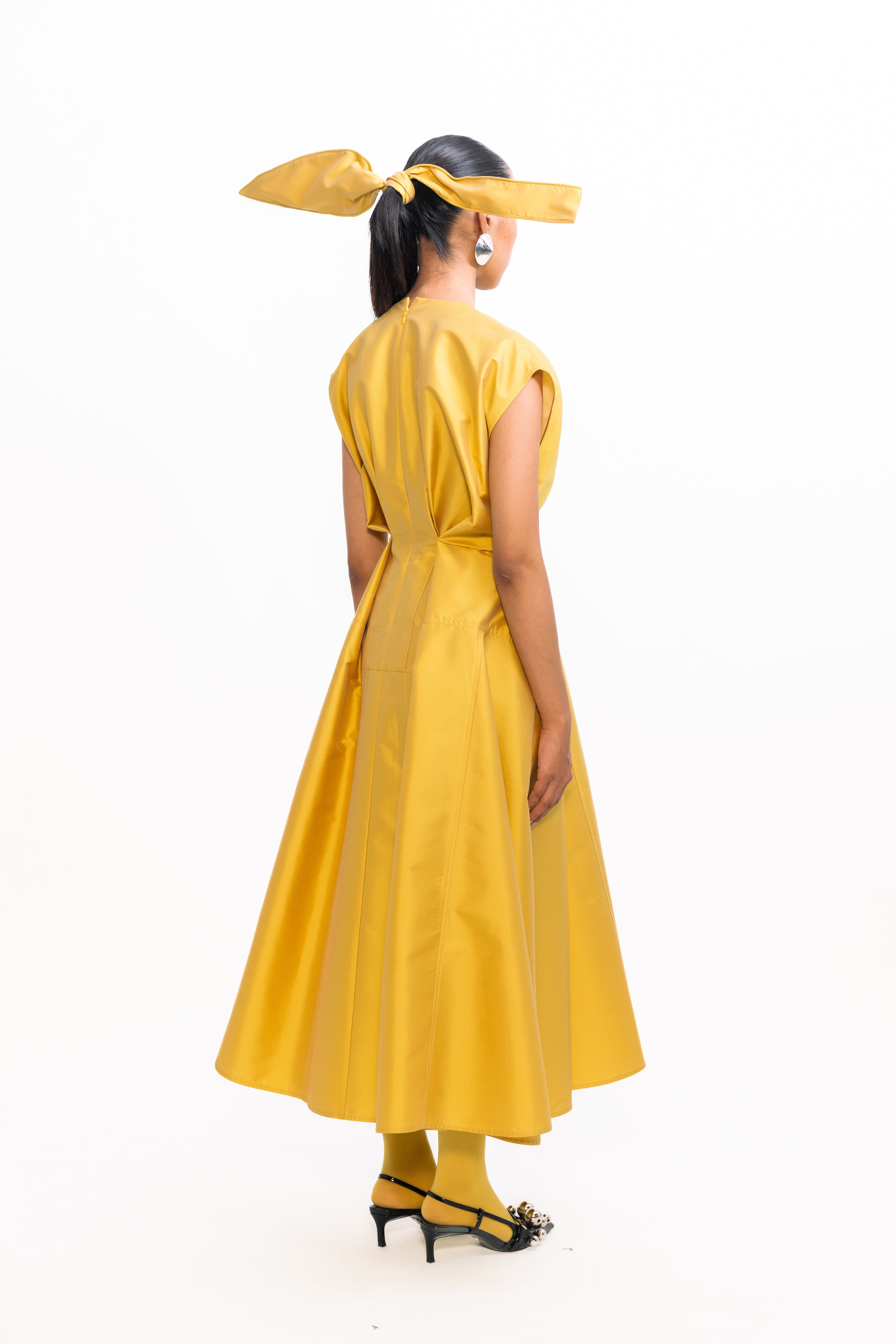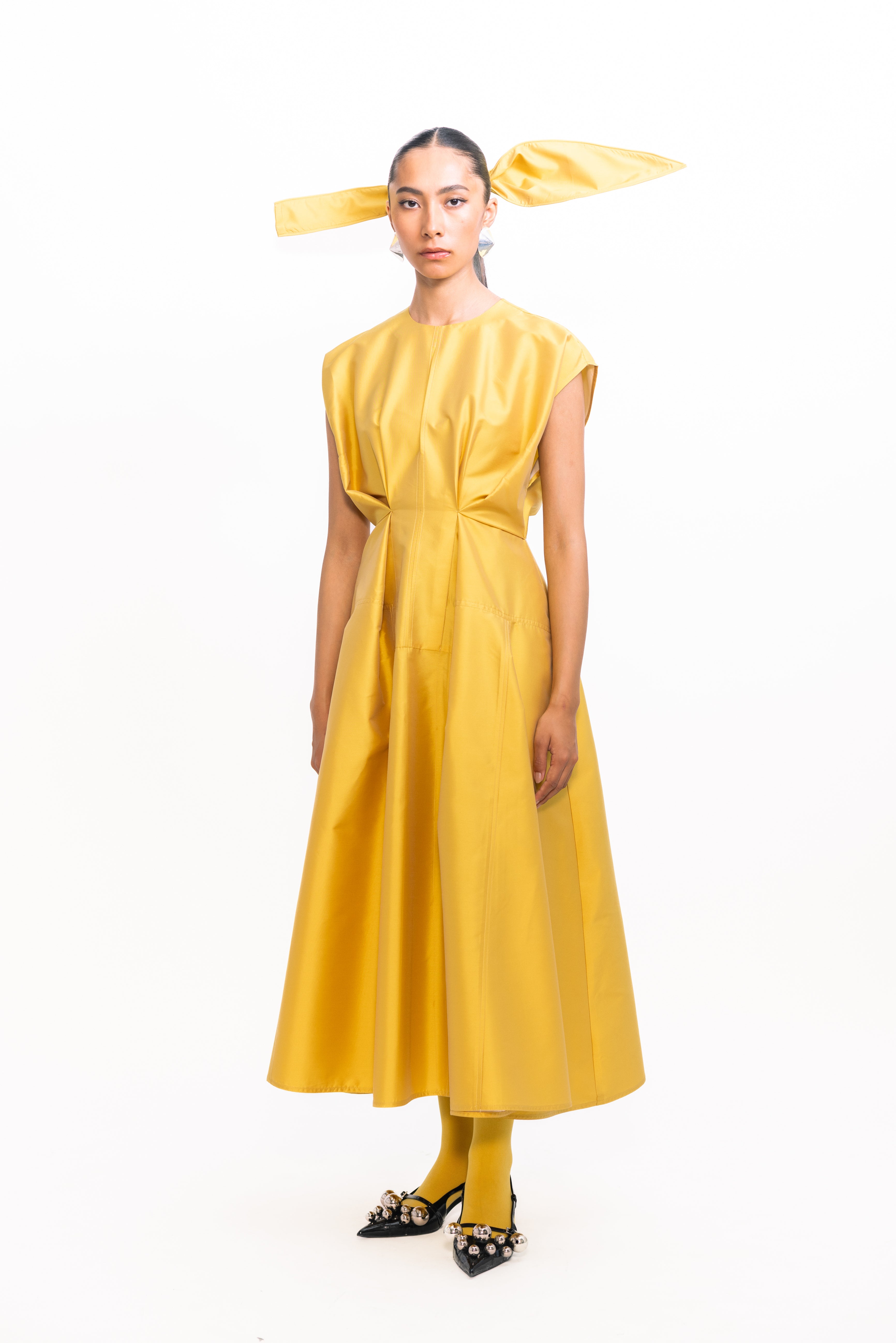 Defined by sharp folds and a sculpted waistline, this piece blends ease with architectural precision. The shoulder structure adds quiet strength, while subtle draping draws the eye inward, enhancing the silhouette without excess. Clean, uninterrupted lines bring focus to form, making it a refined yet powerful wardrobe standout.