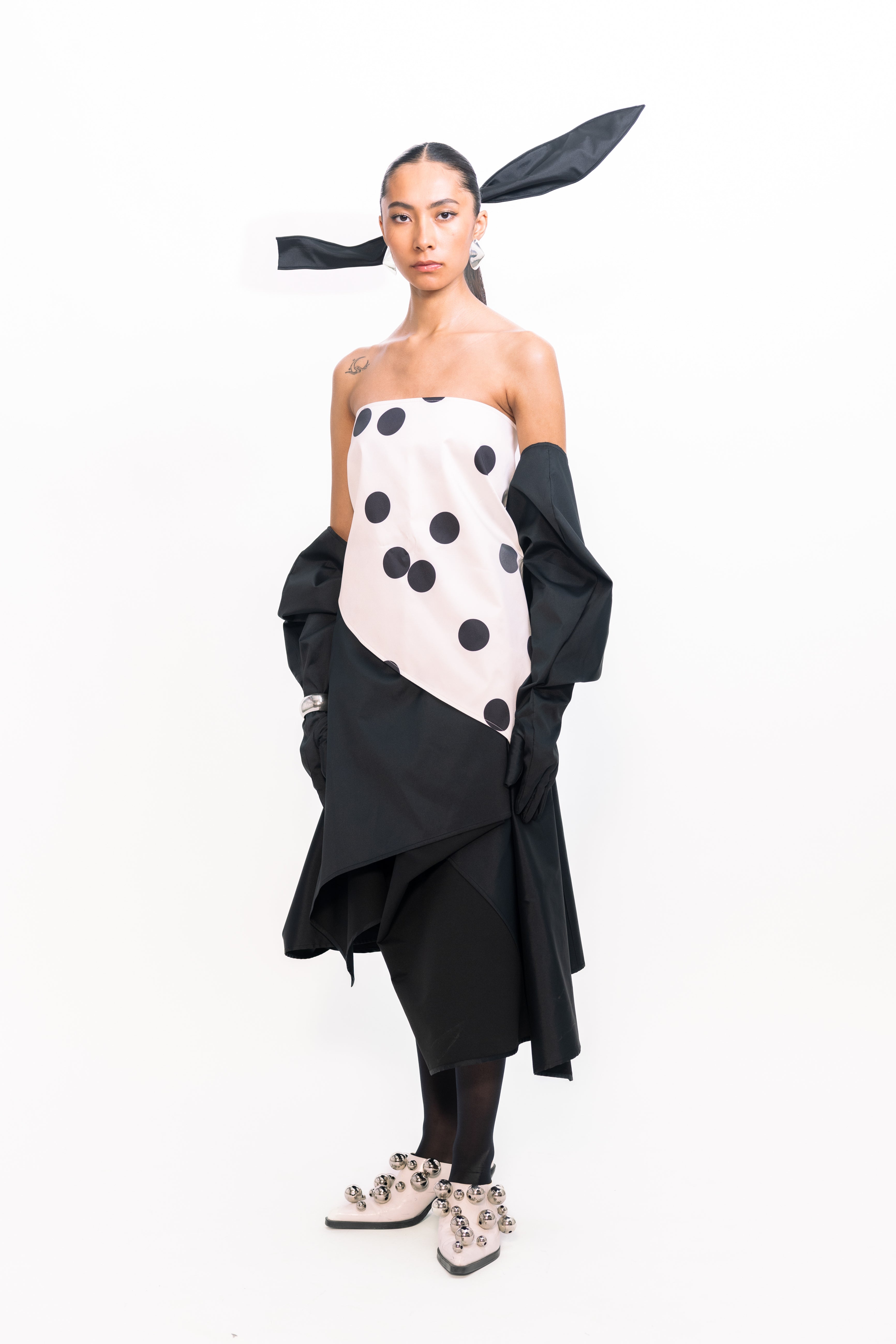 This black skirt makes a statement with its dramatic drape, creating fluid movement and a striking silhouette. Designed to combine elegance with bold style, it’s perfect for evening occasions, formal events, or any look that calls for a touch of drama.