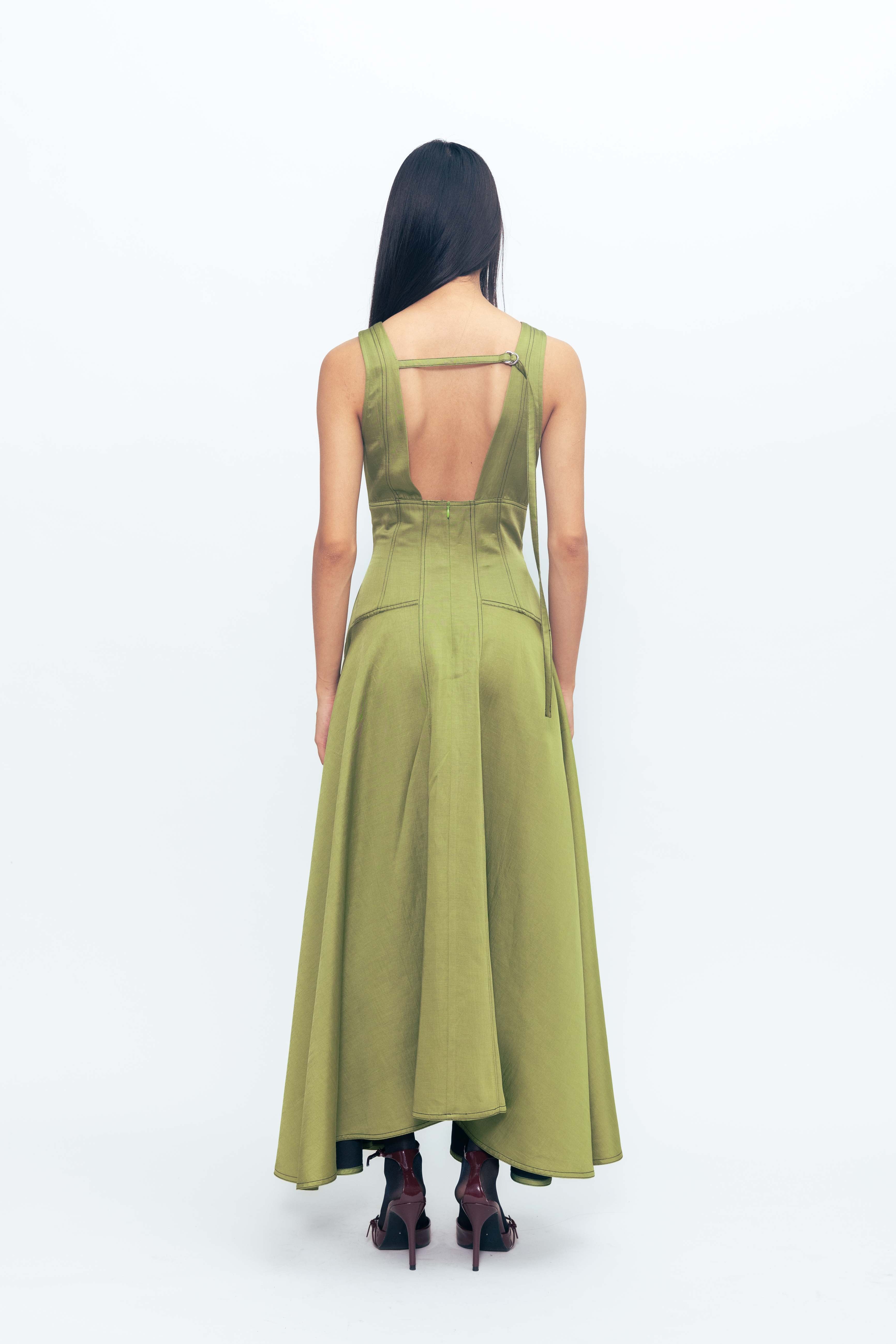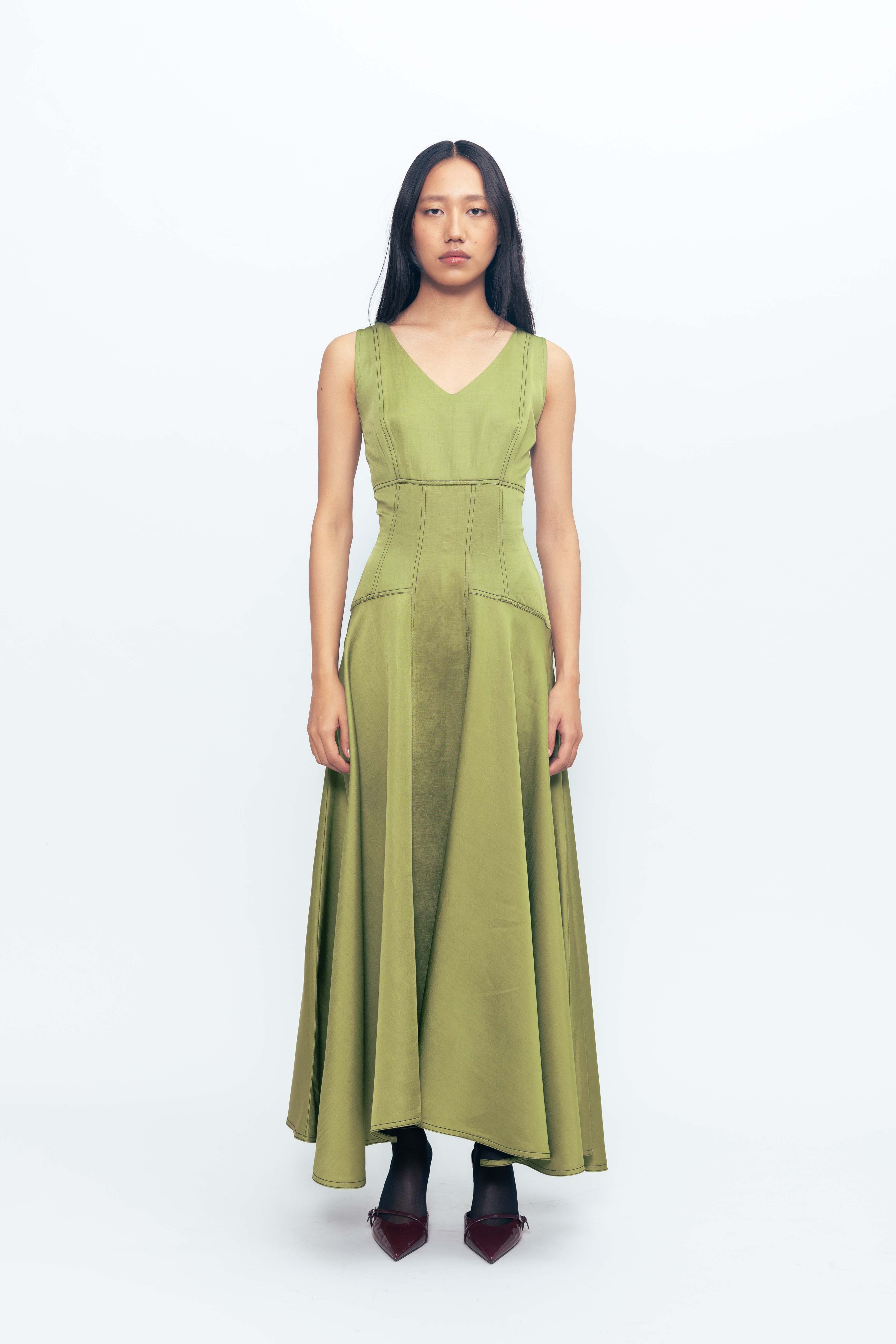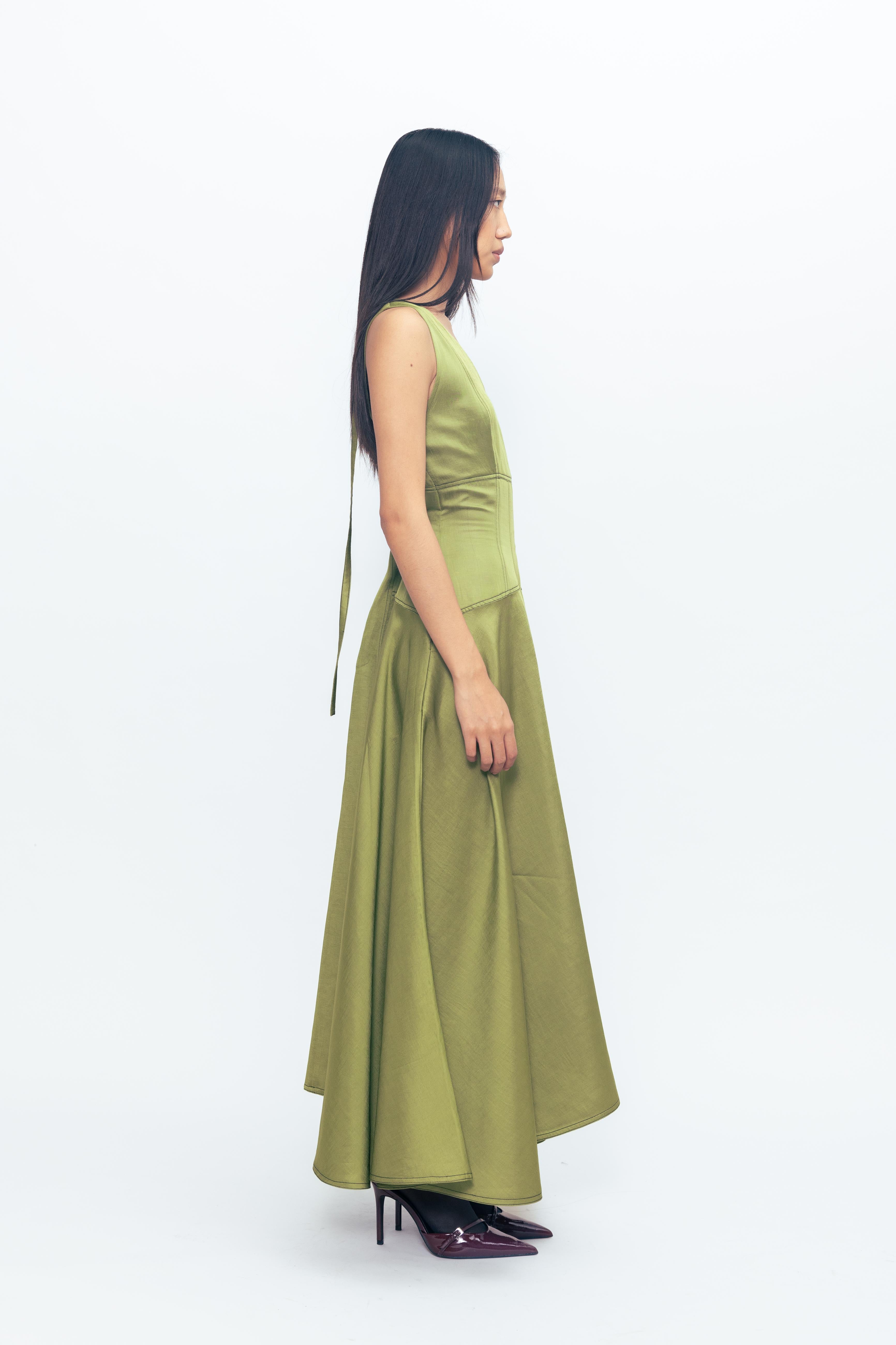The Flared Dress with Corseted Detail combines soft movement with a structured edge. Featuring a fitted corset-style bodice that defines the waist, it flows into a flared skirt for a graceful silhouette. Crafted for both comfort and shape, this dress blends romantic charm with contemporary tailoring. Perfect for occasions that call for effortless elegance.