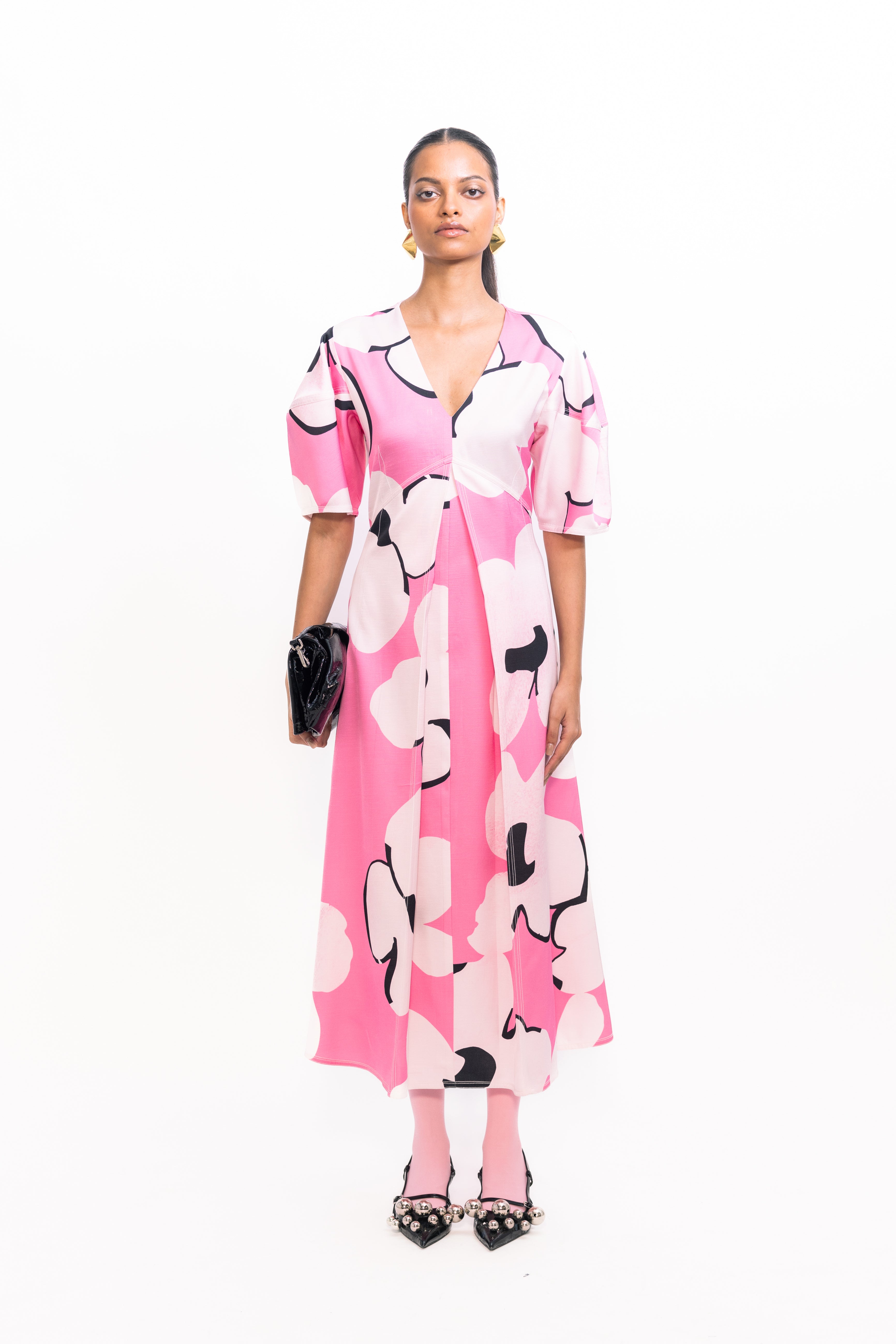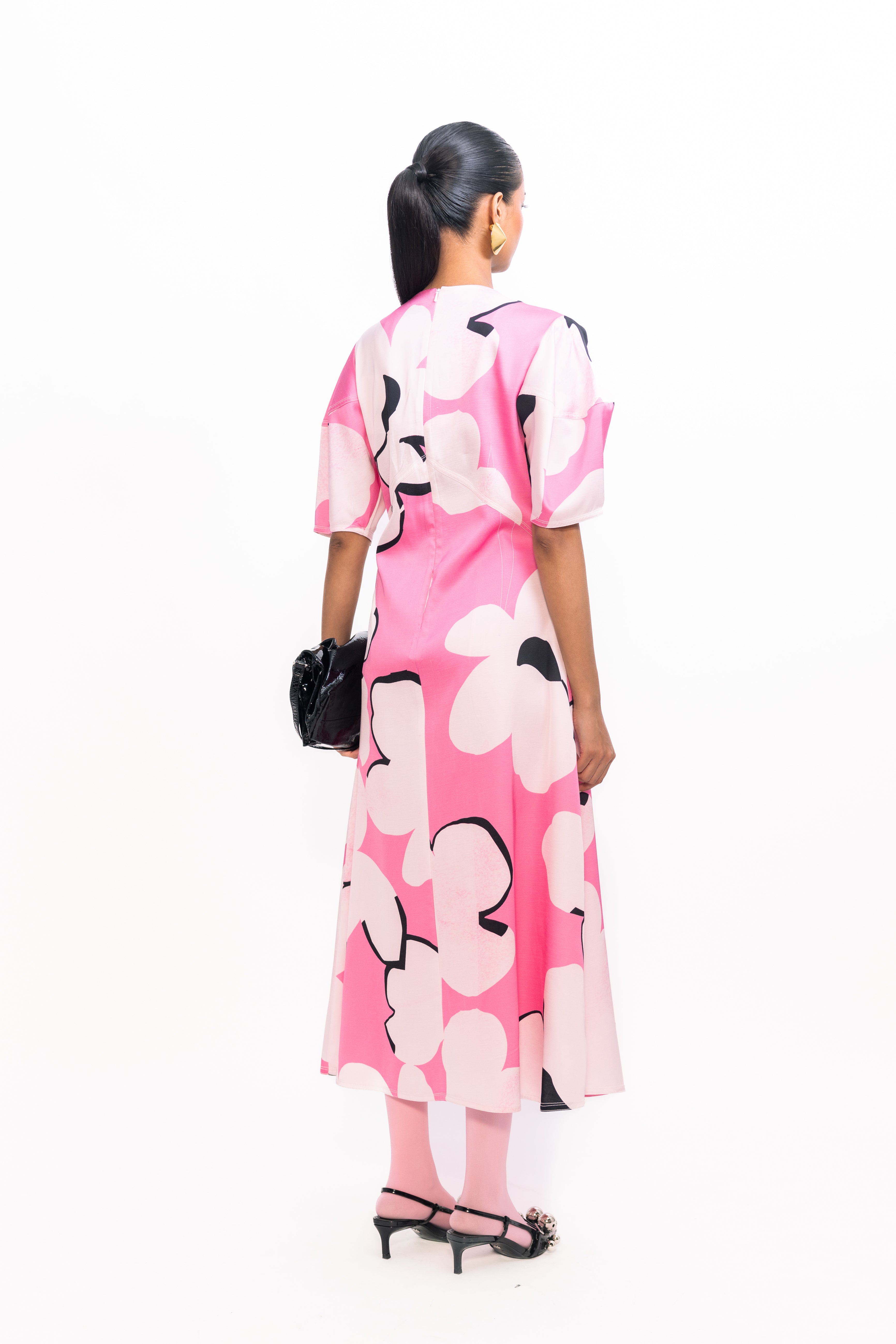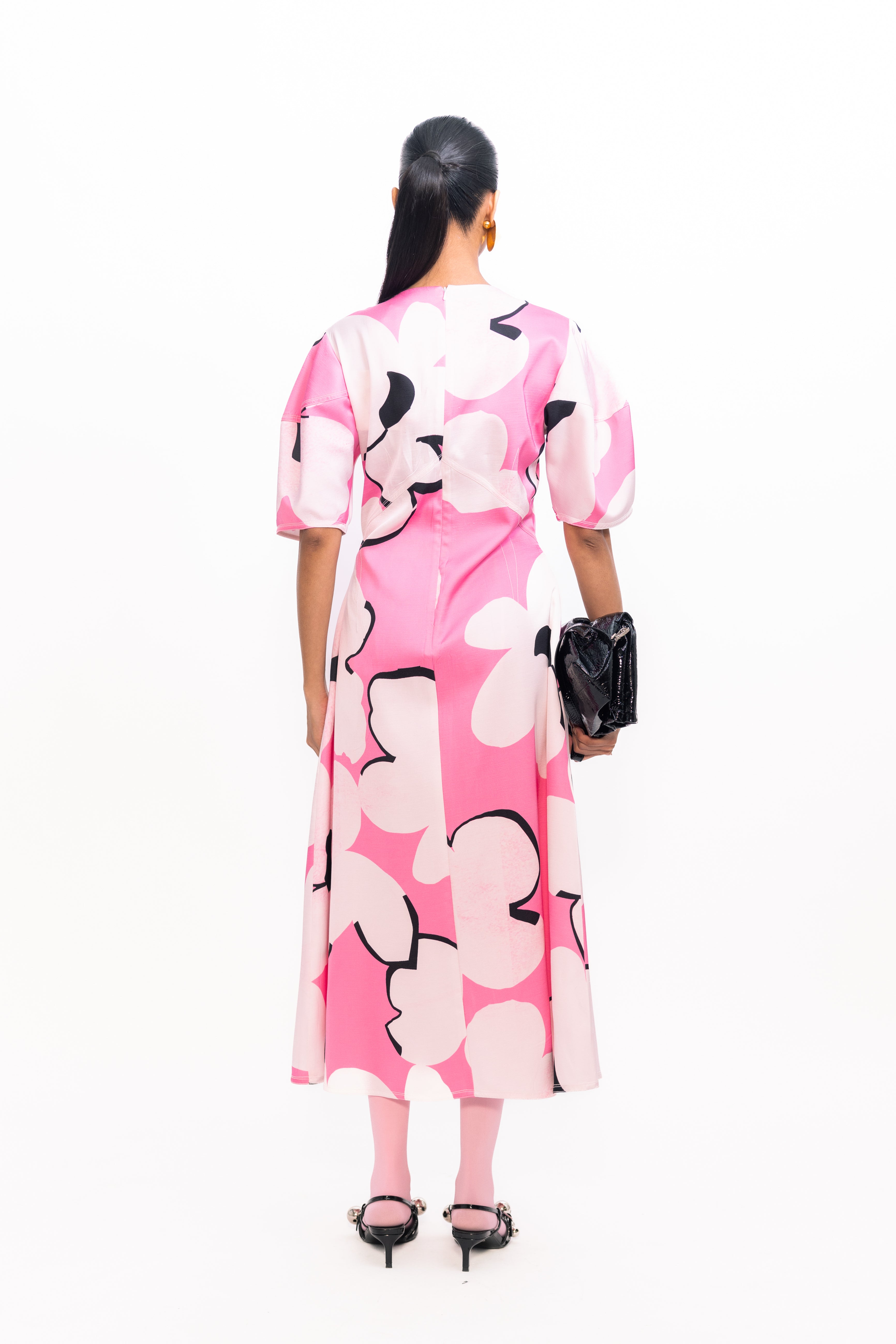 Make a bold statement in this fit-and-flare floral printed dress, featuring voluminous balloon sleeves for a soft yet dramatic silhouette. The flared skirt creates graceful movement, perfect for both daytime outings and evening gatherings.