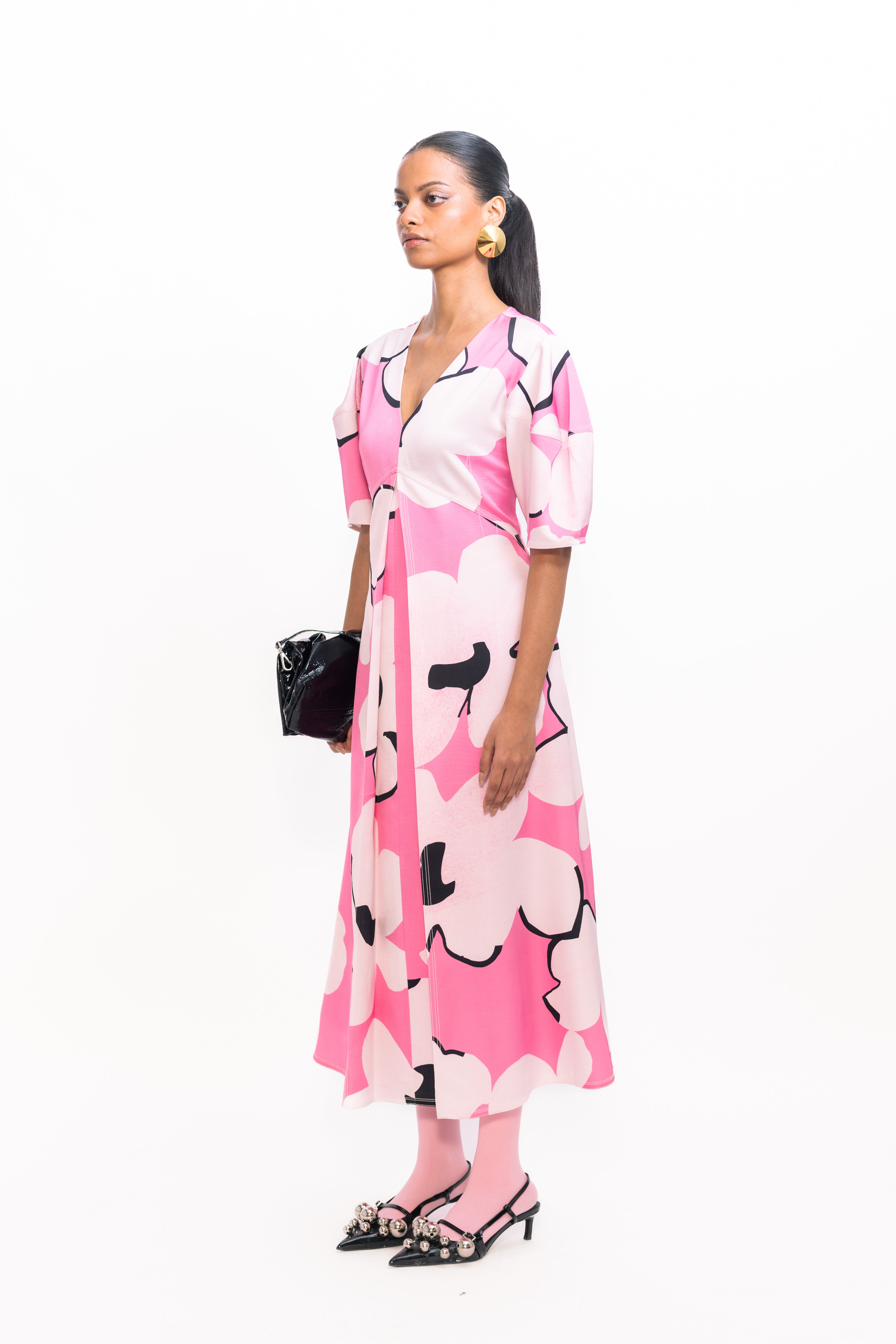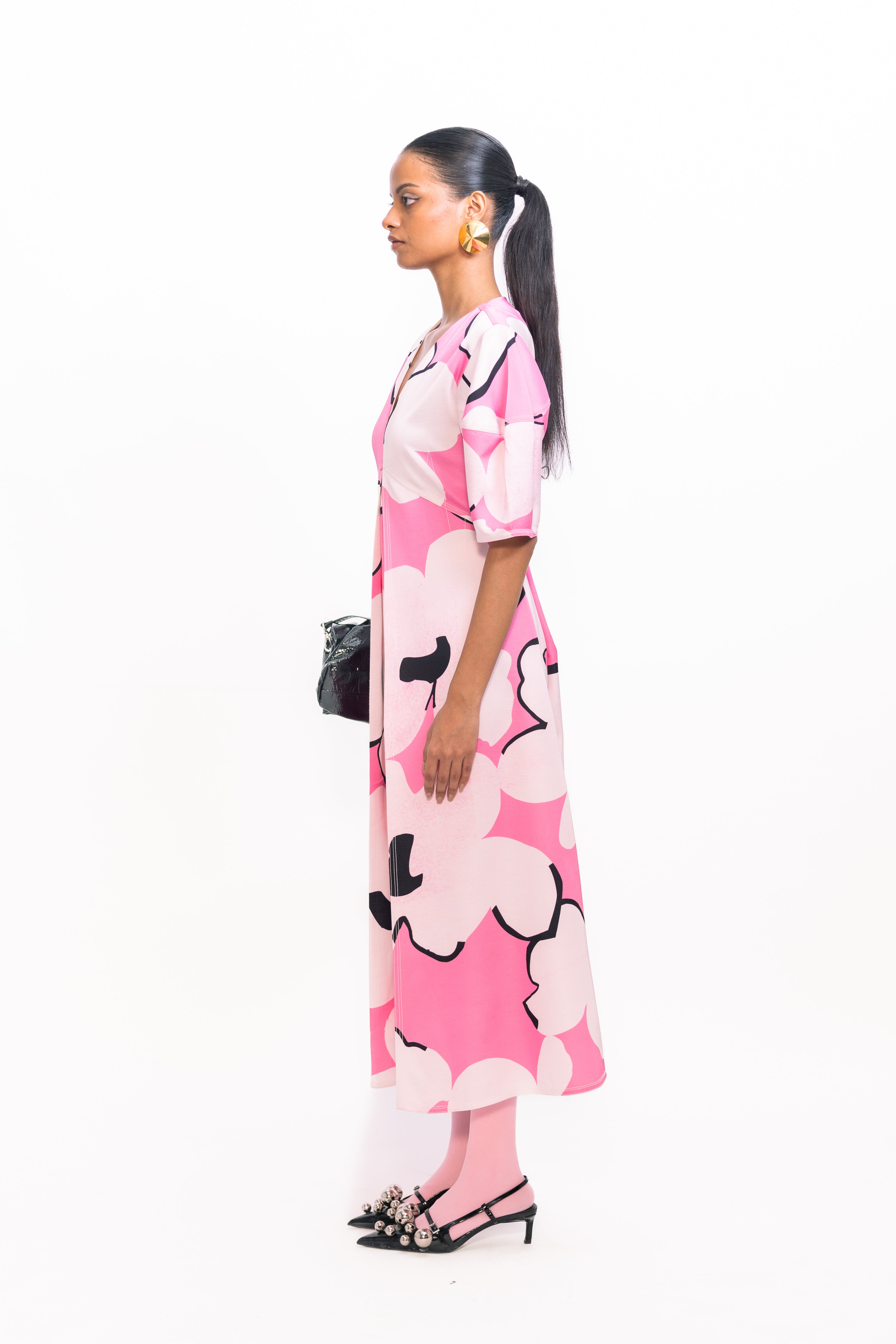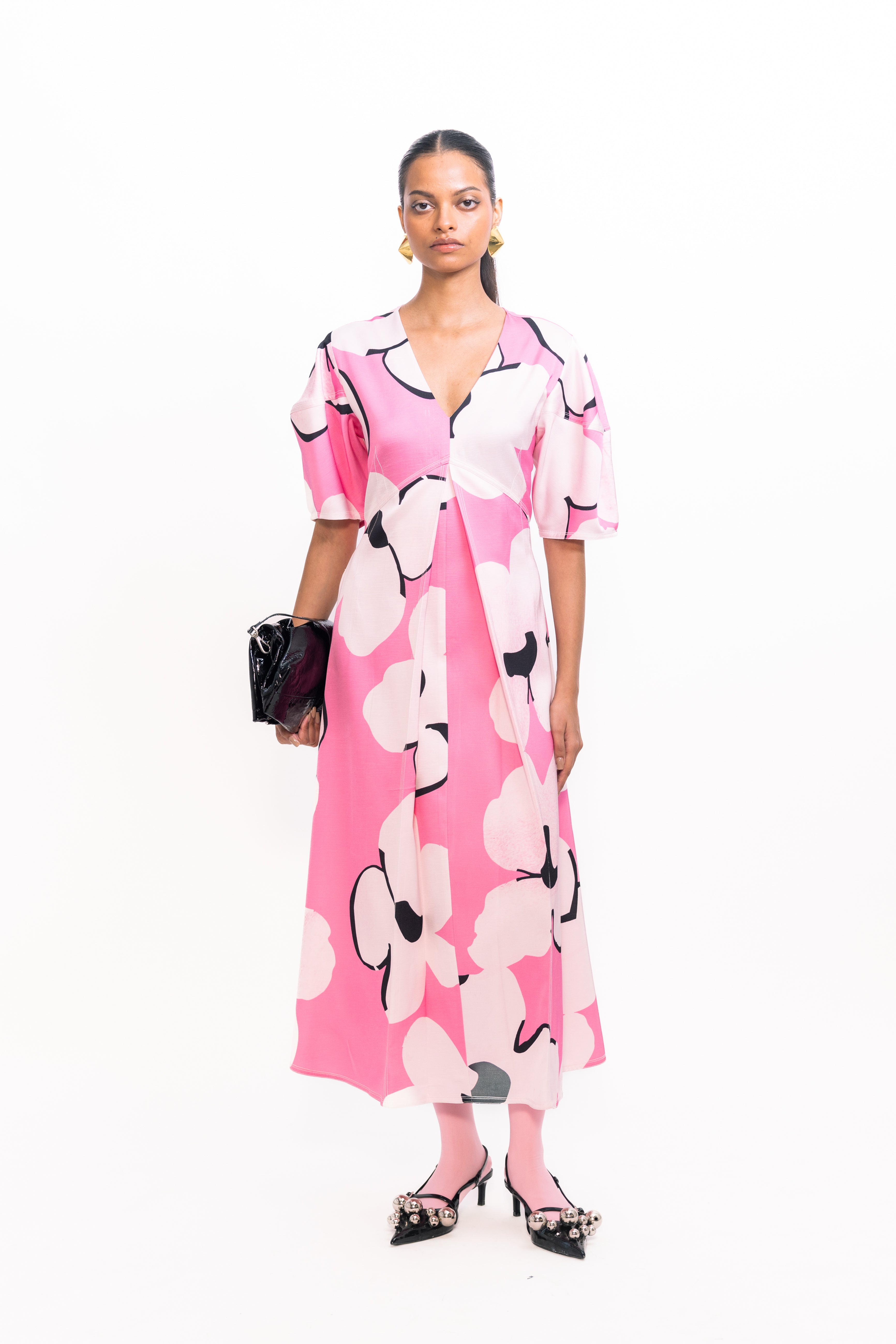 Make a bold statement in this fit-and-flare floral printed dress, featuring voluminous balloon sleeves for a soft yet dramatic silhouette. The flared skirt creates graceful movement, perfect for both daytime outings and evening gatherings.