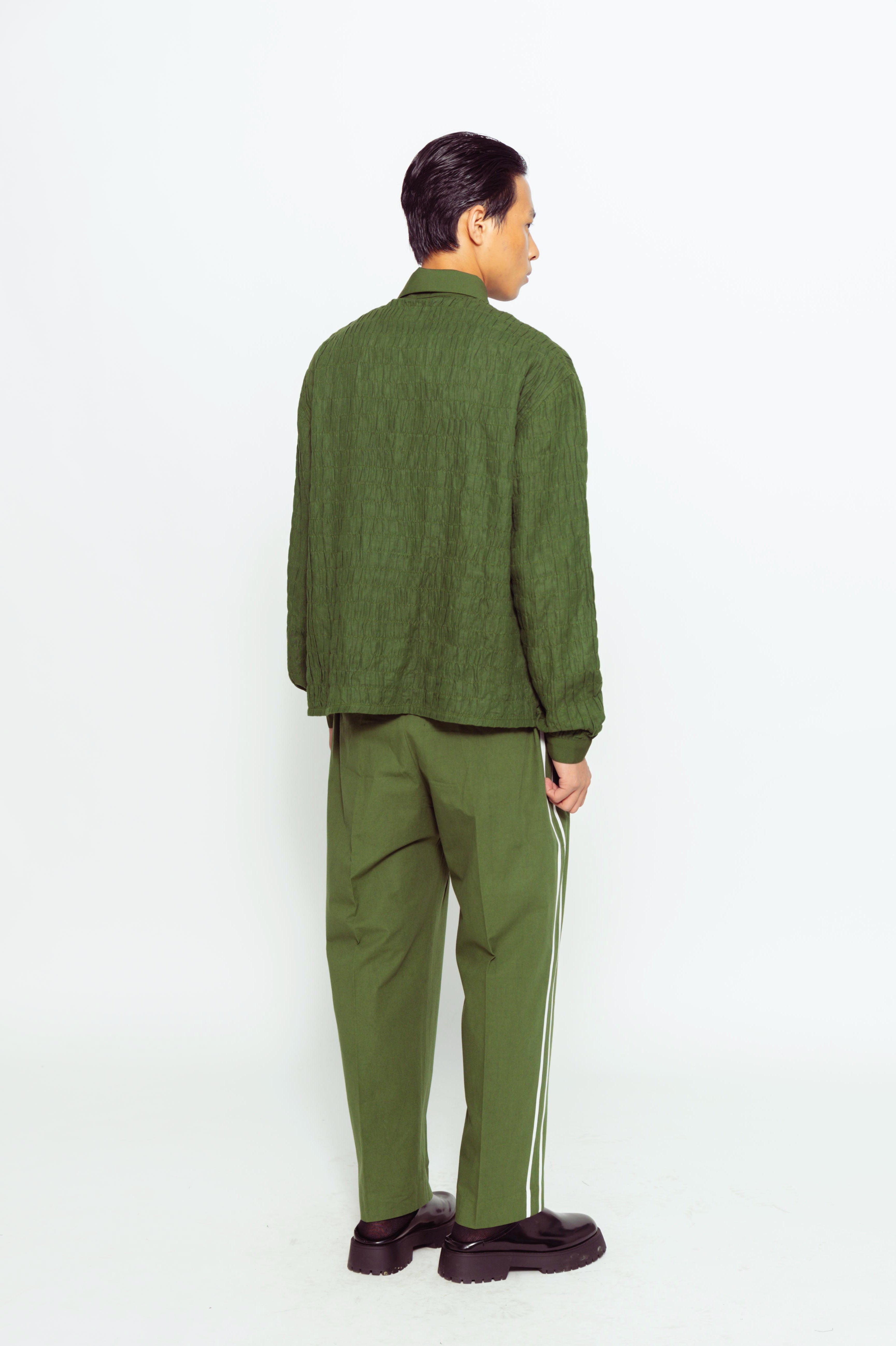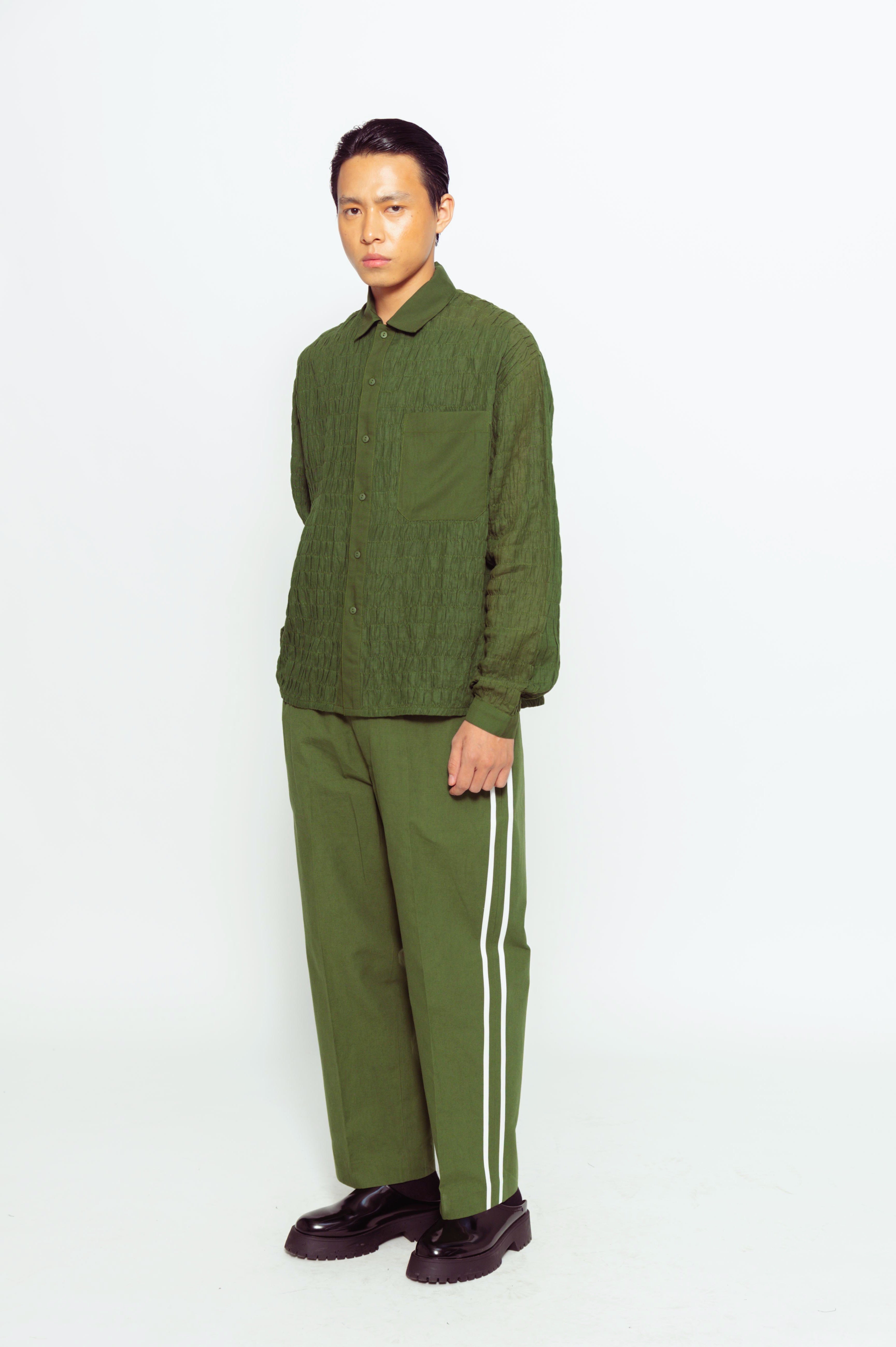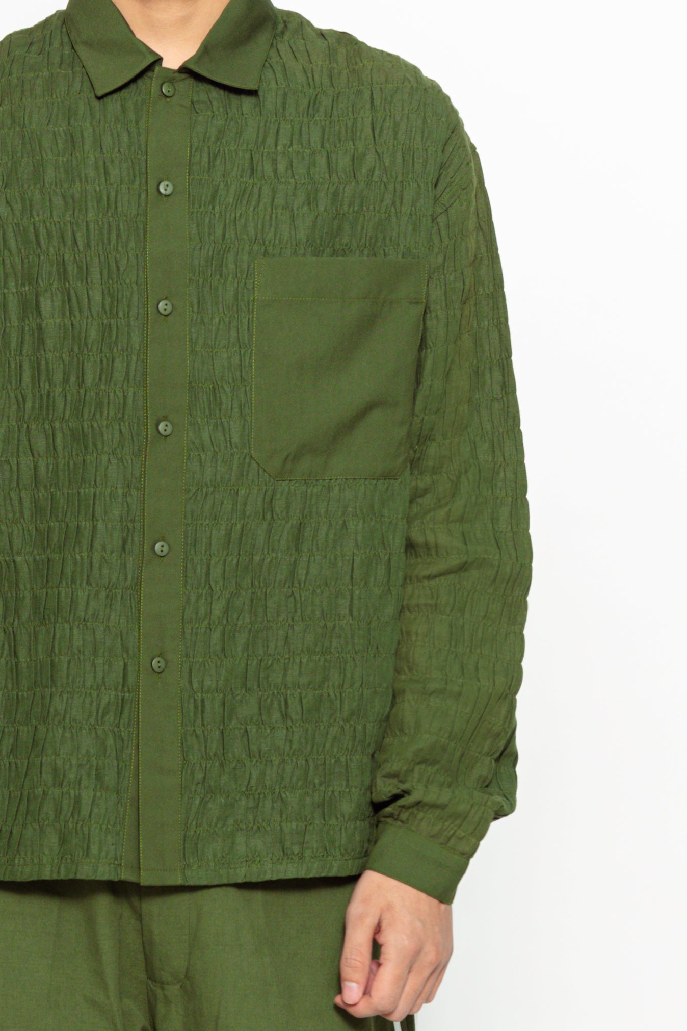 This men's handloom linen full-sleeve shirt with shirring detail offers textured gathers for a stylish, comfortable, and unique look.