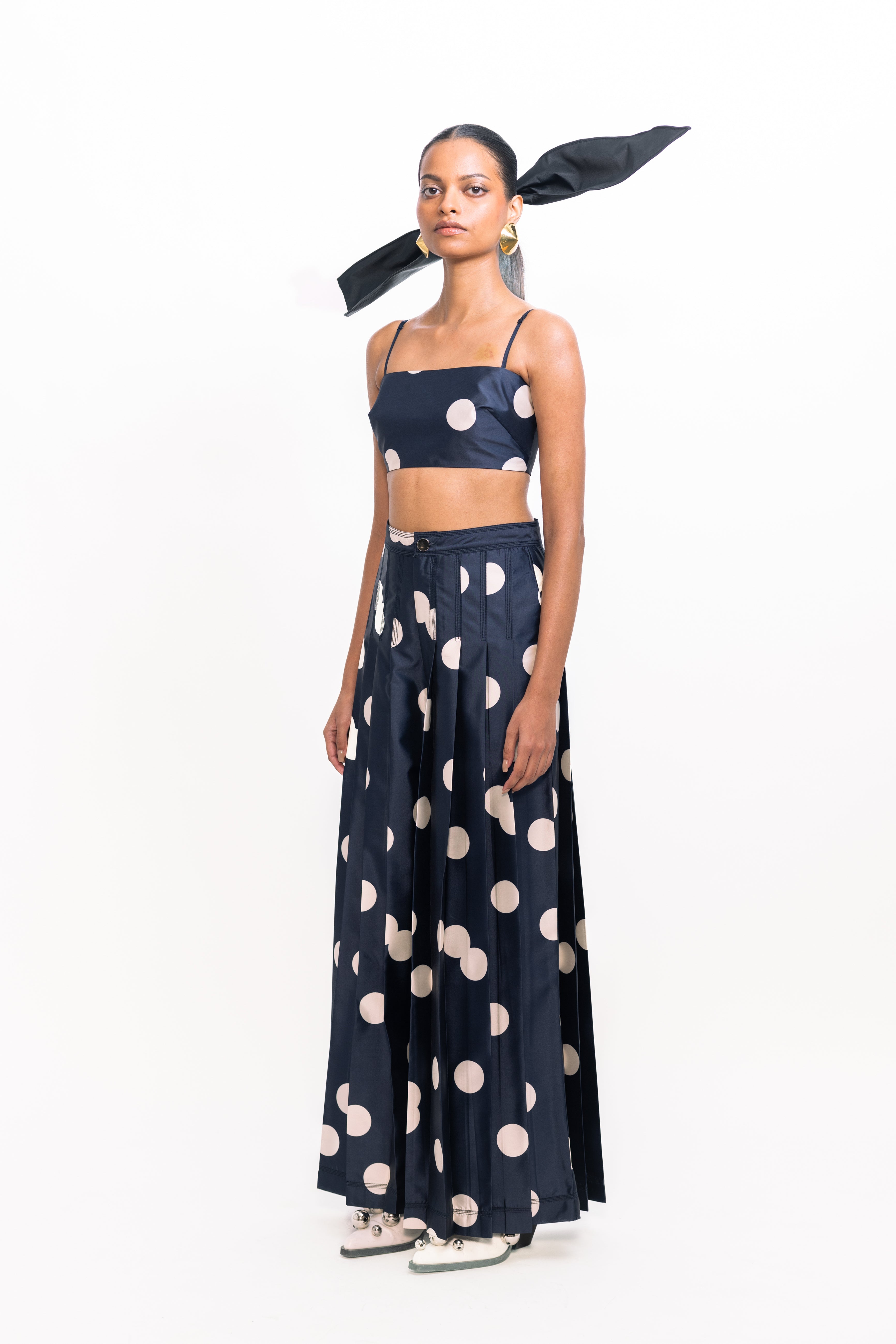 Color : Navy with Ivory Polka