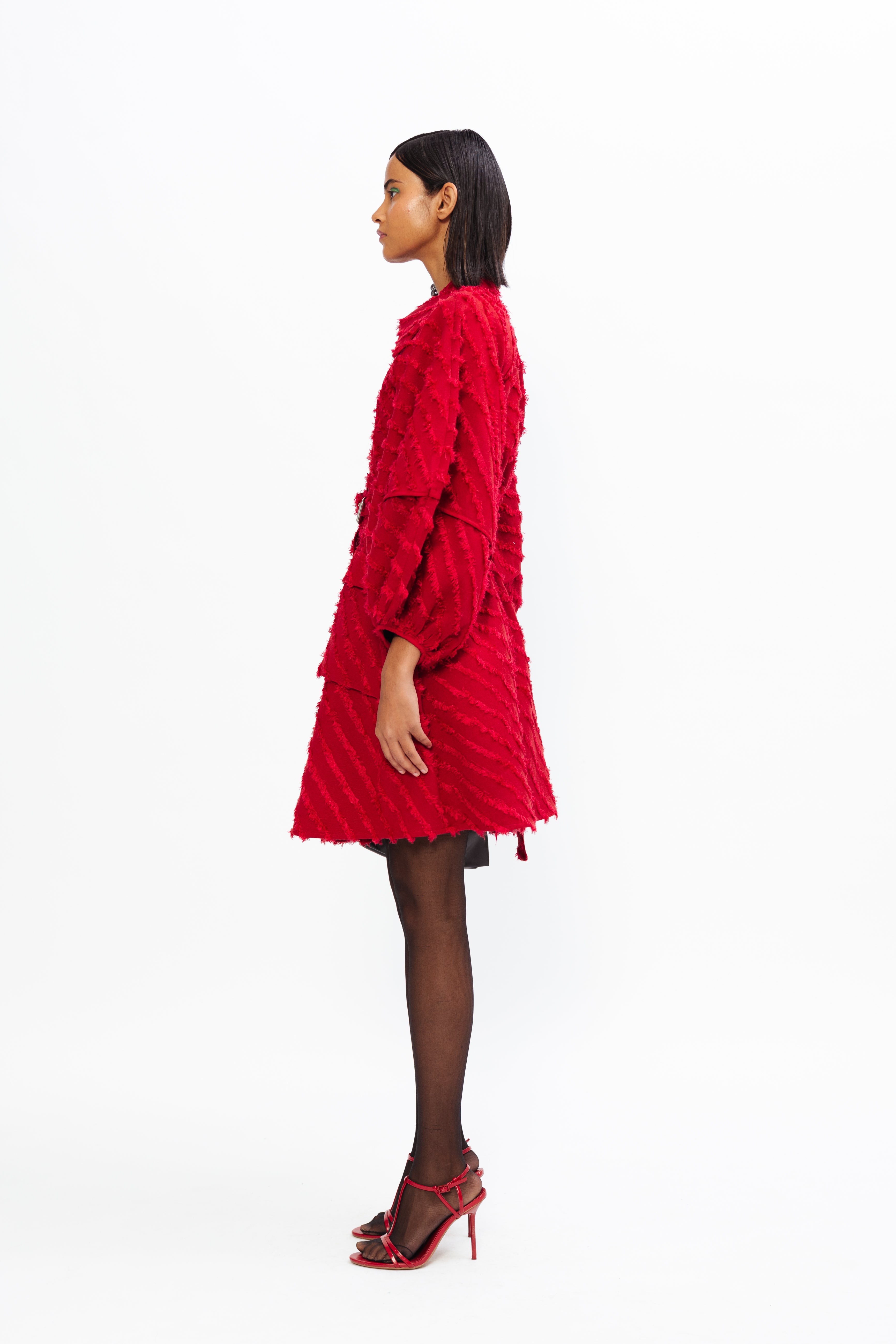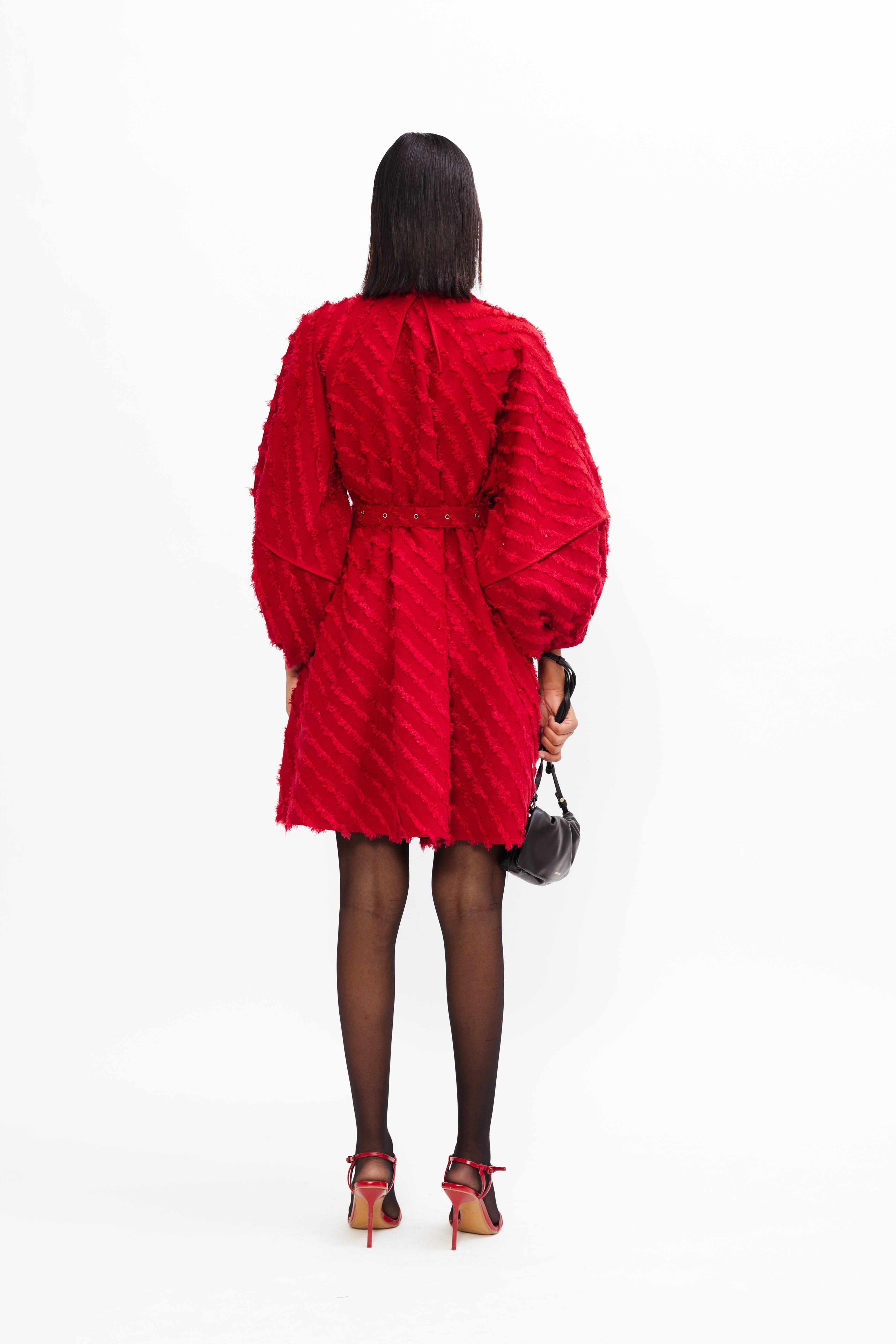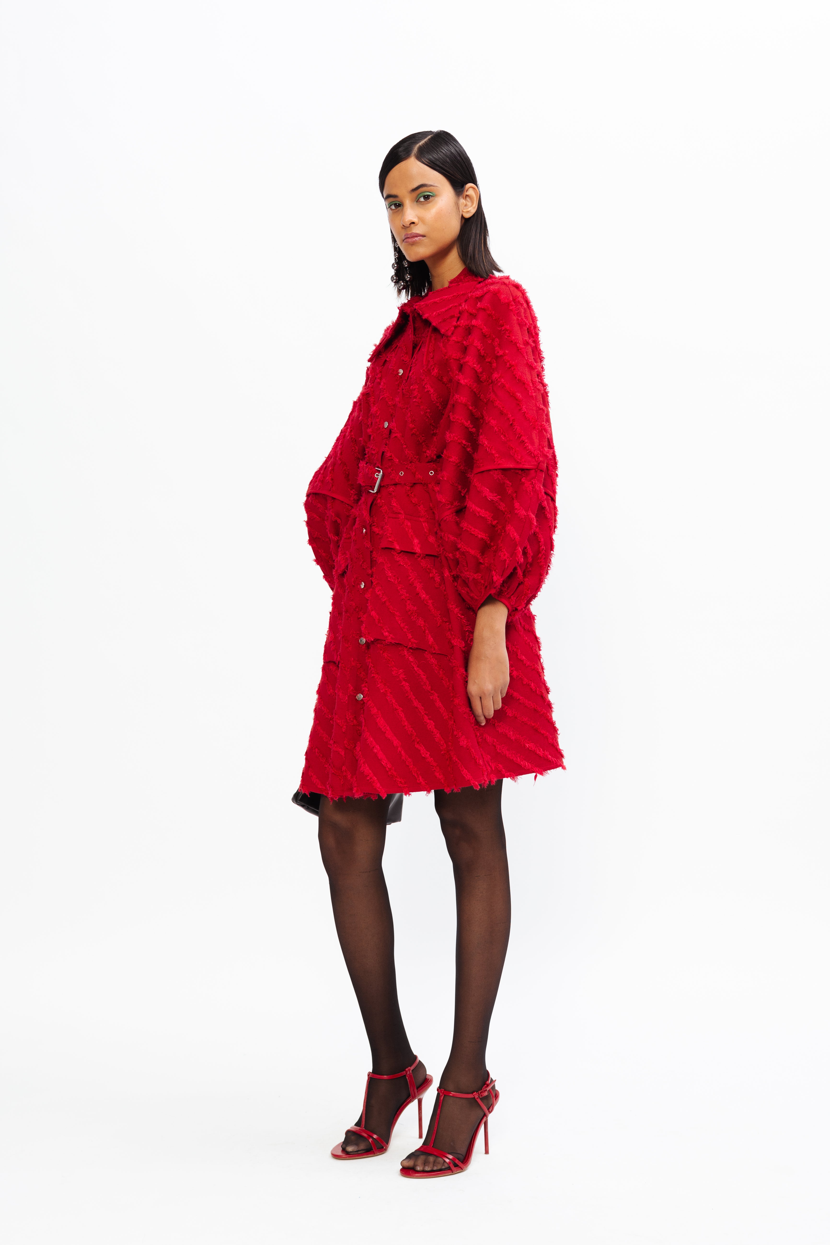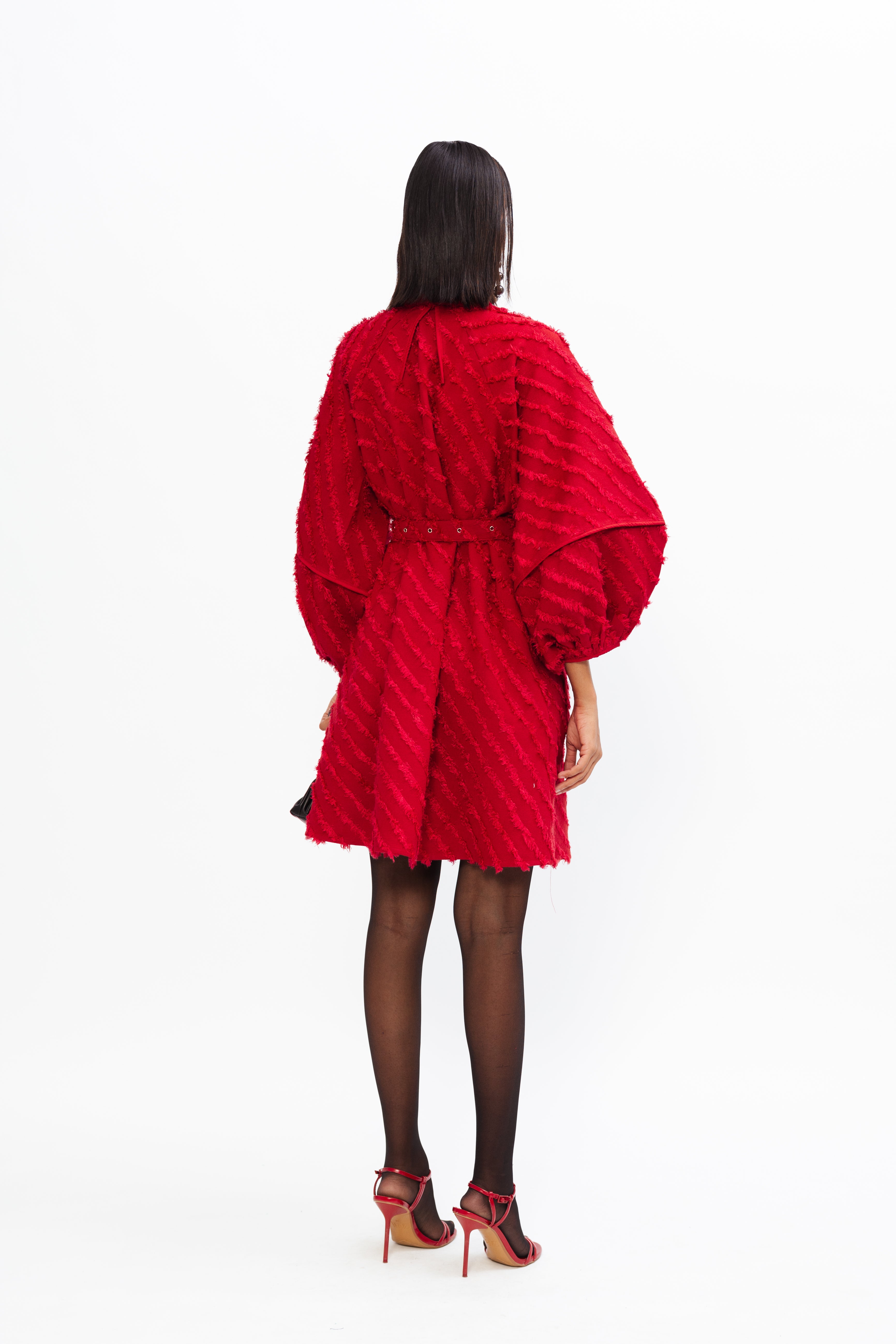 A sophisticated trench dress designed for the winter season, this piece reimagines a classic silhouette with a modern twist. The billowy sleeves add a touch of drama and elegance, while the matching belt cinches the waist for a flattering fit. Versatile and timeless, it’s a refined wardrobe staple for effortless winter dressing.