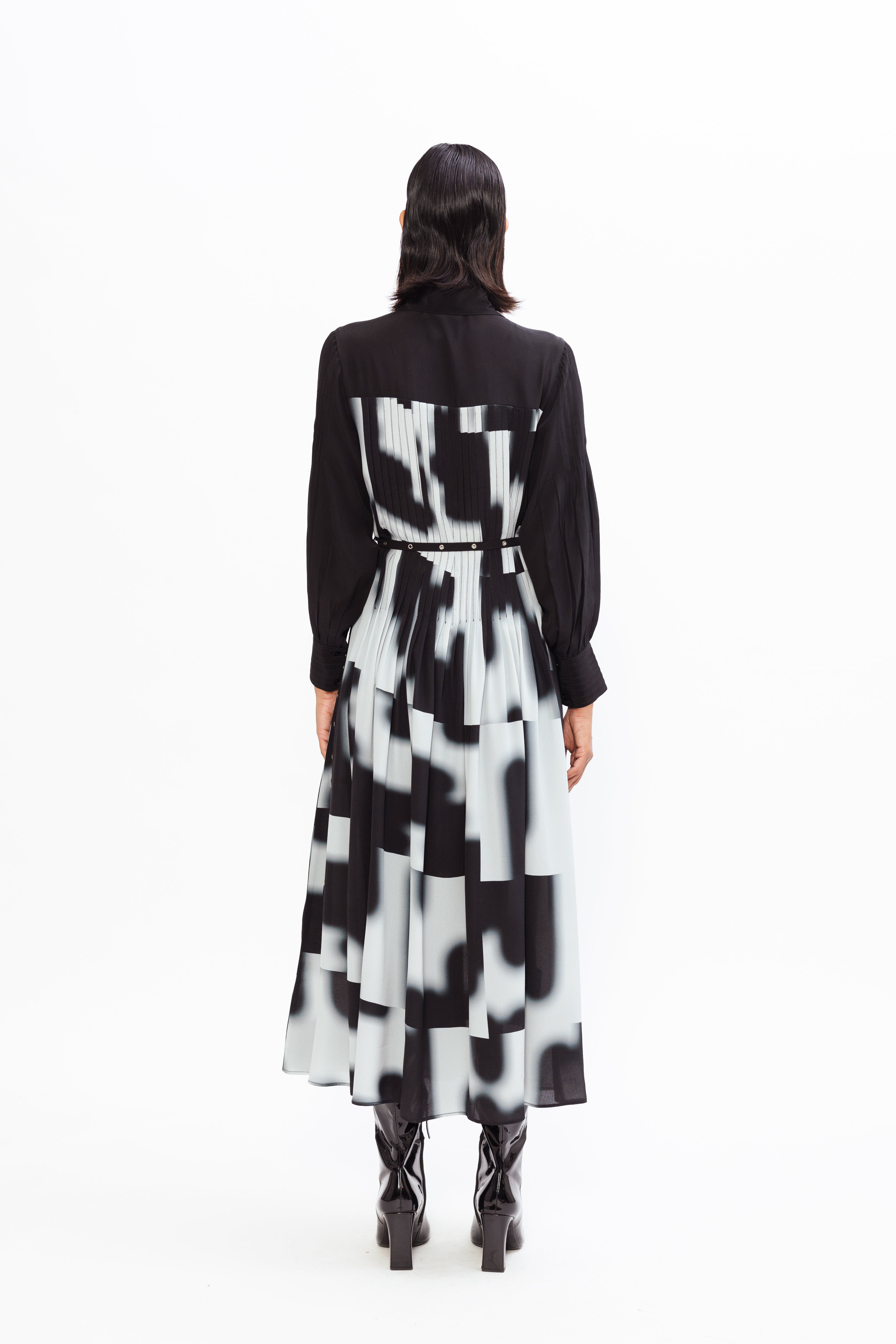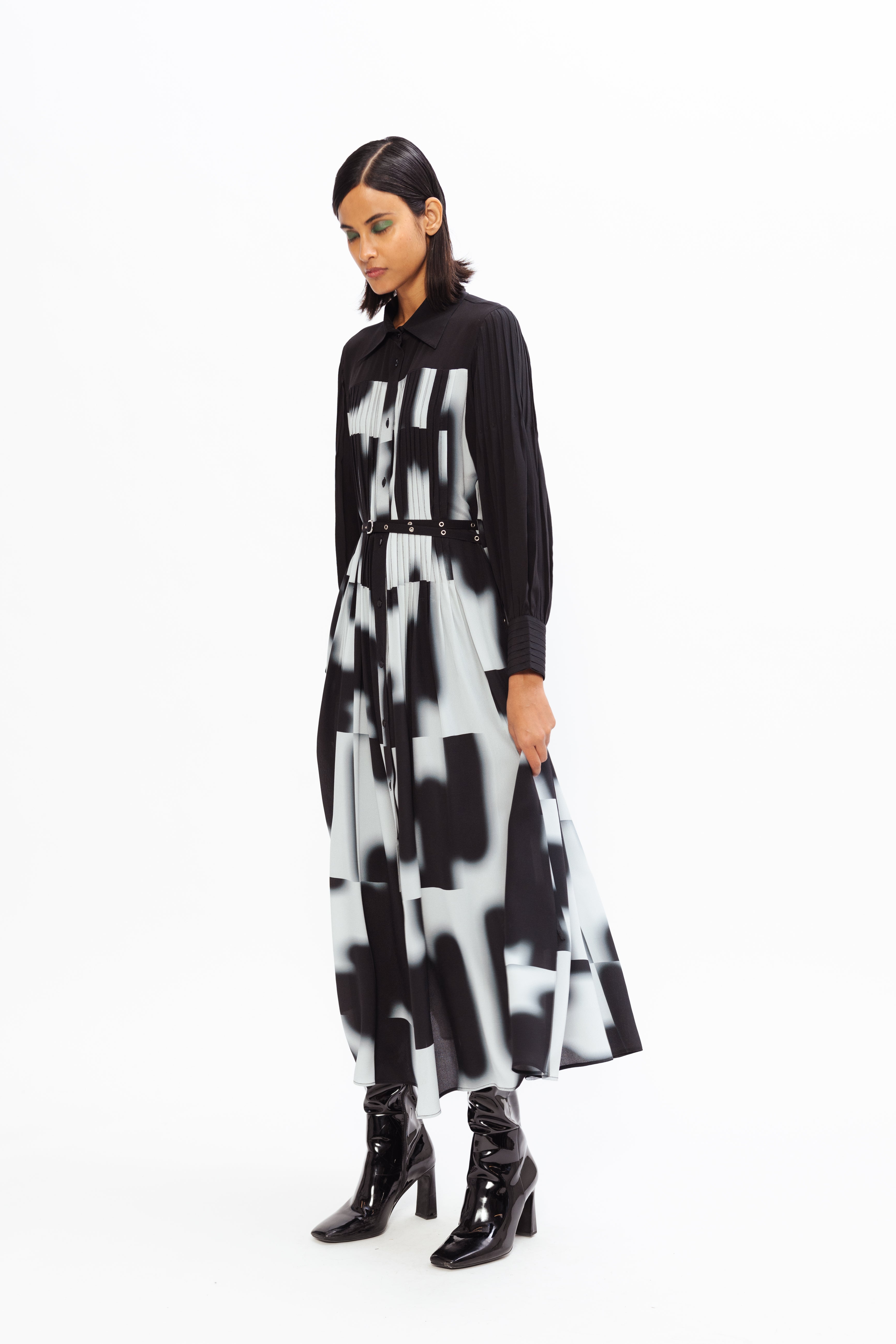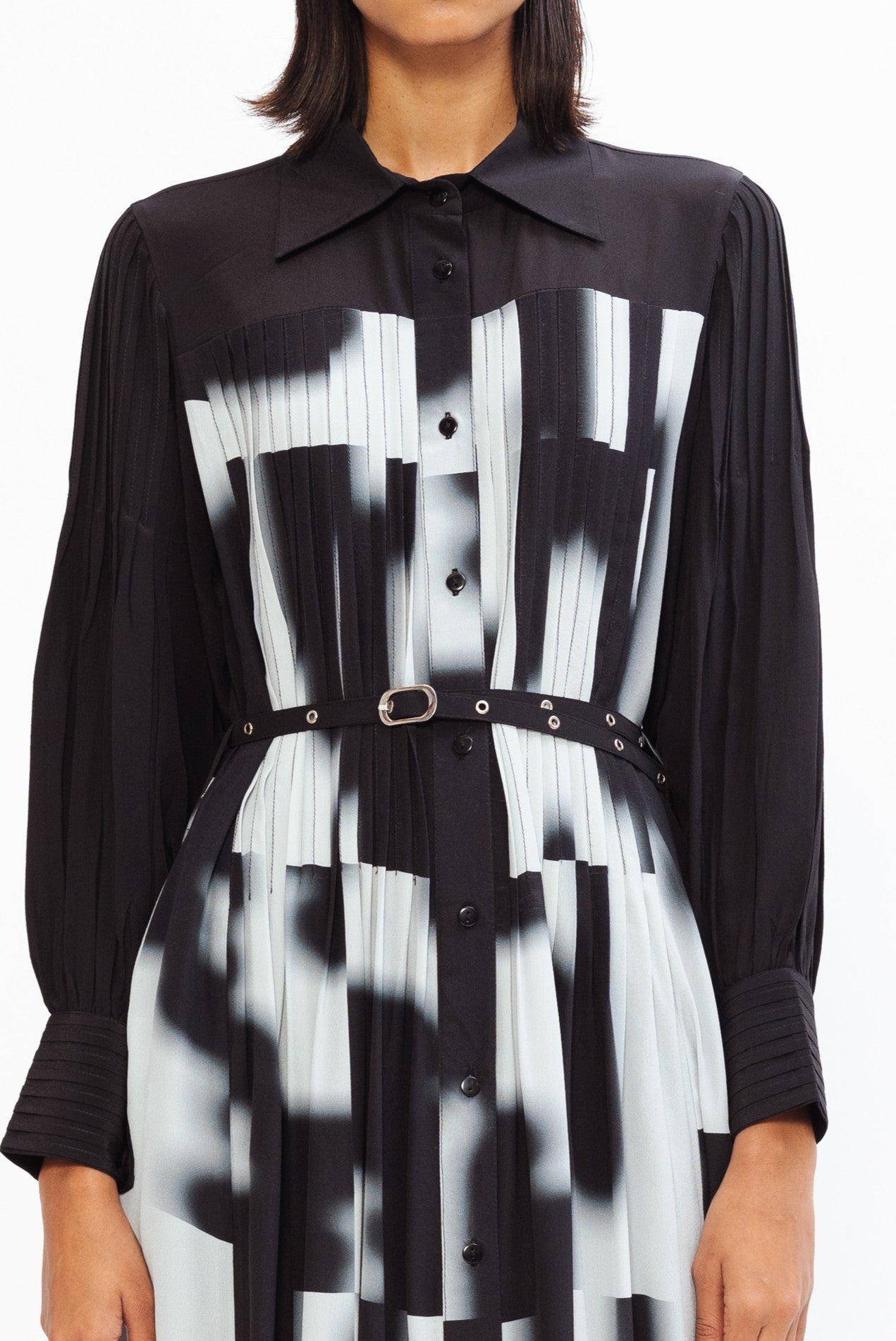 Effortlessly elegant, this Pleated Crepe Shirt Dress features a flattering silhouette with delicate pleats and a structured shirt collar. Crafted from soft, breathable crepe fabric, it offers both comfort and style—perfect for day-to-night dressing.