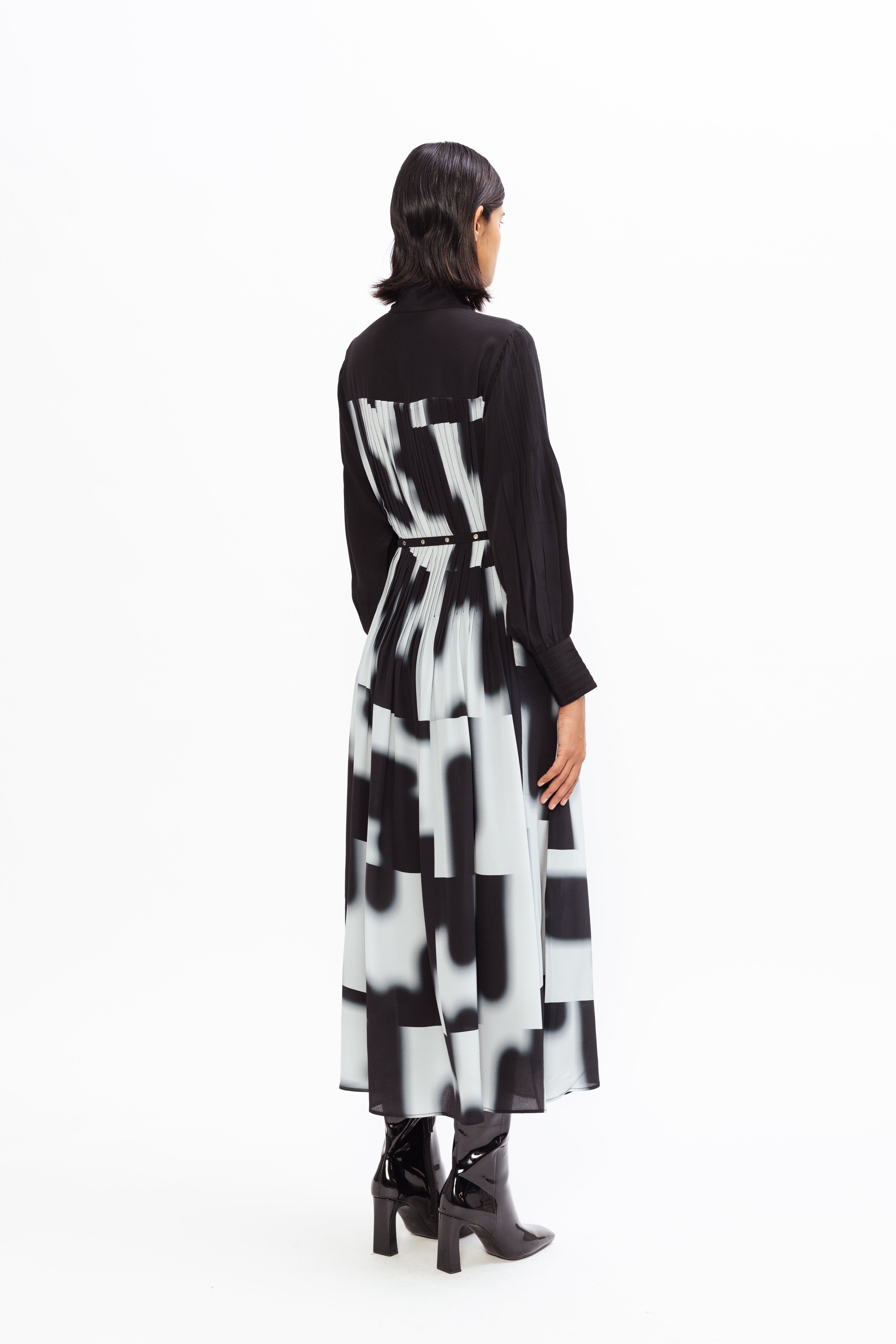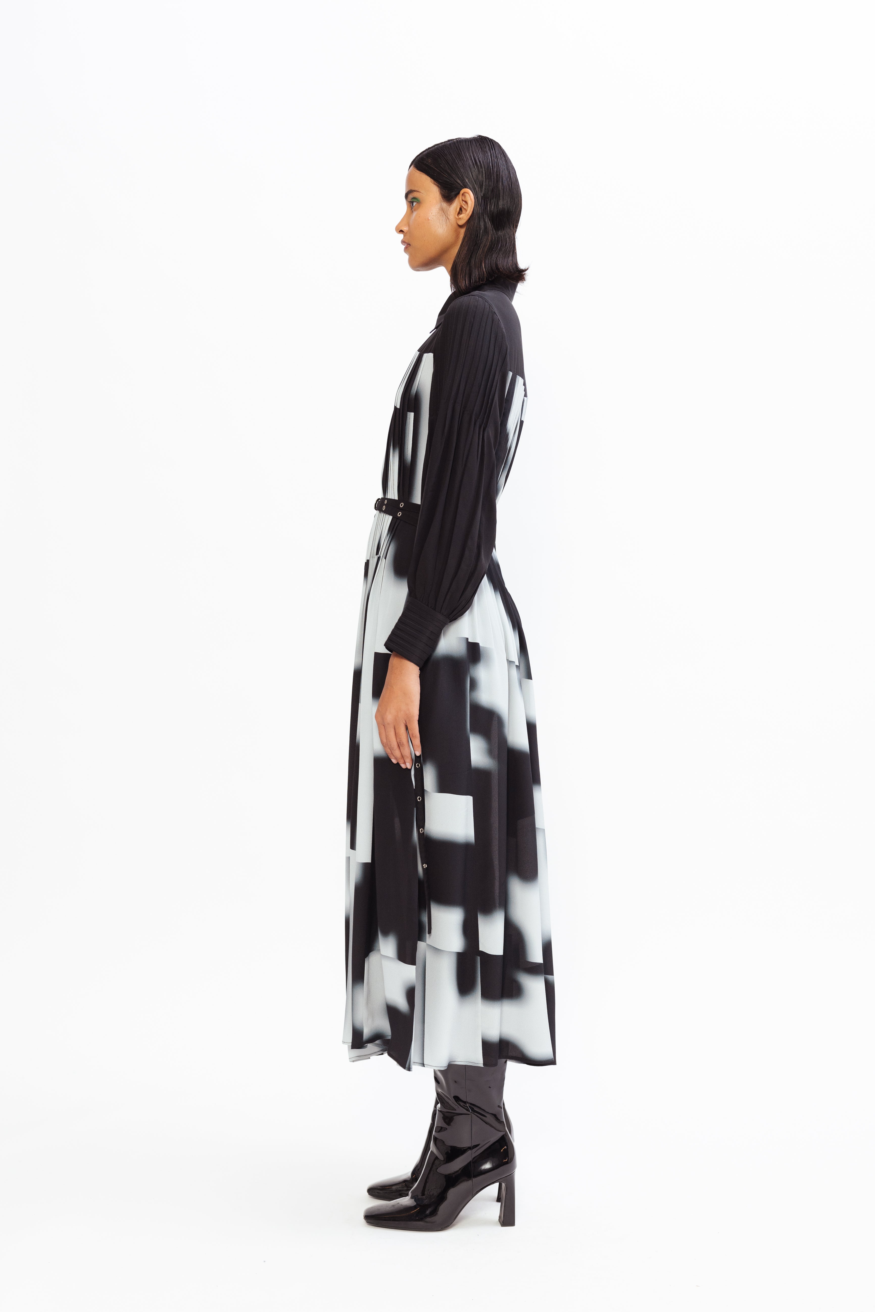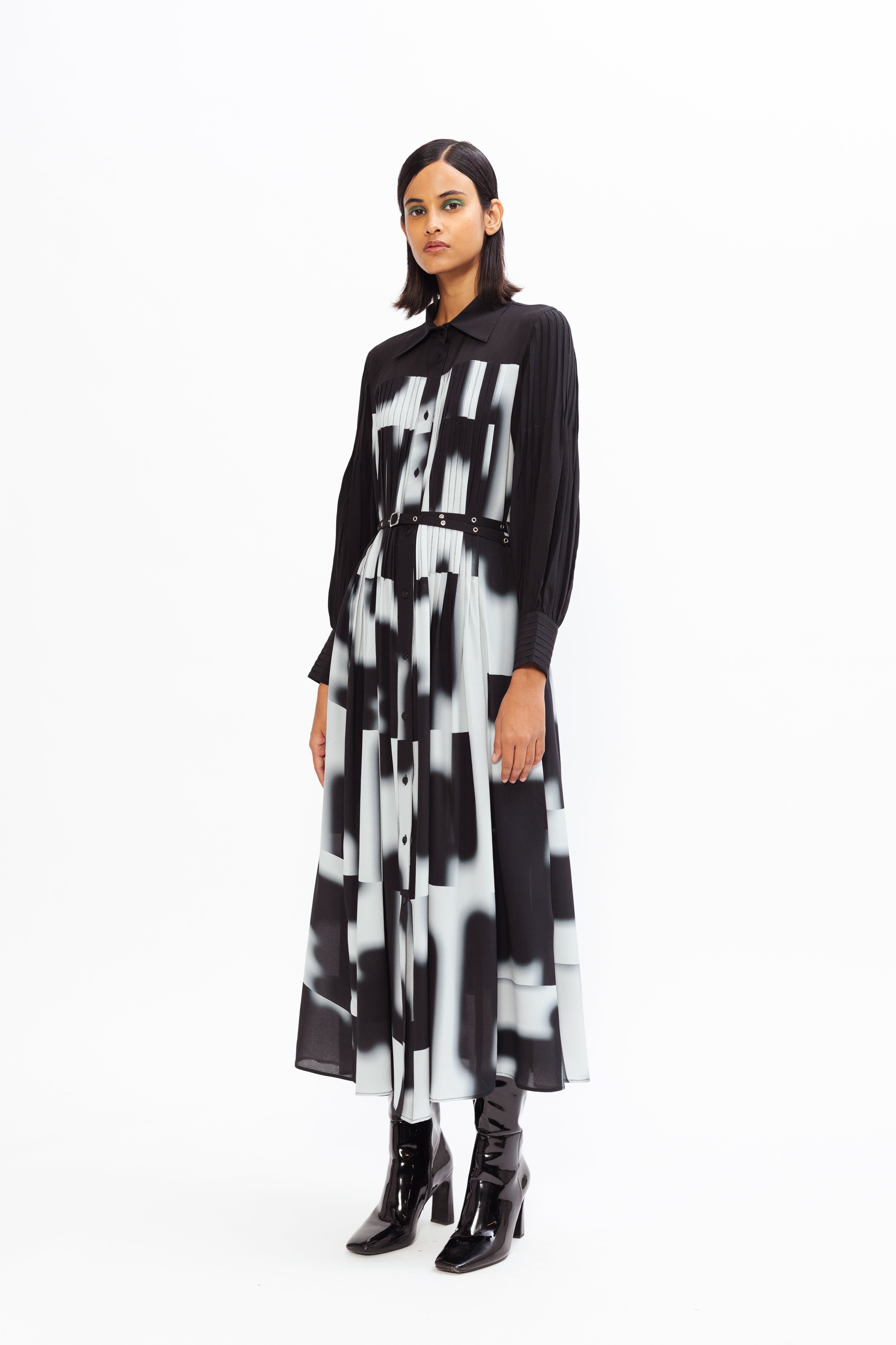 Effortlessly elegant, this Pleated Crepe Shirt Dress features a flattering silhouette with delicate pleats and a structured shirt collar. Crafted from soft, breathable crepe fabric, it offers both comfort and style—perfect for day-to-night dressing.